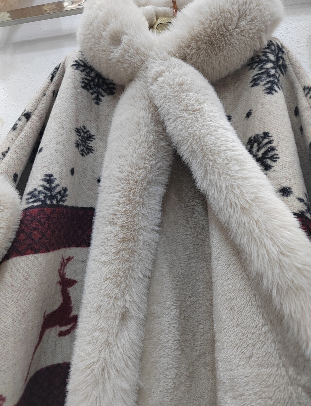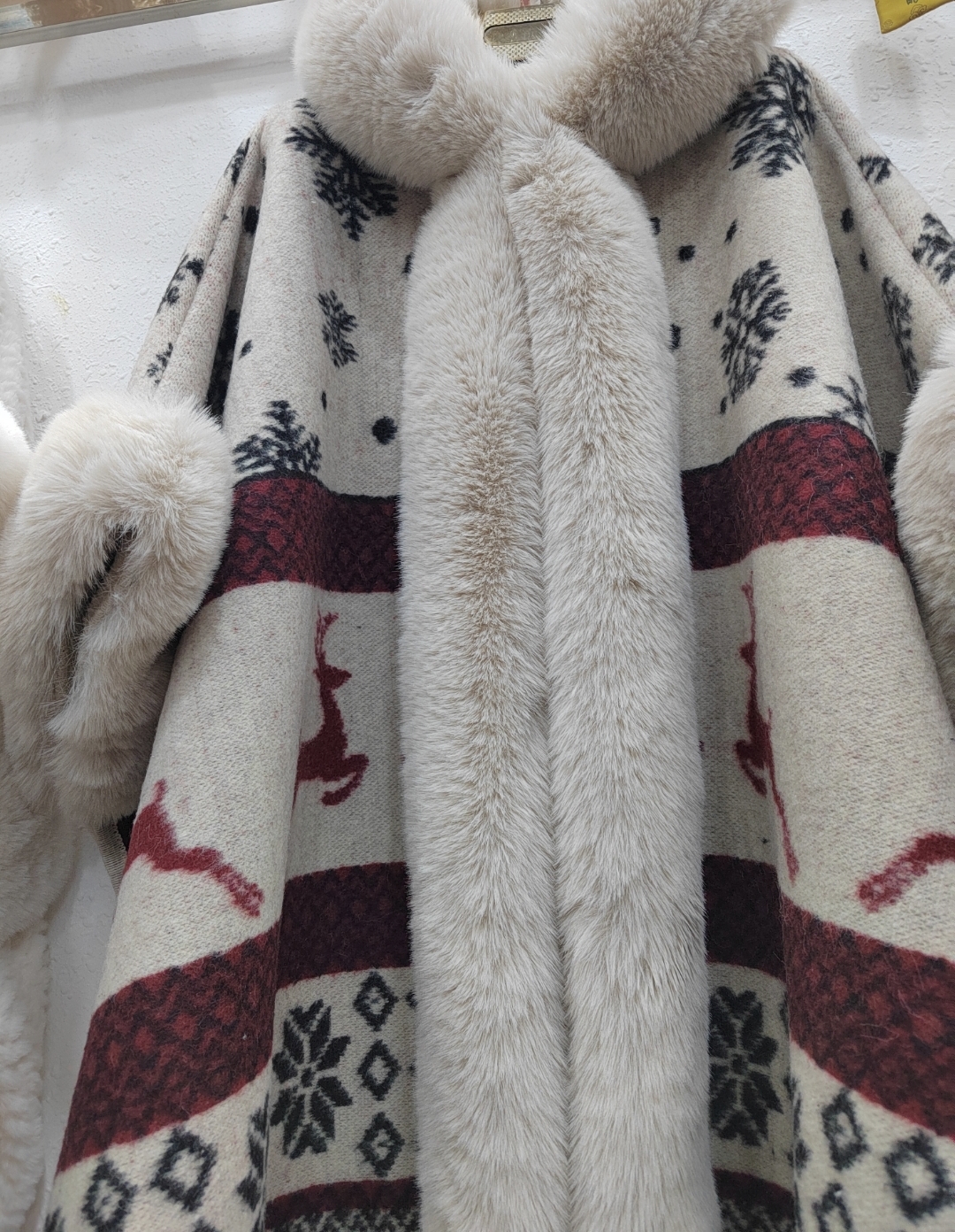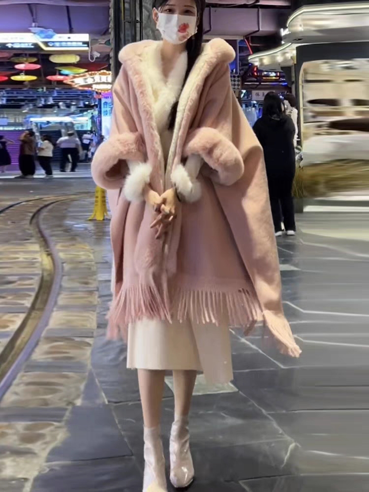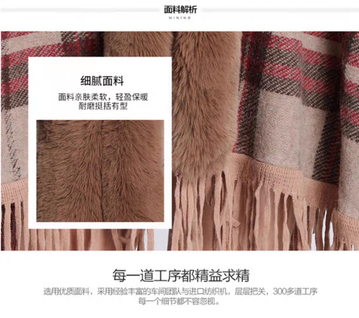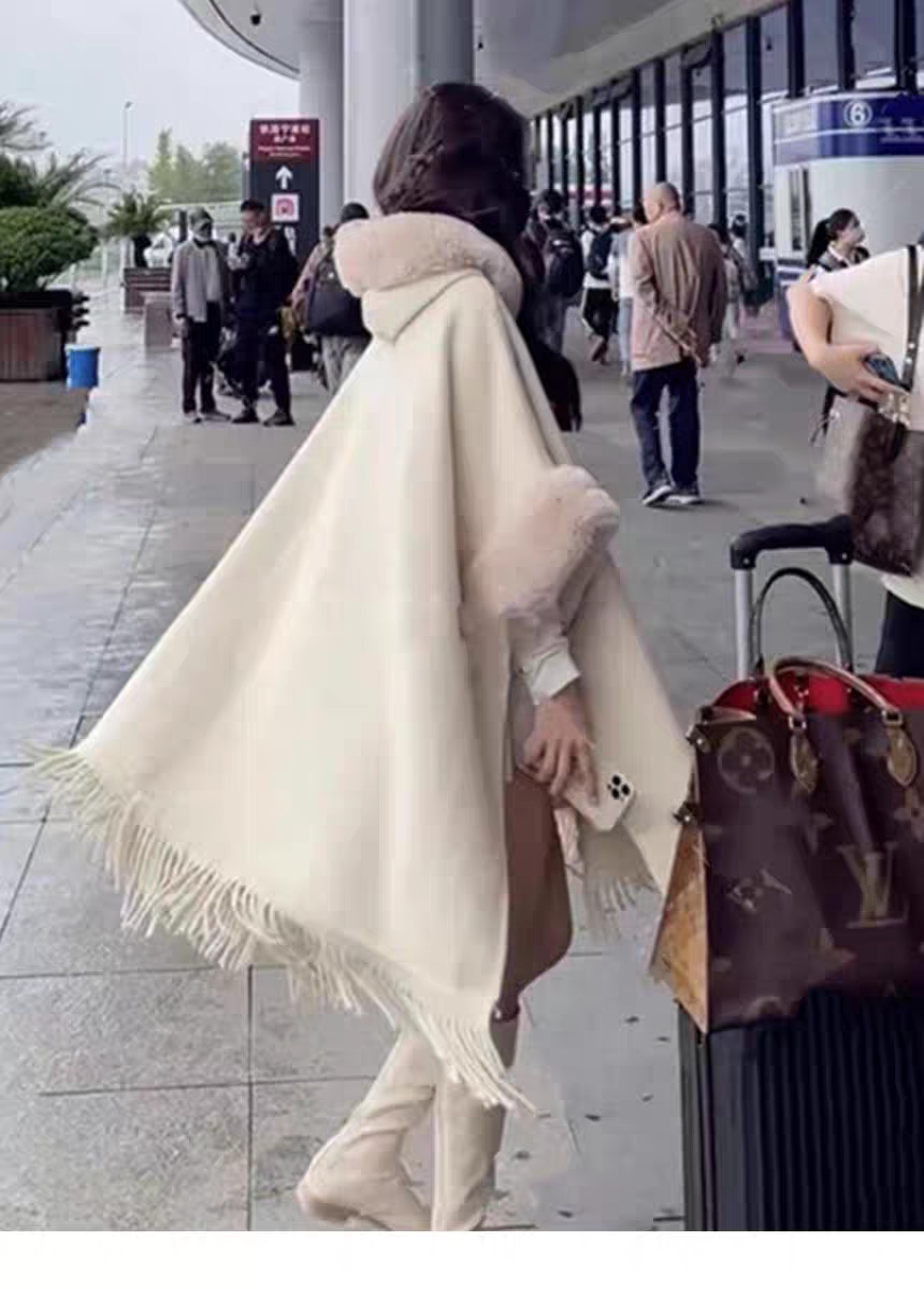 Fur Coat, Fashionable Plush Cape, Shawl, Fleece-Lined and Thickened, Winter Lazy Style, Fur Collar Cape, Woolen Coat, Trendy