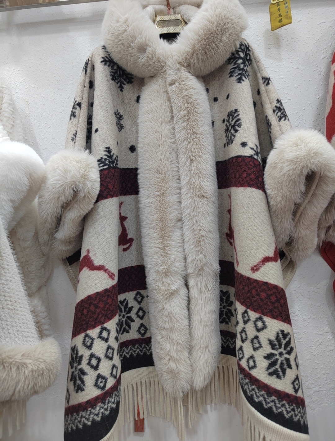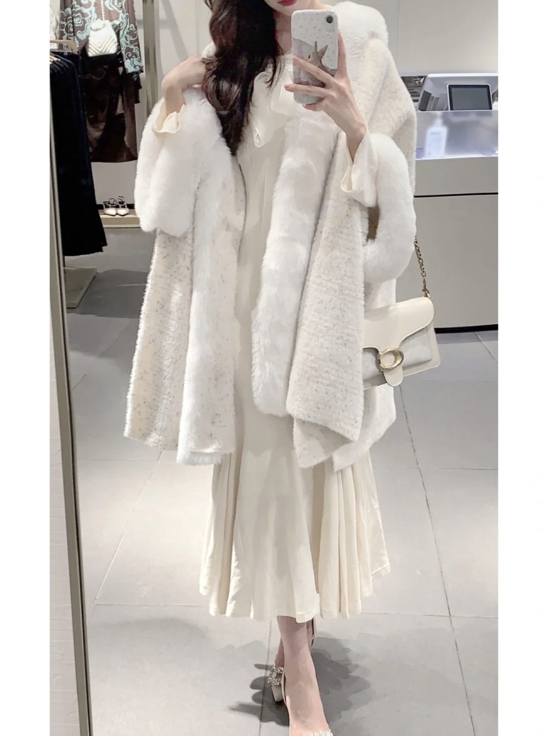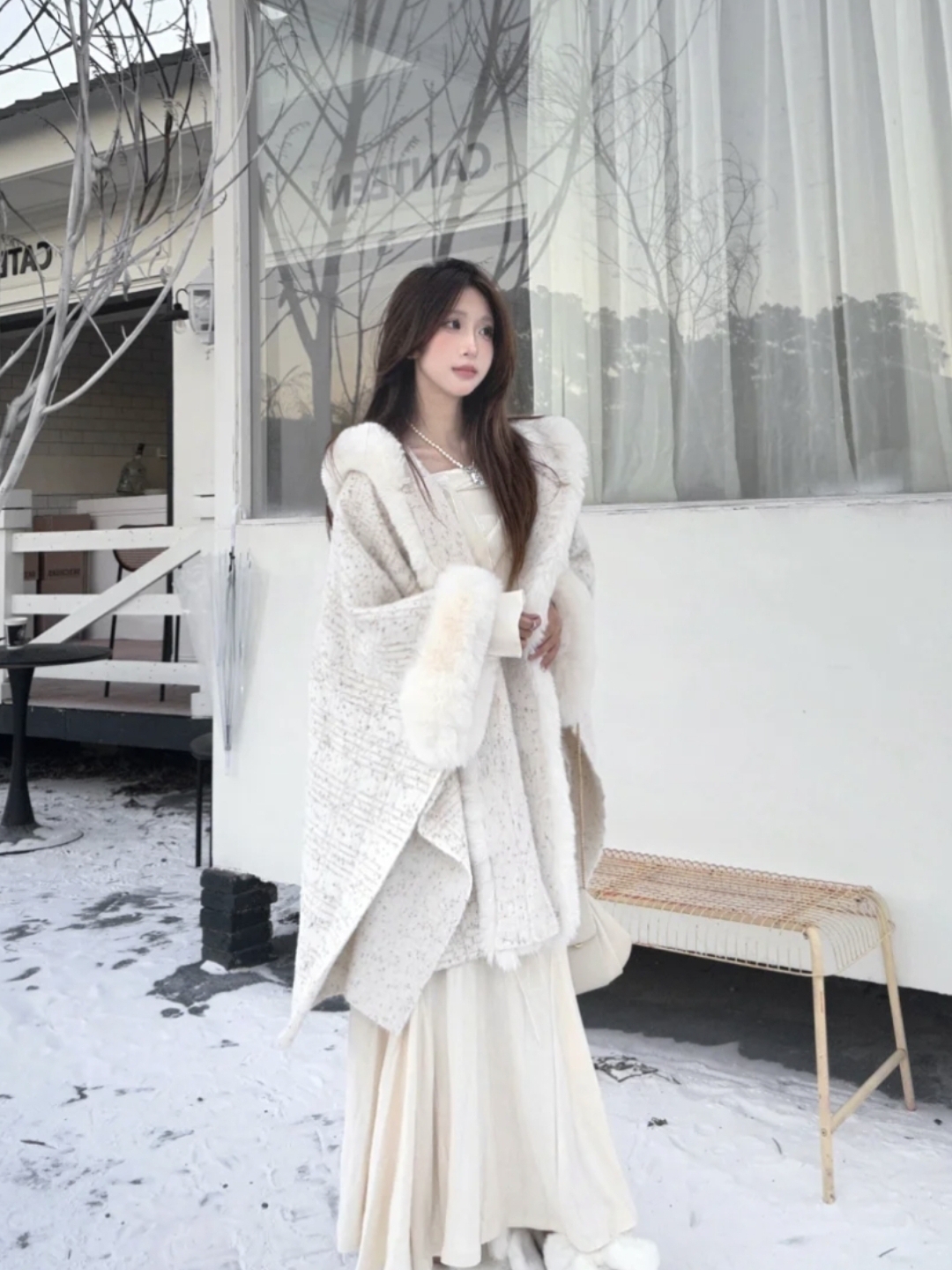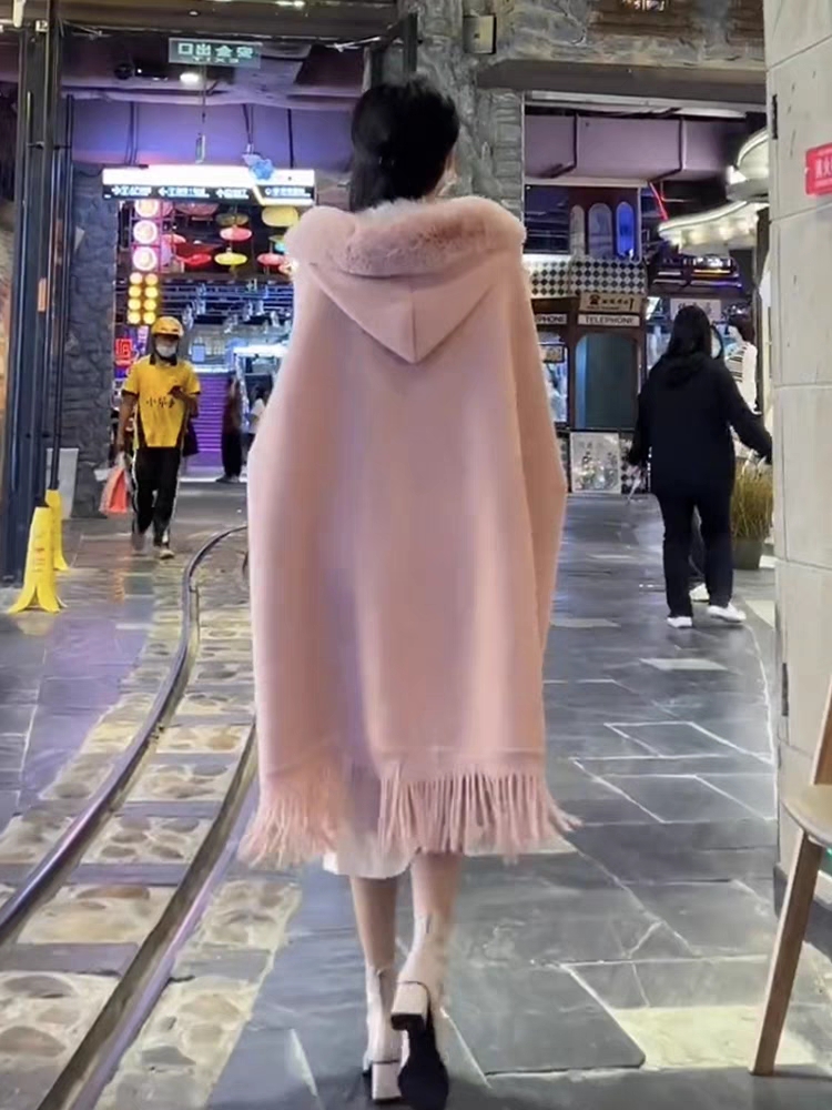 Fur Coat, Fashionable Plush Cape, Shawl, Fleece-Lined and Thickened, Winter Lazy Style, Fur Collar Cape, Woolen Coat, Trendy