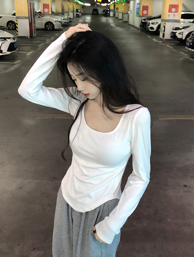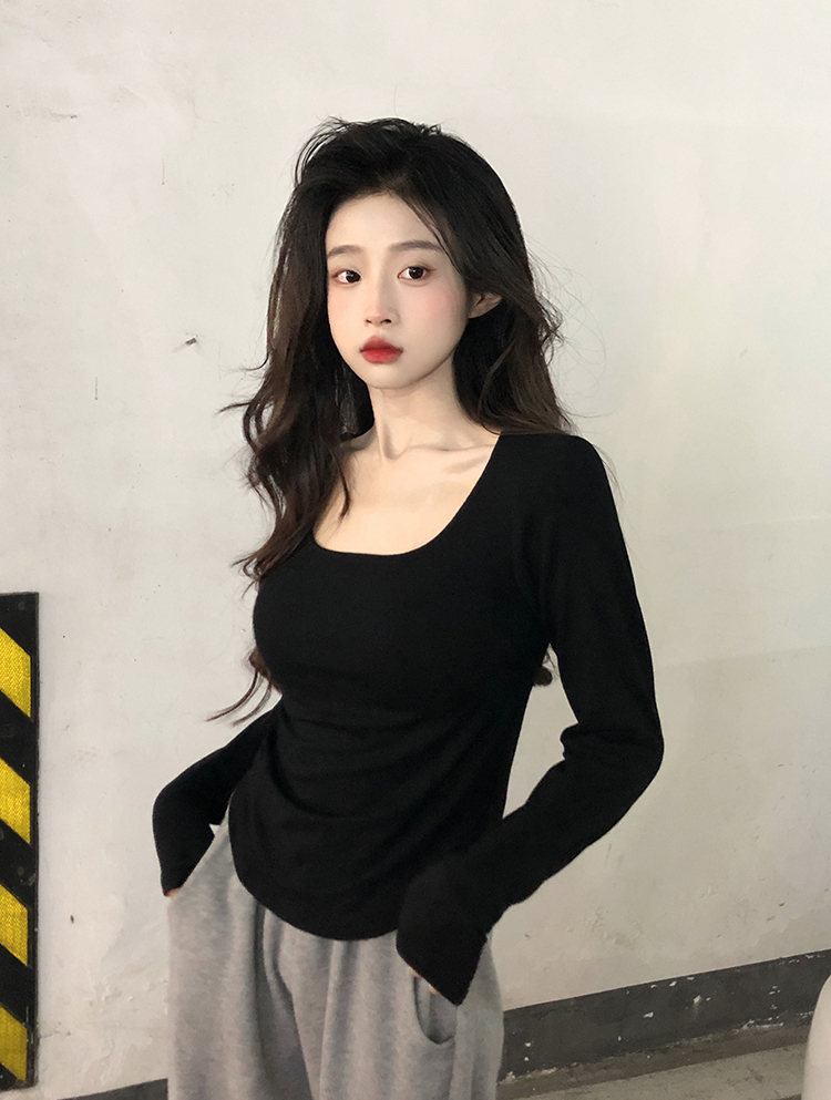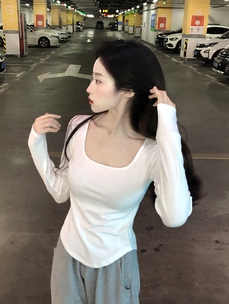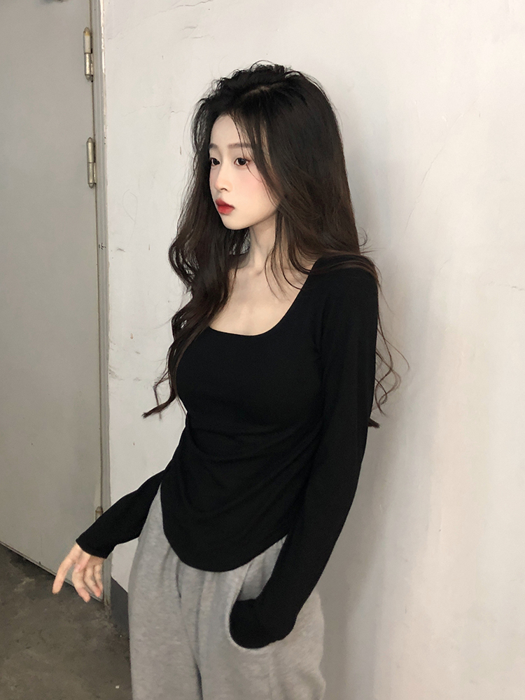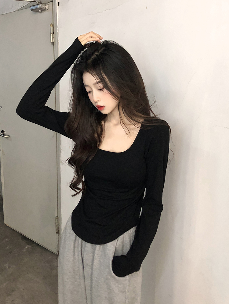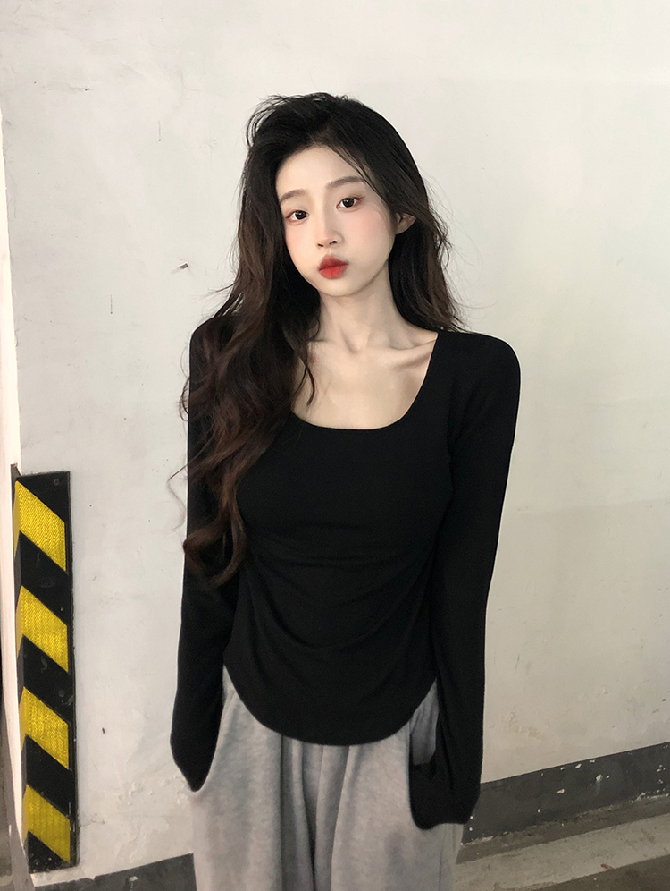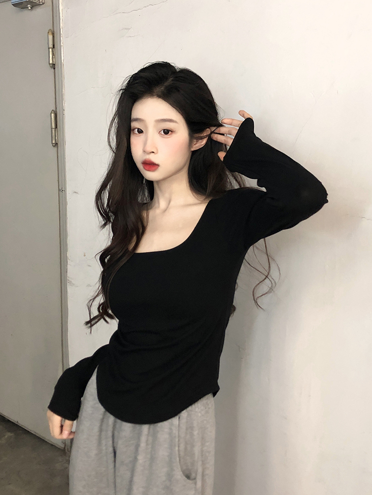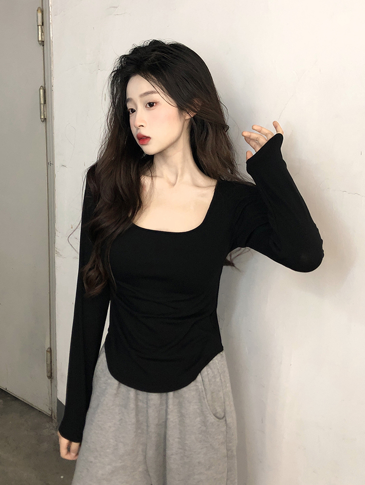 Autumn Clothing 2025 New Women's Square-Neck Long-Sleeve T-Shirt Base Shirt Korean Style Early Autumn Outfit Top Trendy Shirt