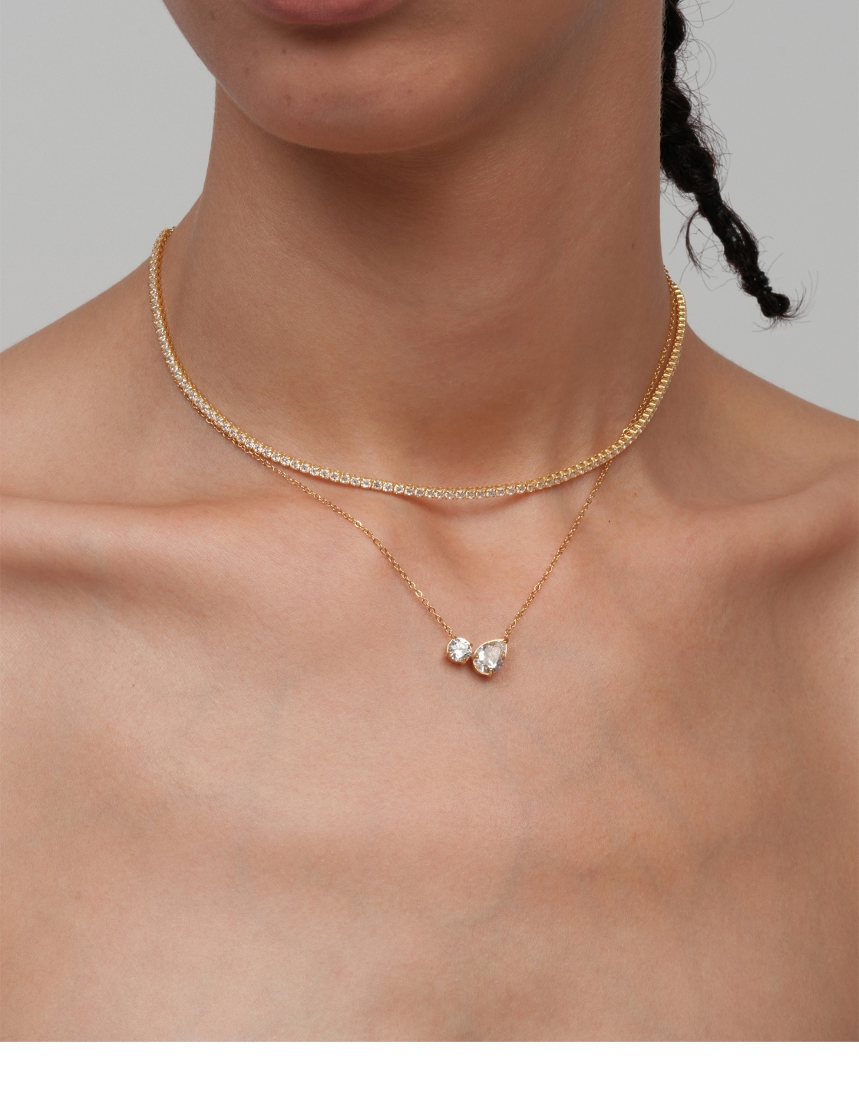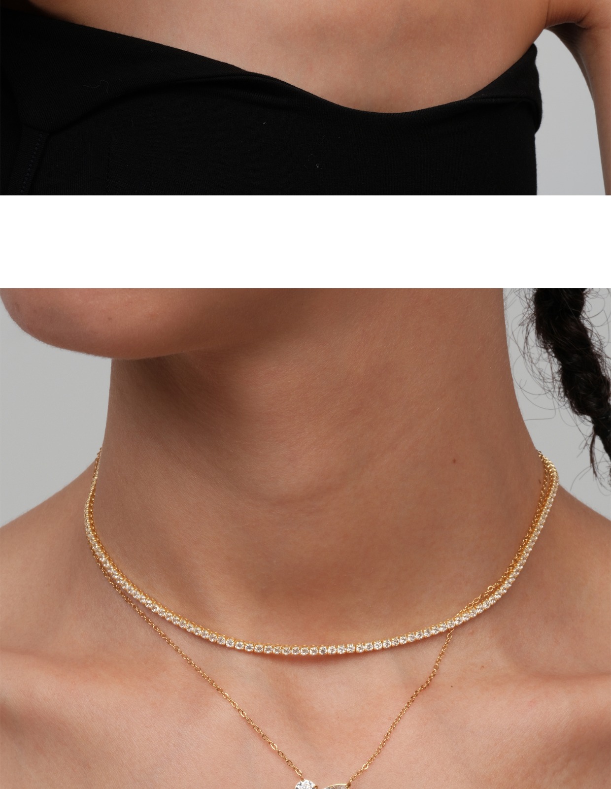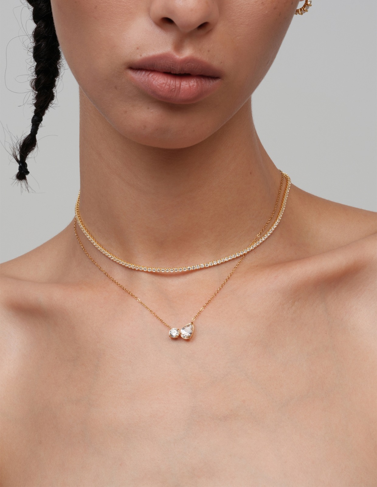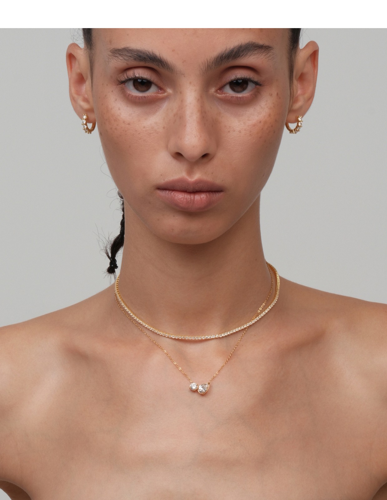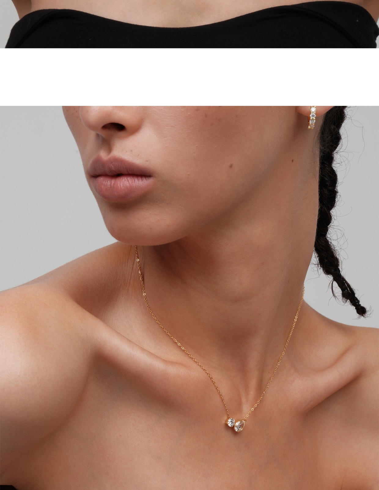 【Cnhnon Fat Store】Water Drop Round Diamond 3A Vivid Zircon Simple European and American High-End Clavicle Necklace