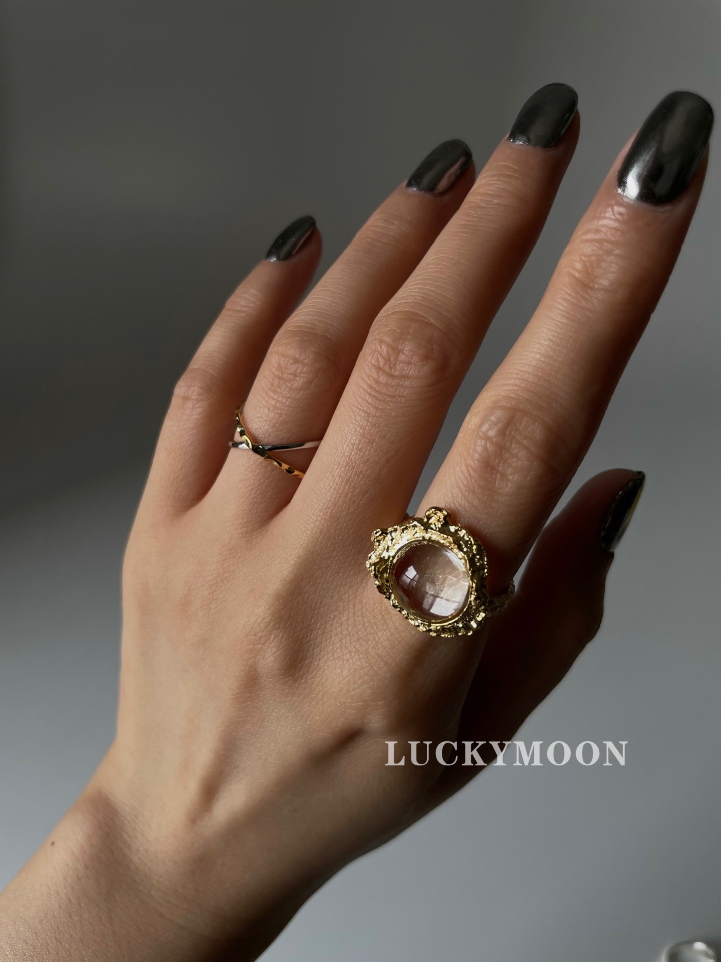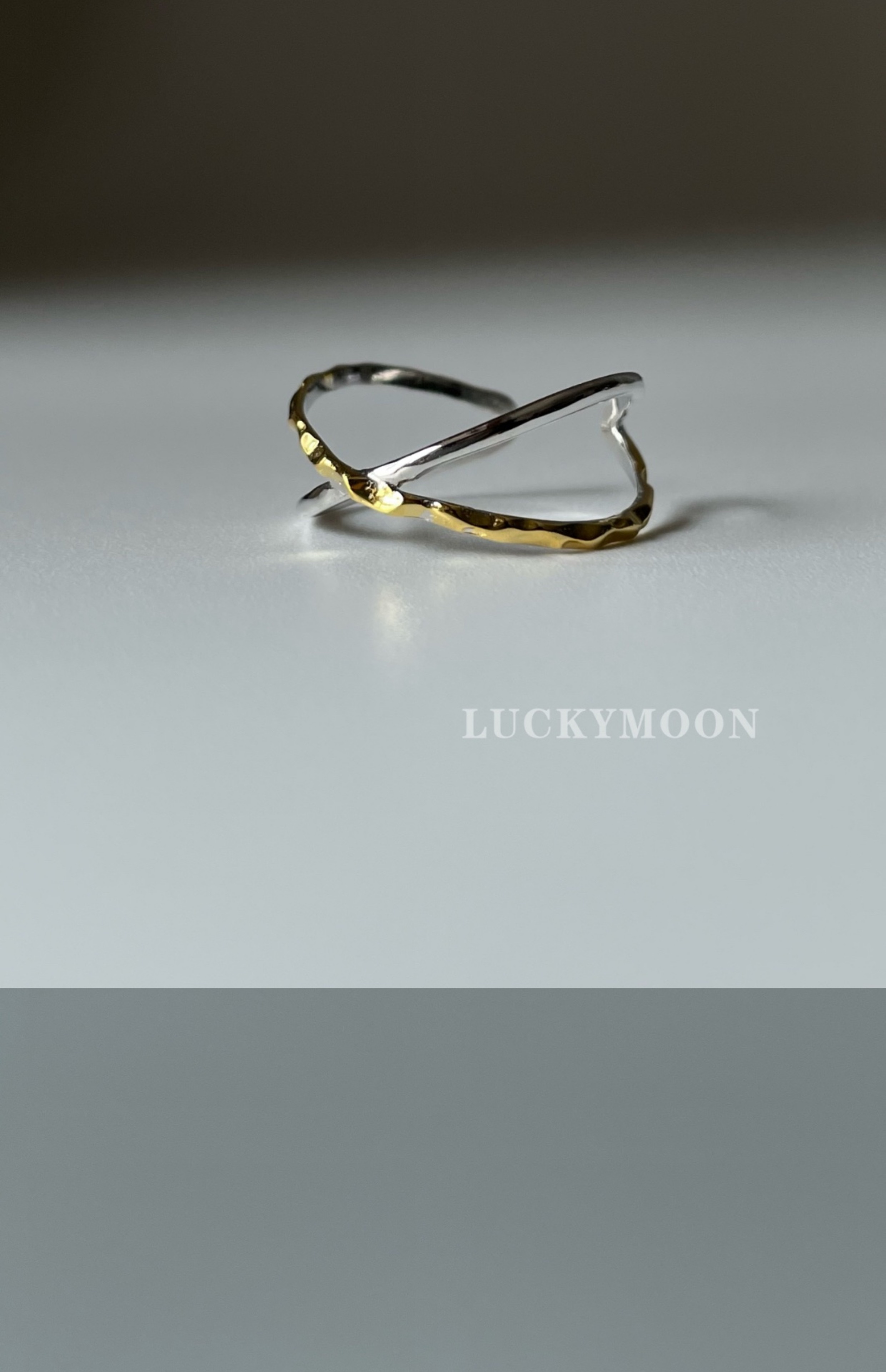 Luckymoon Cross Gold and Silver Two-Tone Texture Ring All-Over S925 Sterling Silver R145