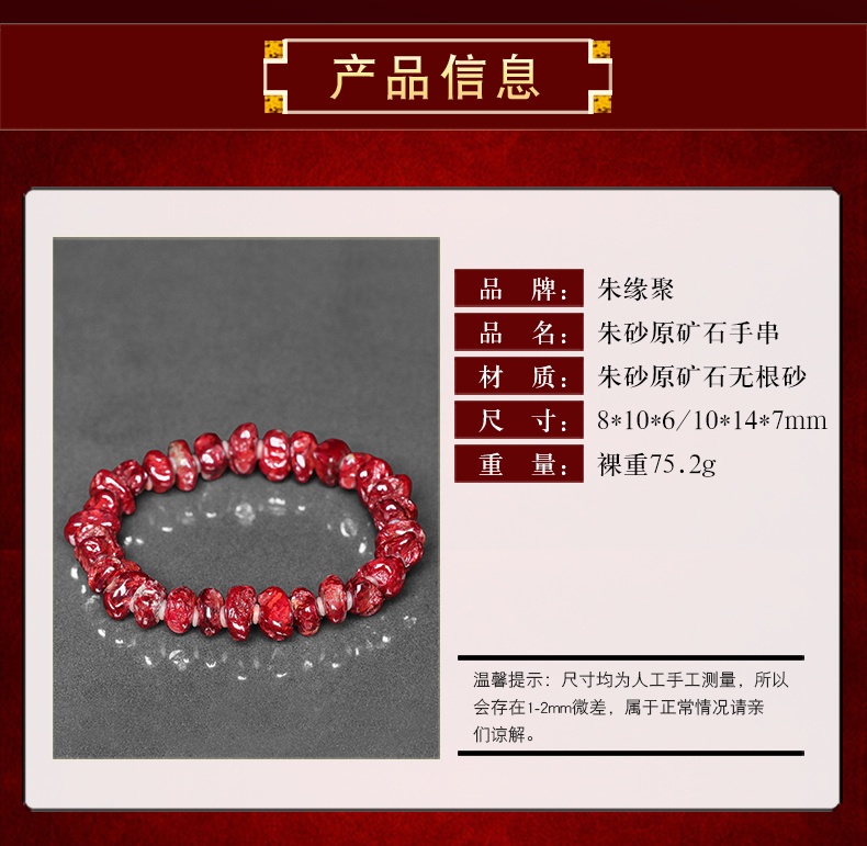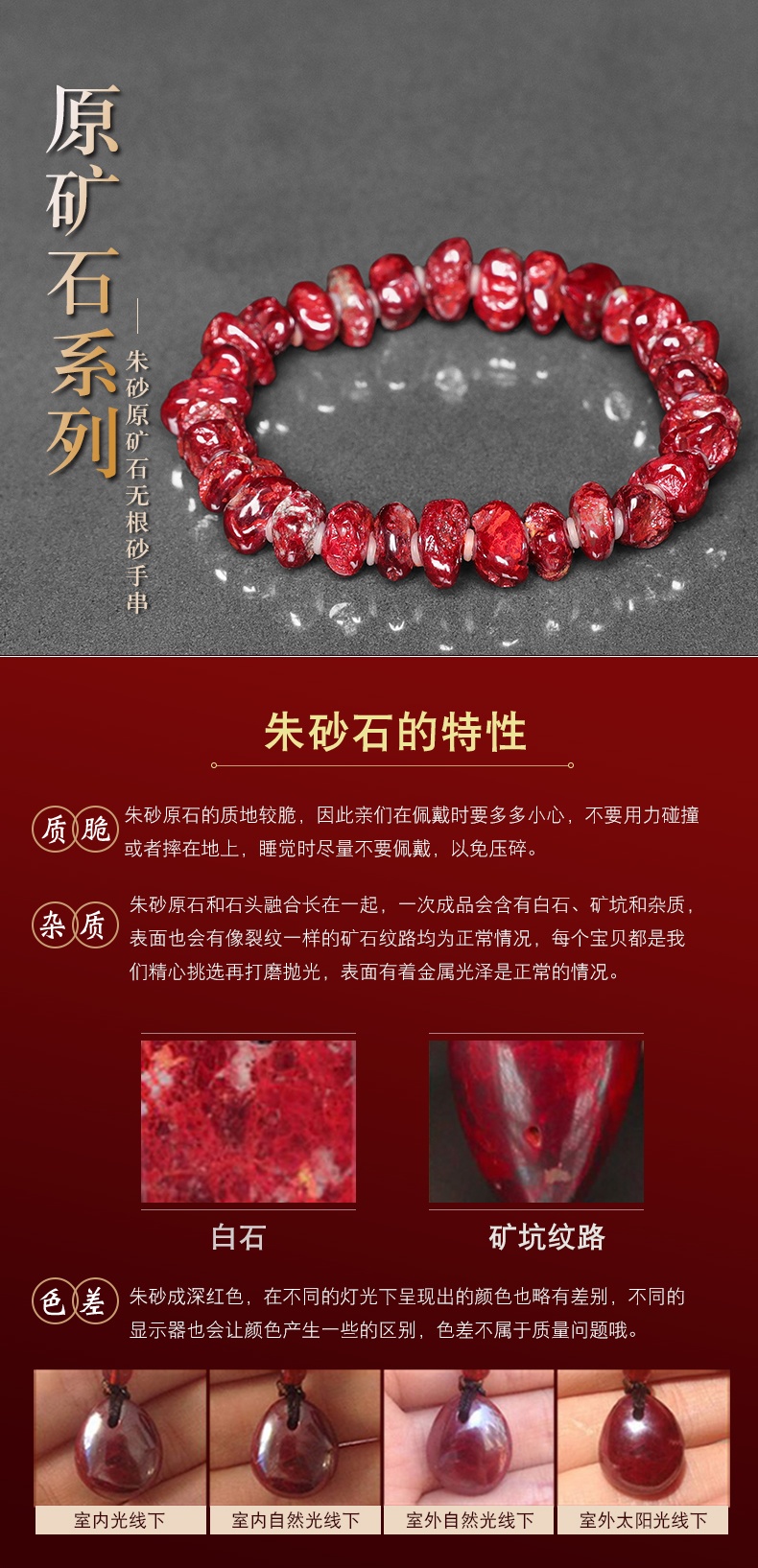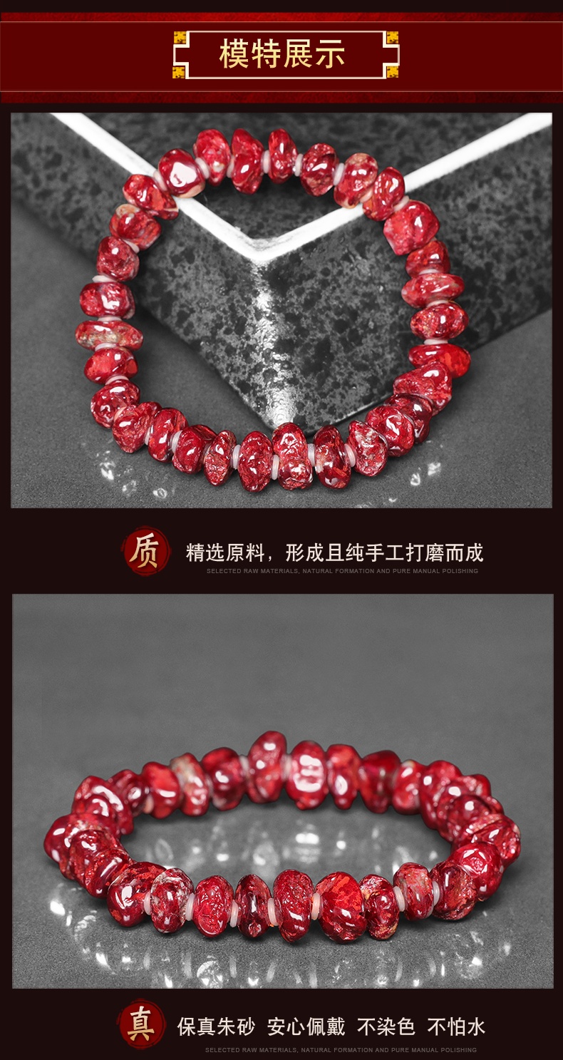 Zhu Yuanju Cinnabar Bracelet Men's Genuine Official Flagship Store Raw Mineral Stone Rootless Sand Some Translucent Bracelet for Women