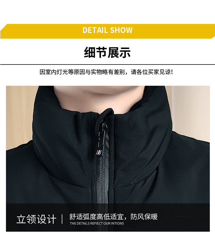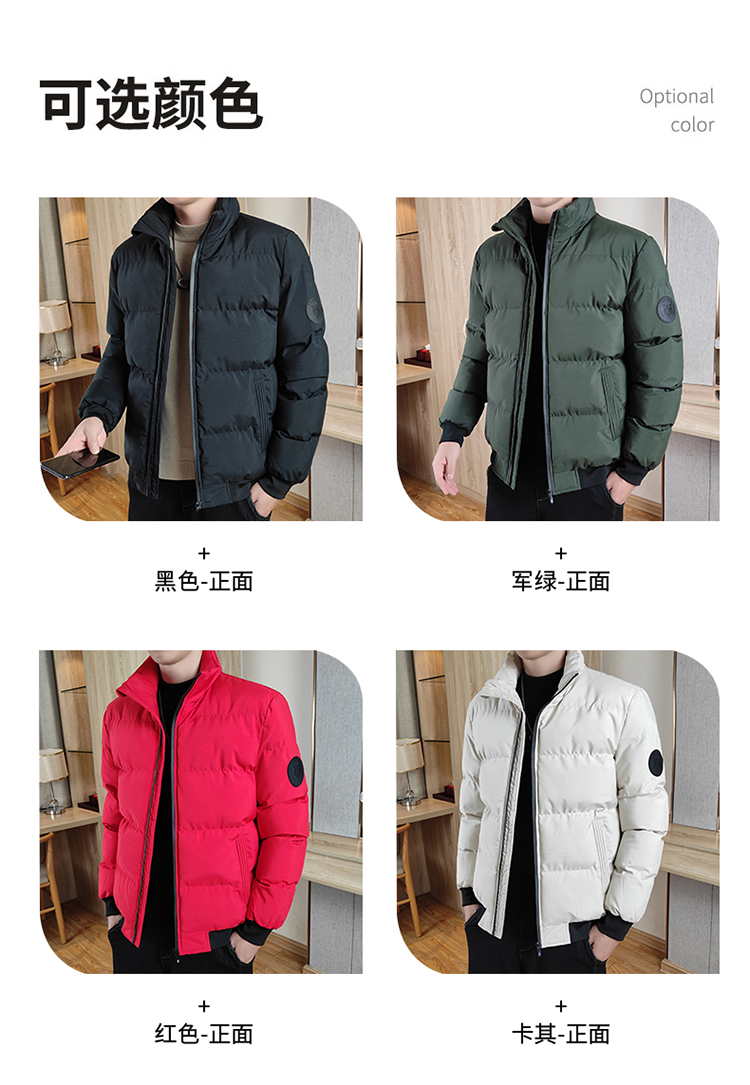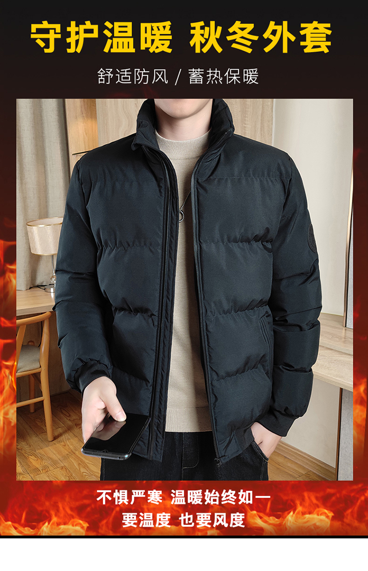24 Brand Men's down Cotton Jacket for Autumn and Winter, Thickened for Warmth, Casual Stand-Up Collar, Slim Fit, Cold-Proof Cotton Coat, Trendy