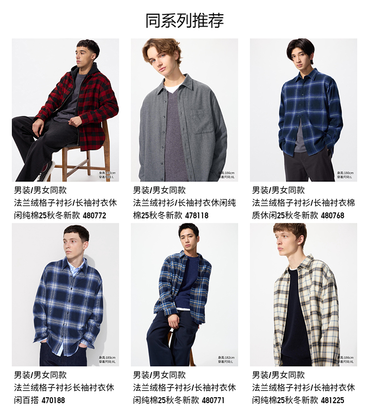 UNIQLO men's and women's flannel Gingham shirt Long sleeves shirt thin coat 25 Fall and winter 481224 480767