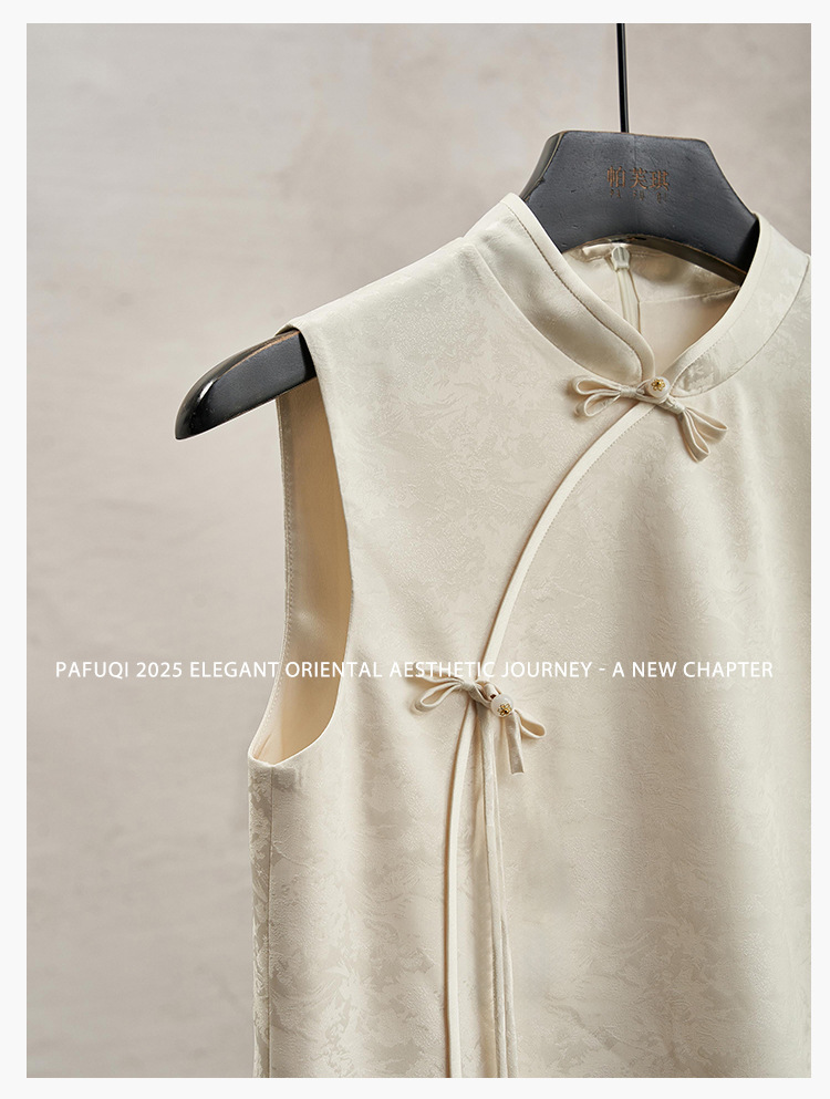 New Chinese-Style Dress with Buttoned Jacquard, Improved Cheongsam Vest Long Dress, Light National Style Women's Clothing, 2025 New Summer Model