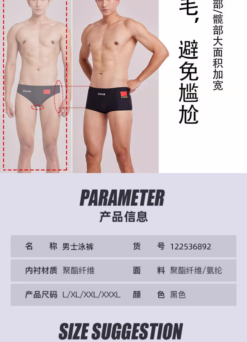 Zhouke Swimming Trunks Men's Swimming Cap and Goggles Three-Piece Set Men's Adult 2025 Model Professional National Team Boxer Swimming Trunks