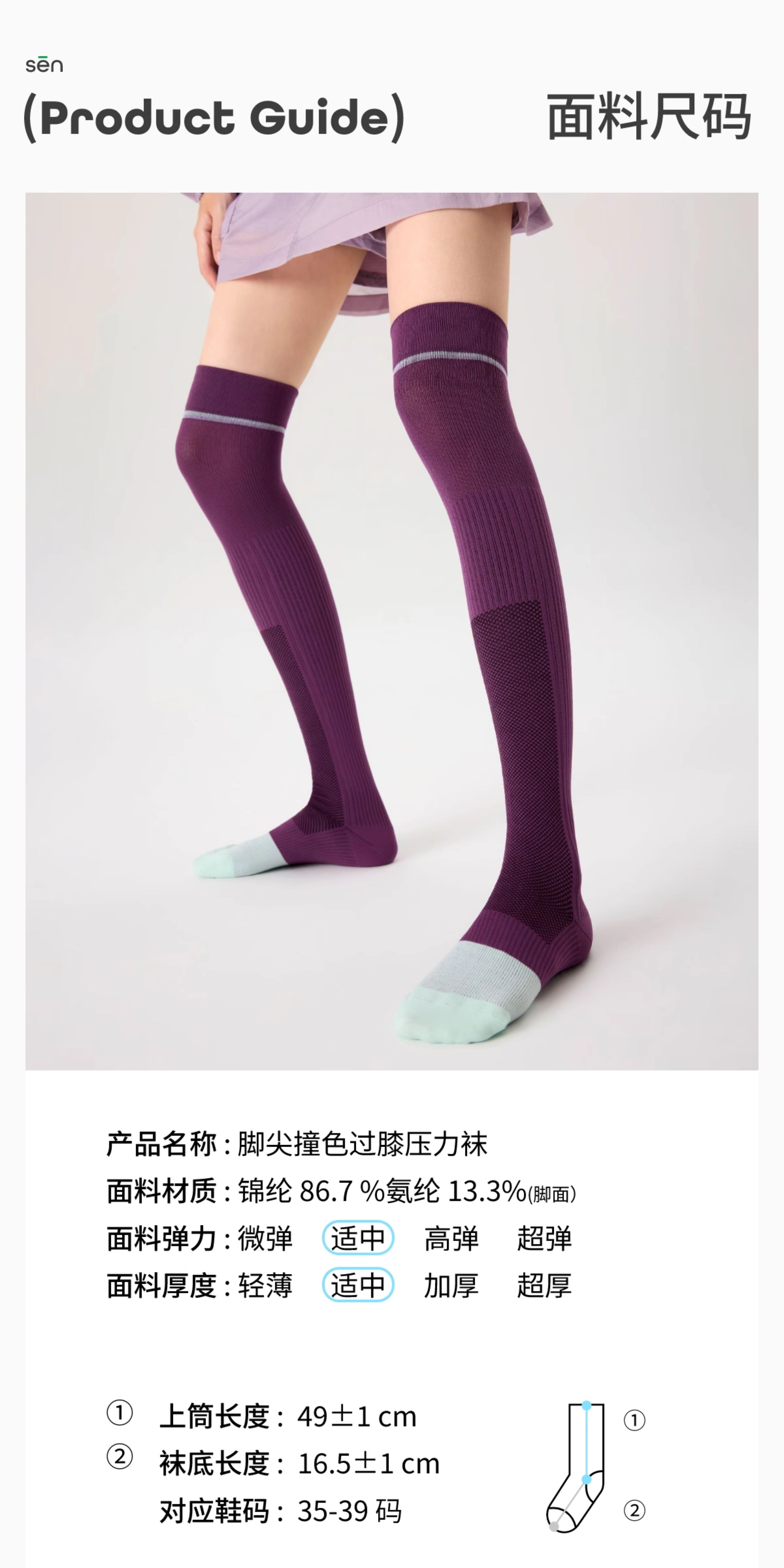 Shangsen Over-The-Knee Socks, Sports Compression Socks, Calf Socks, Long Socks, White Compression Socks, Tennis Outdoor Running Hiking Socks