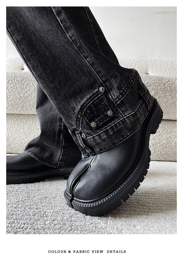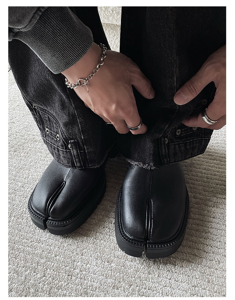 Two Points Romance Ldlm Niche Thick-Soled Split-Toe Shoes Casual Leather Shoes Men's Comfortable Soft Leather Slip-On Derby Shoes Pig's Trotters Shoes