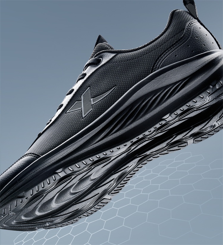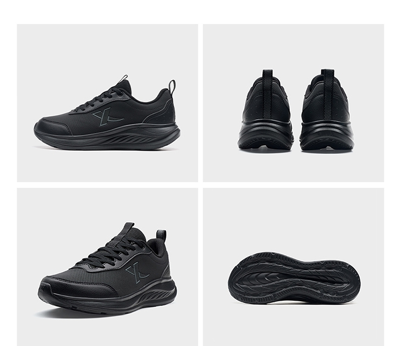 Xtep Yuyi Fw丨 Running Shoes Men's Black Sports Shoes Autumn and Winter New Leather Surface Water-Repellent Shock-Absorbing Lightweight Running Shoes