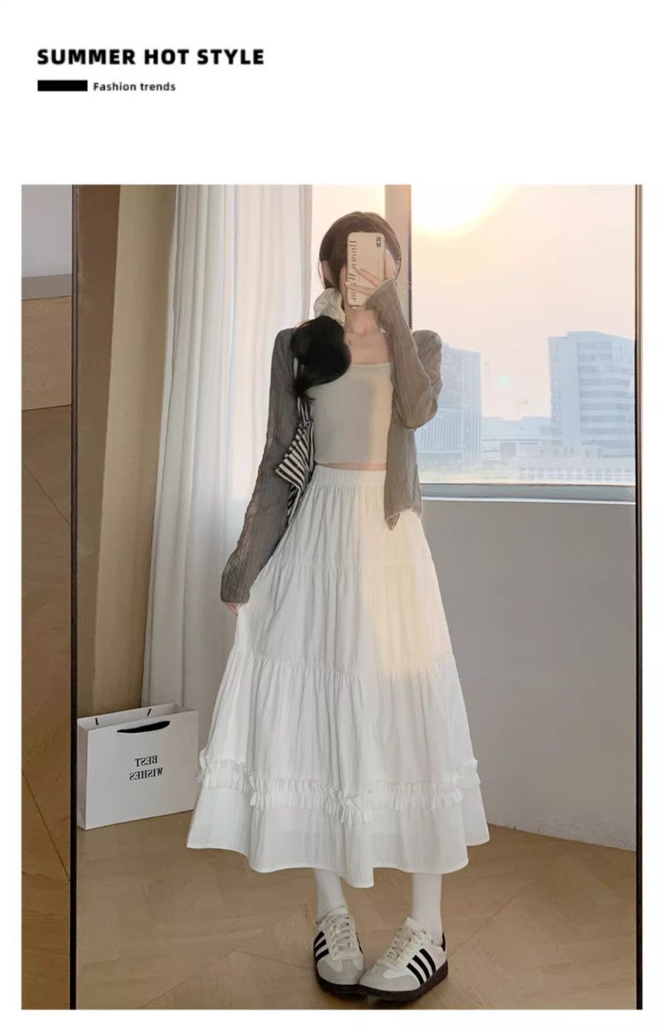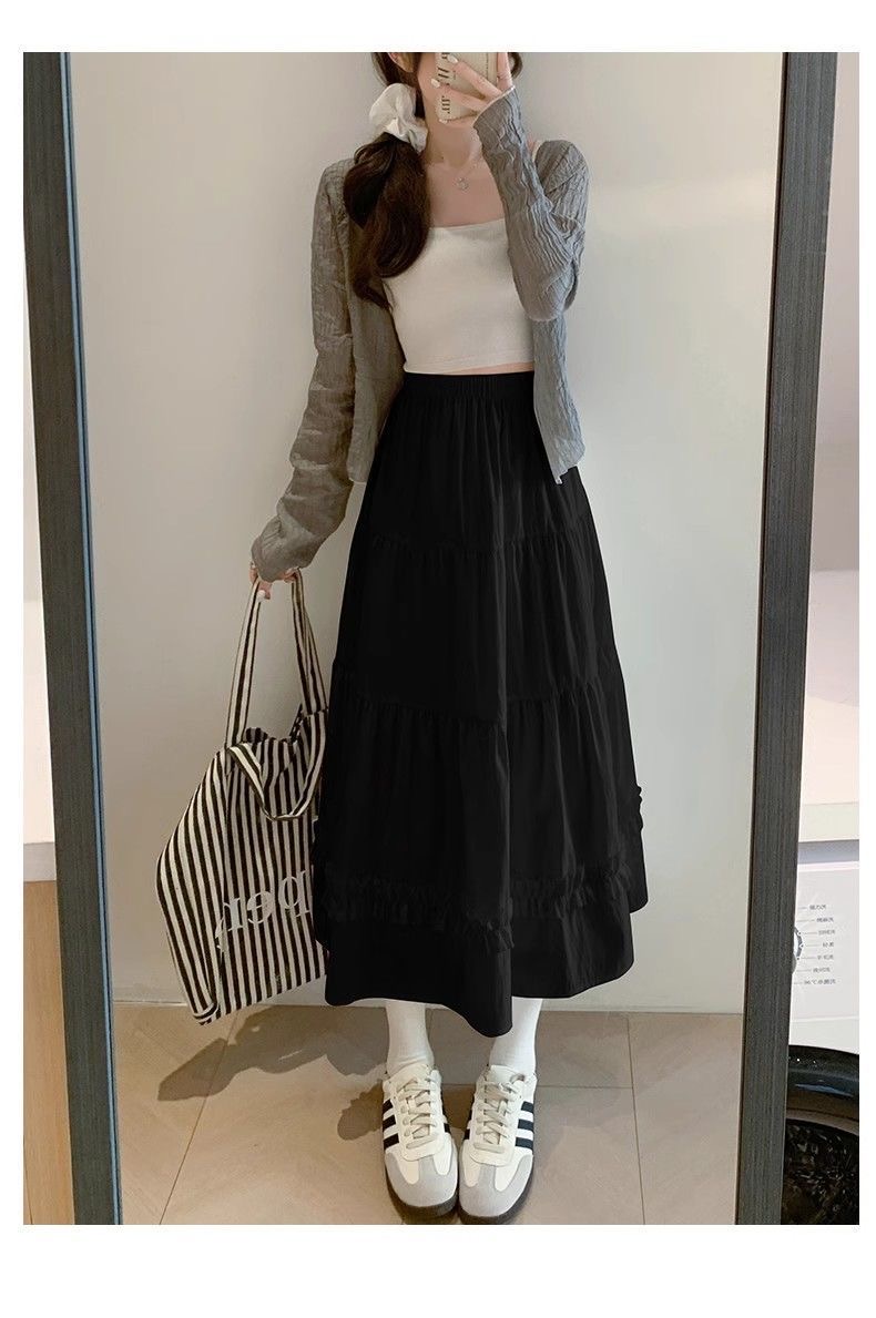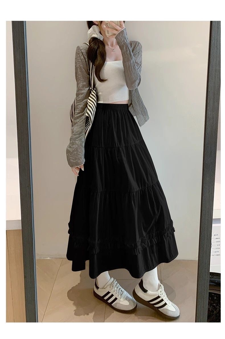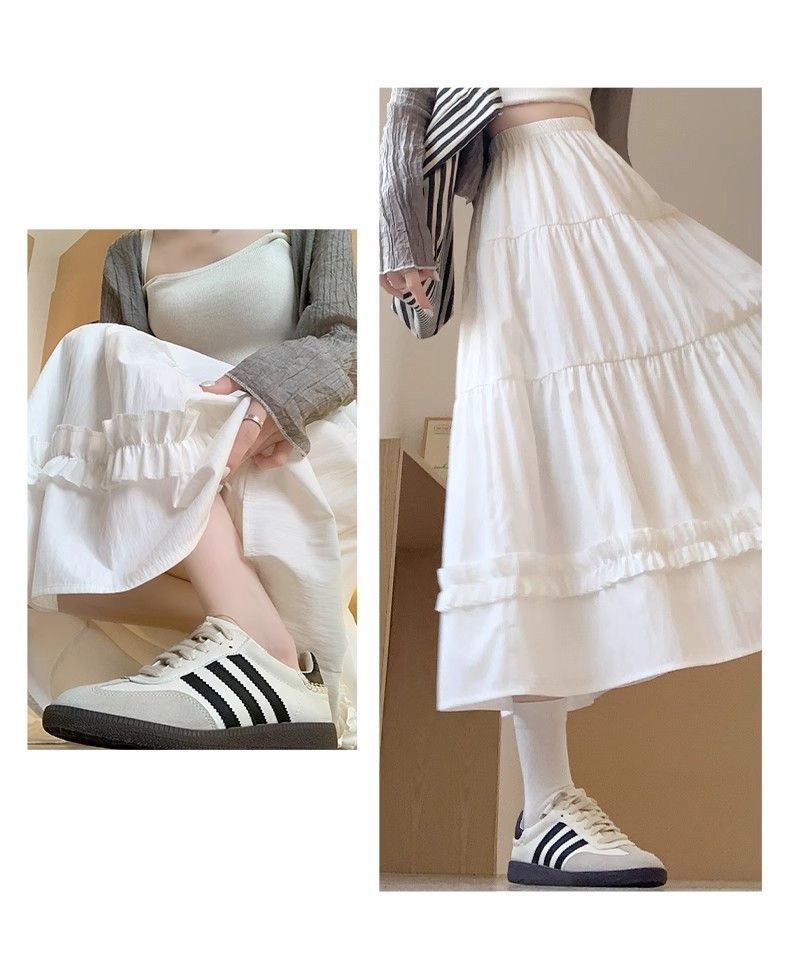 Layered Ruffled Lace Skirt for Women, 2025 Spring and Autumn Design, Versatile Mid-Length Skirt with Elastic Waist, A-Line Skirt
