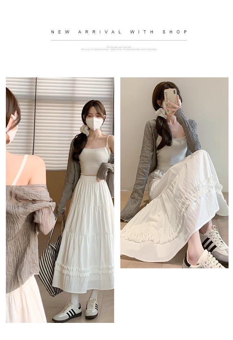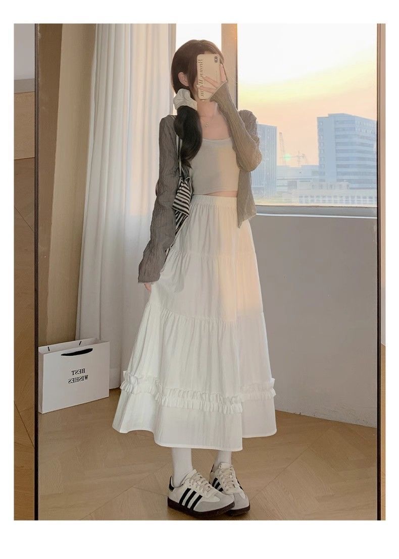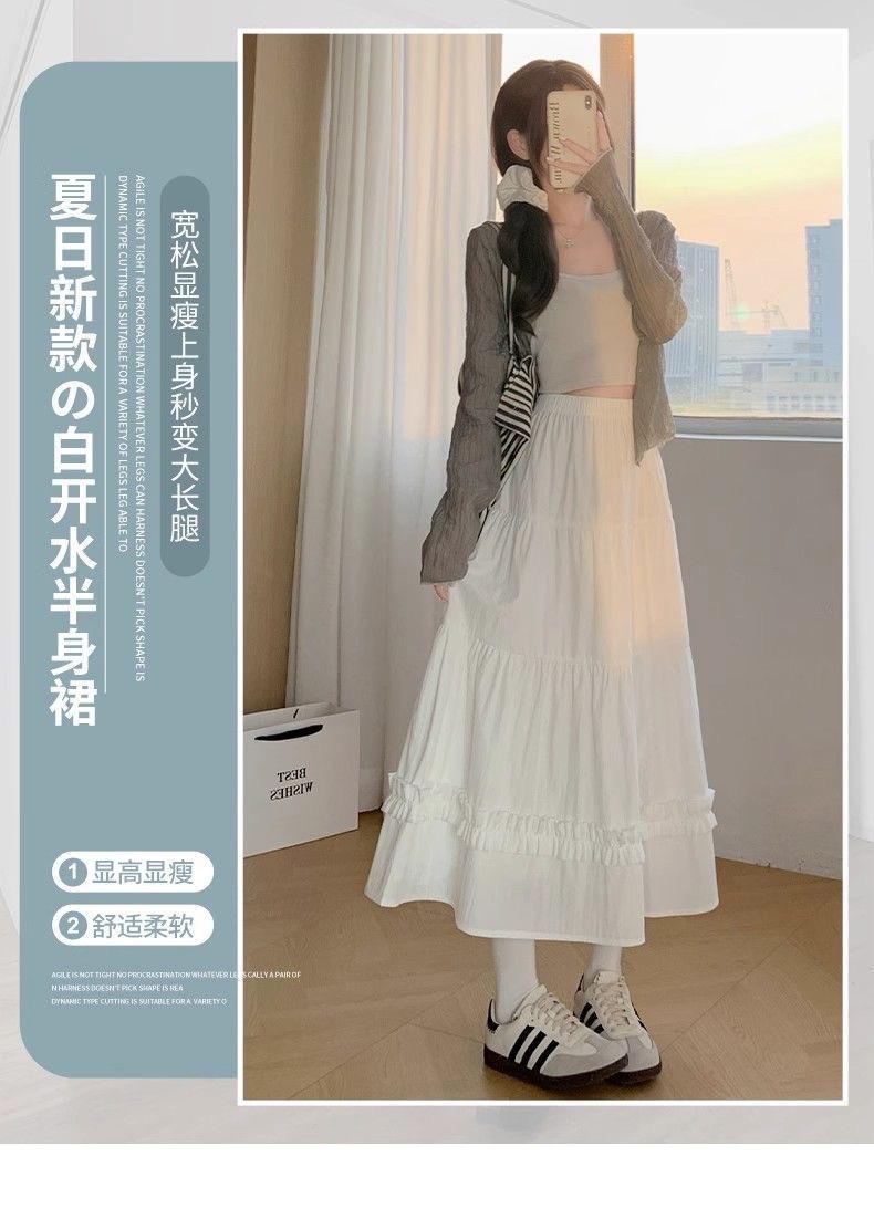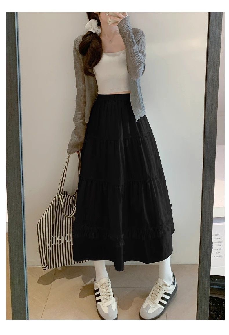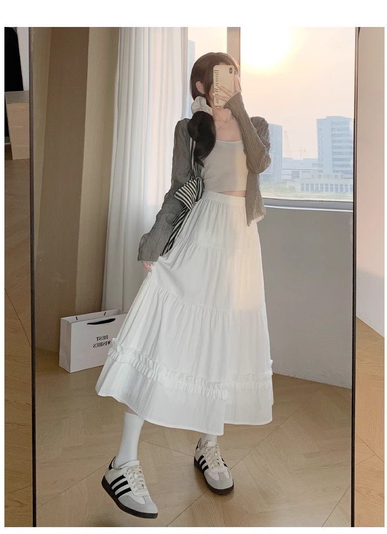 Layered Ruffled Lace Skirt for Women, 2025 Spring and Autumn Design, Versatile Mid-Length Skirt with Elastic Waist, A-Line Skirt