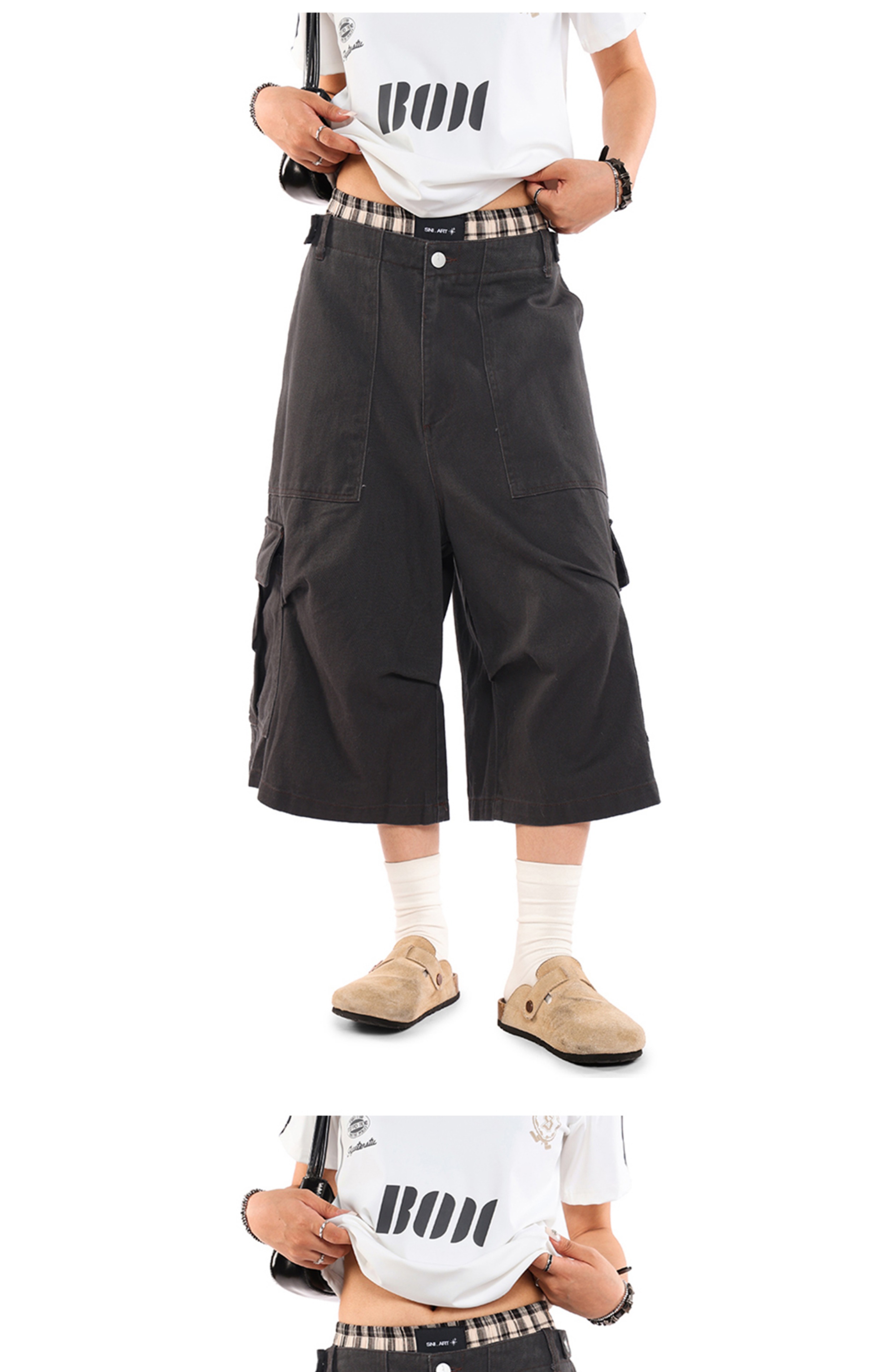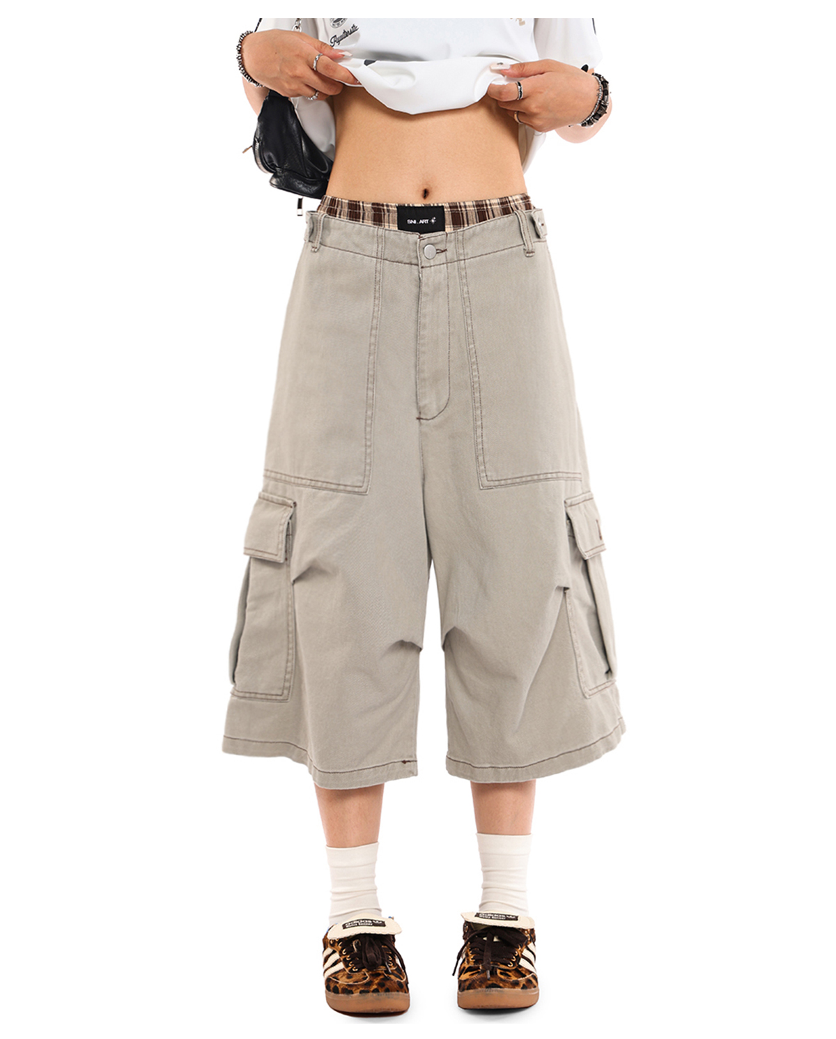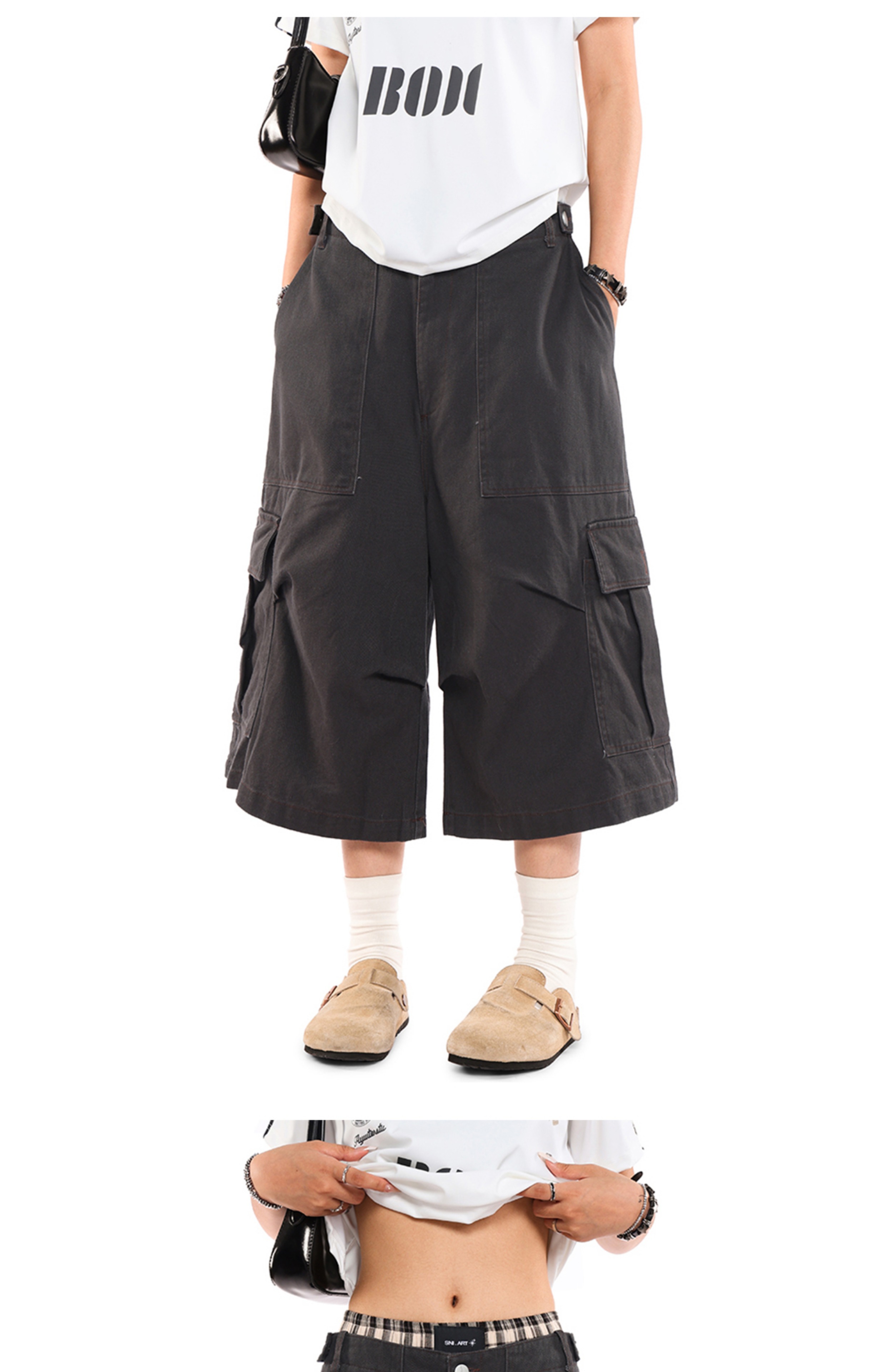0123Start American Retro Distressed Wide-Leg Cargo Shorts for Men and Women, Loose Jorts, Three-Quarter Pants, Trendy
