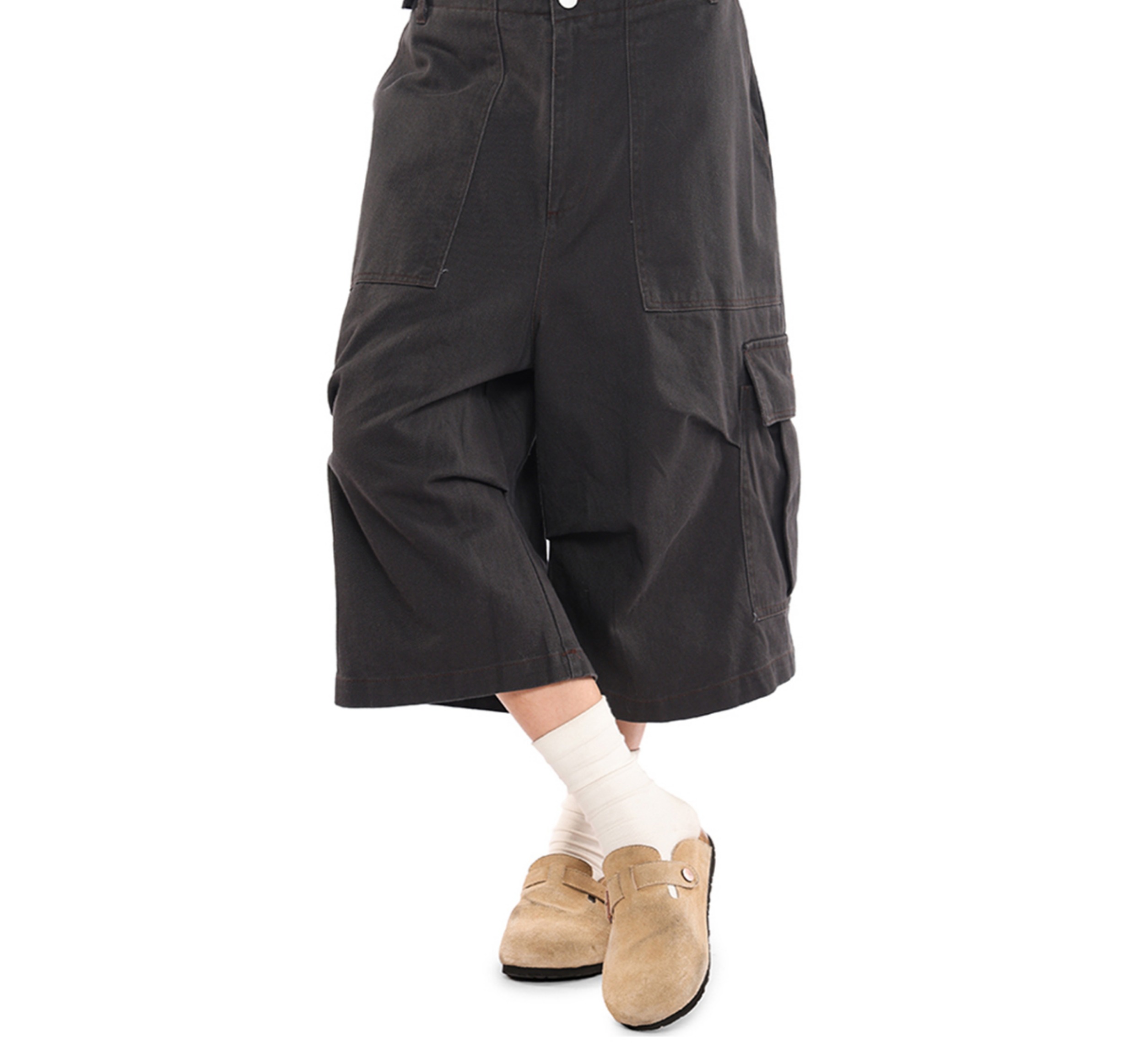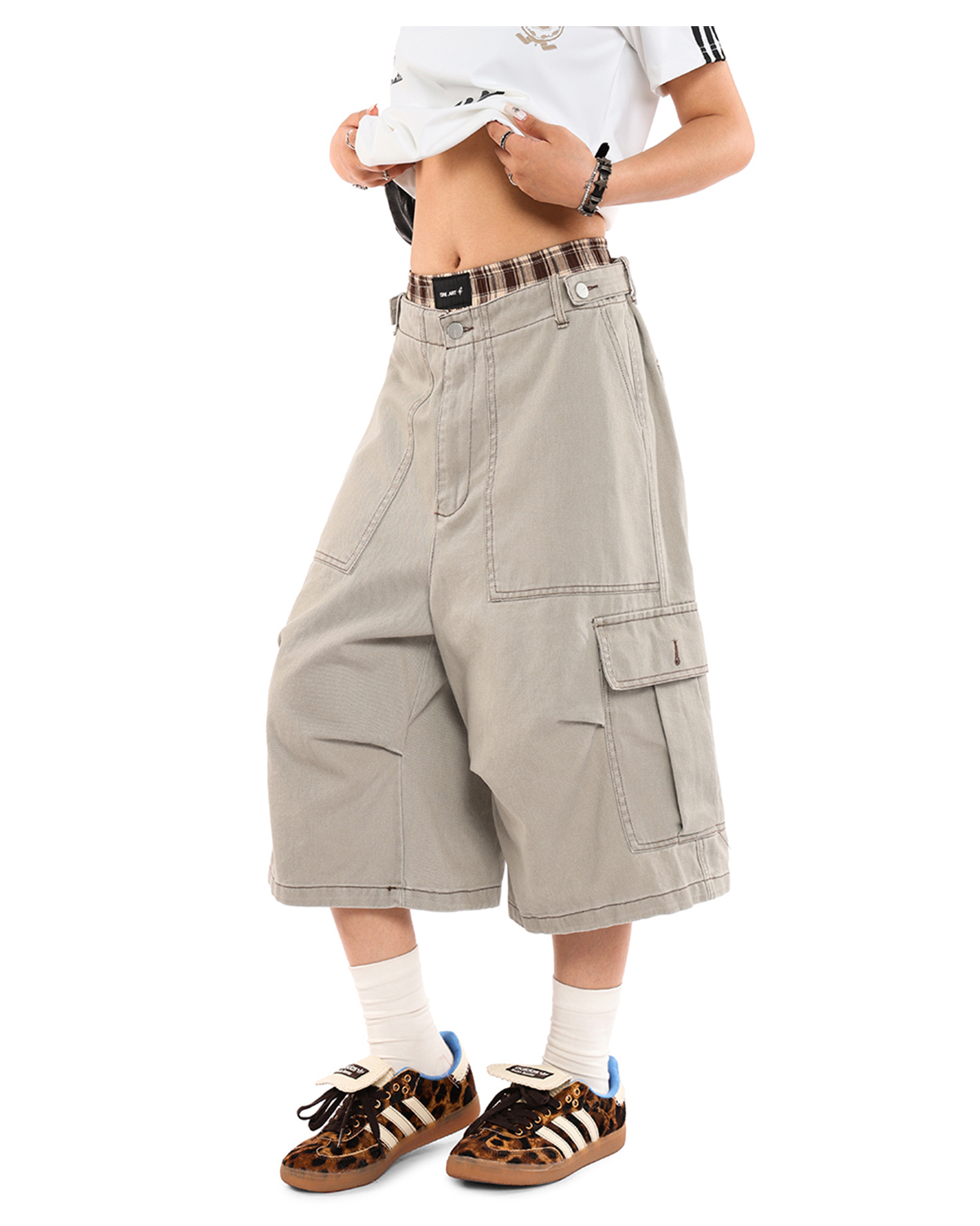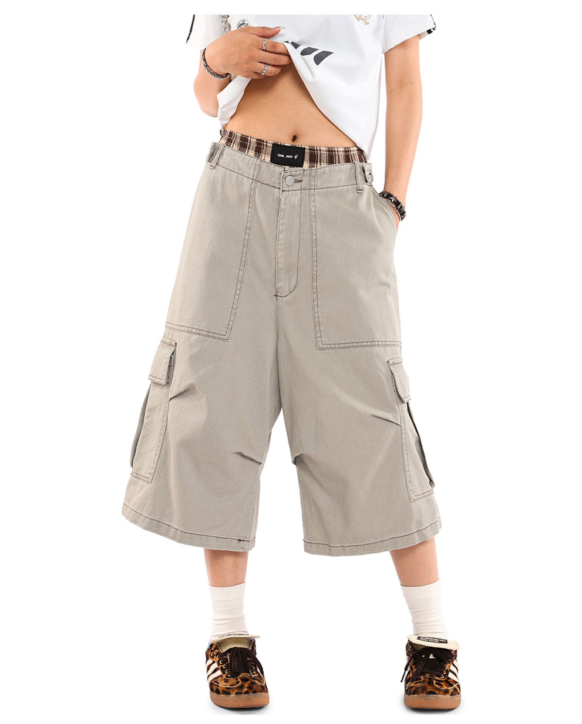 0123Start American Retro Distressed Wide-Leg Cargo Shorts for Men and Women, Loose Jorts, Three-Quarter Pants, Trendy