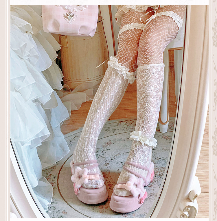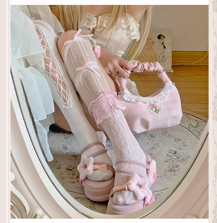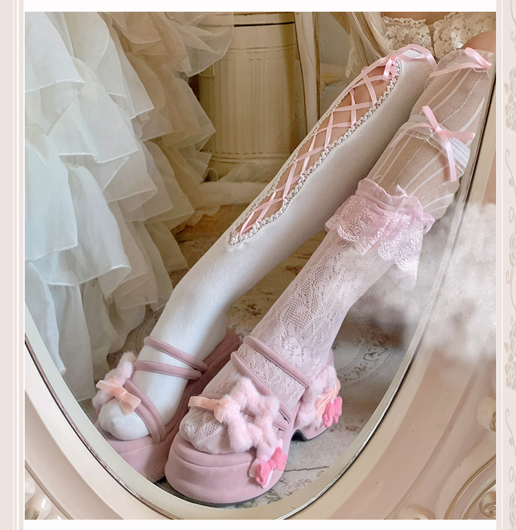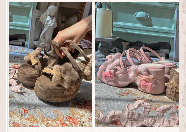 Pinkyo Original Leopard Print Plush Star Bow Sandals Japanese Style Shibuya Hot Girl Vintage Style Thick-Soled High Heels