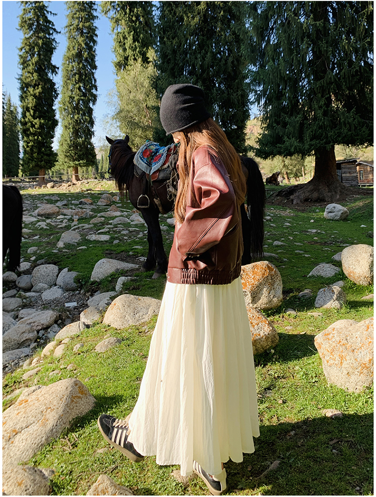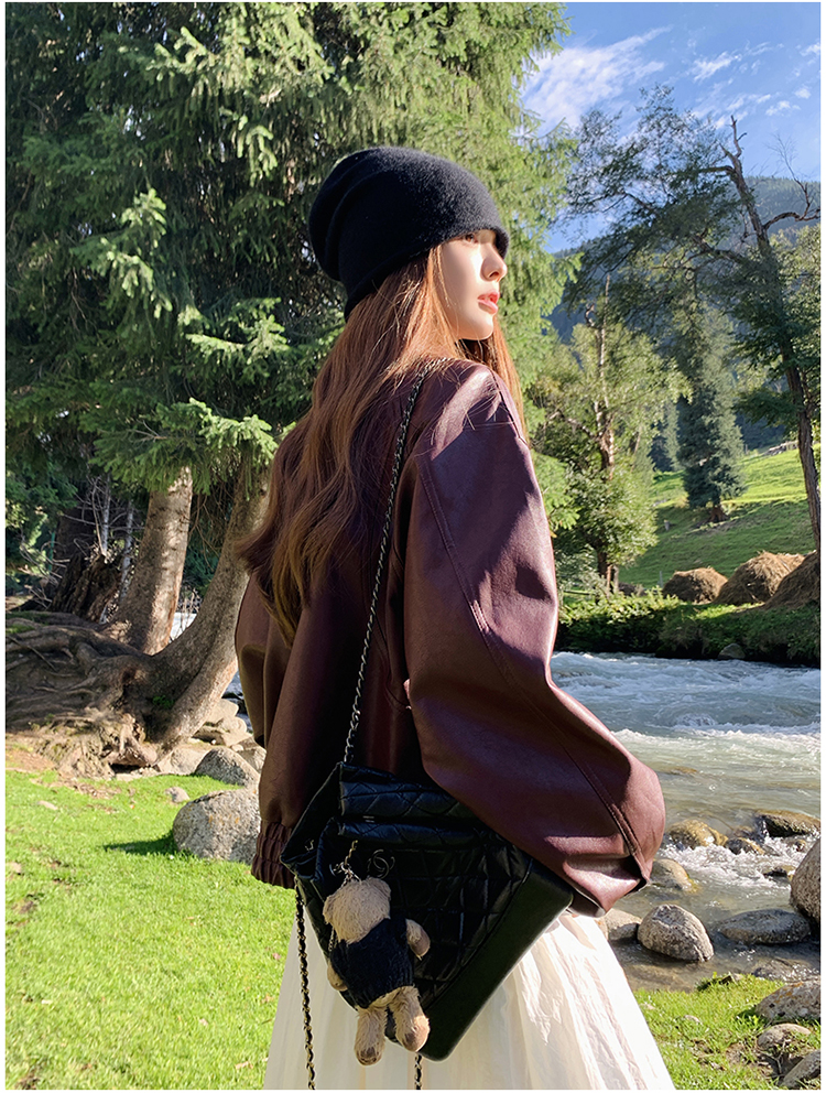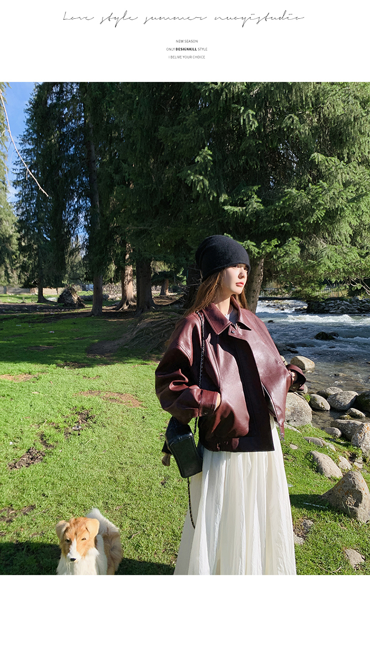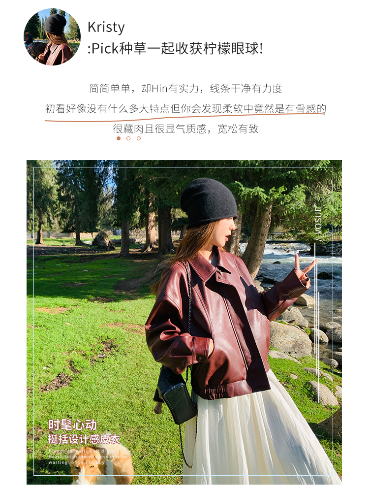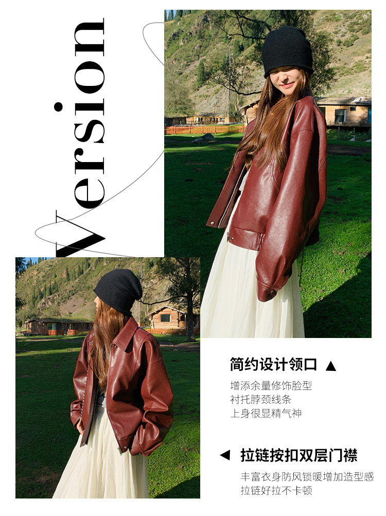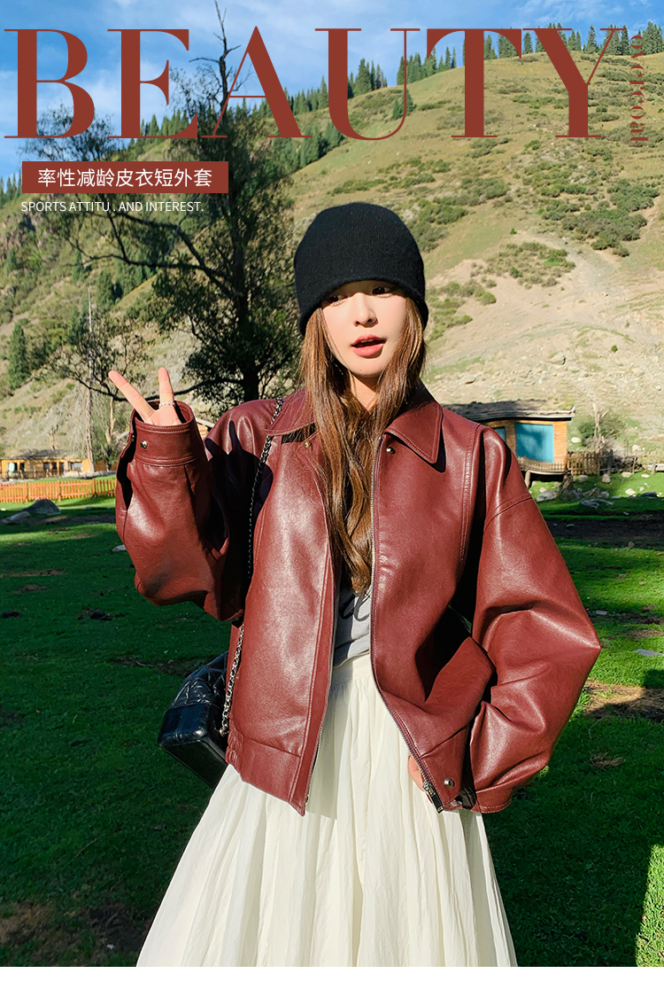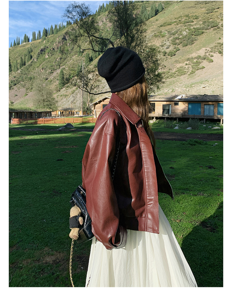Leather Jacket for Women, High-End 2025 New Style, Casual Short Red Leather Jacket for Petite Women, Early Autumn Top