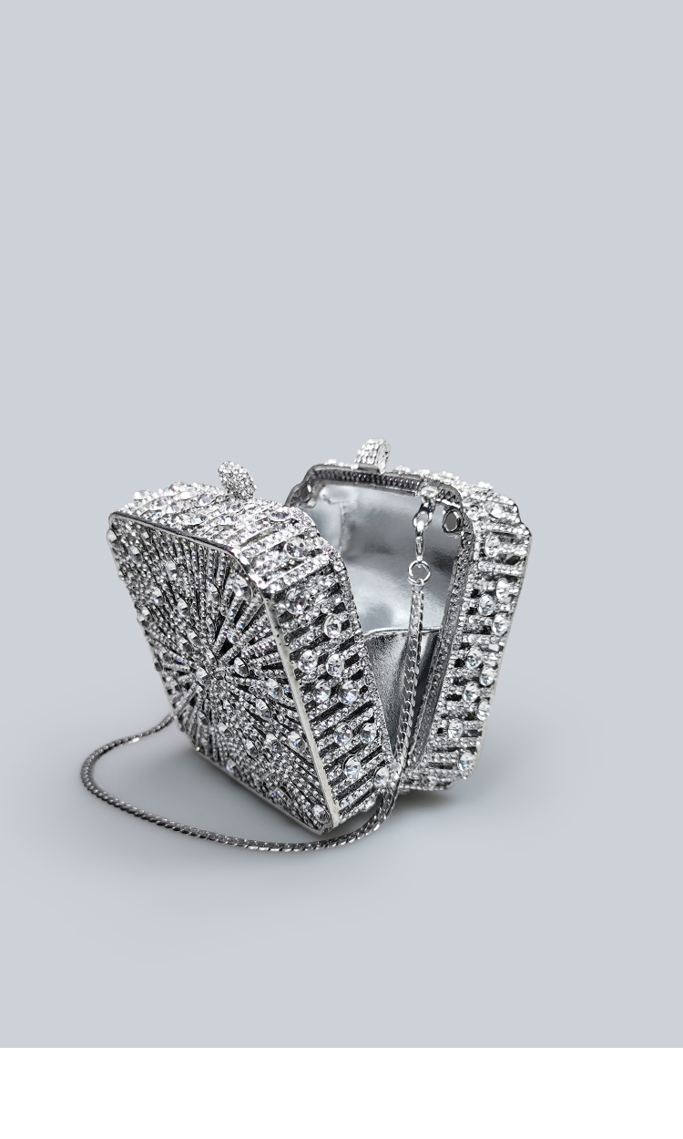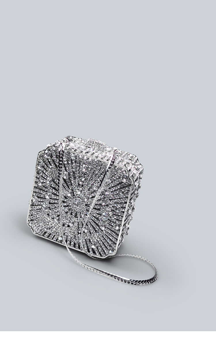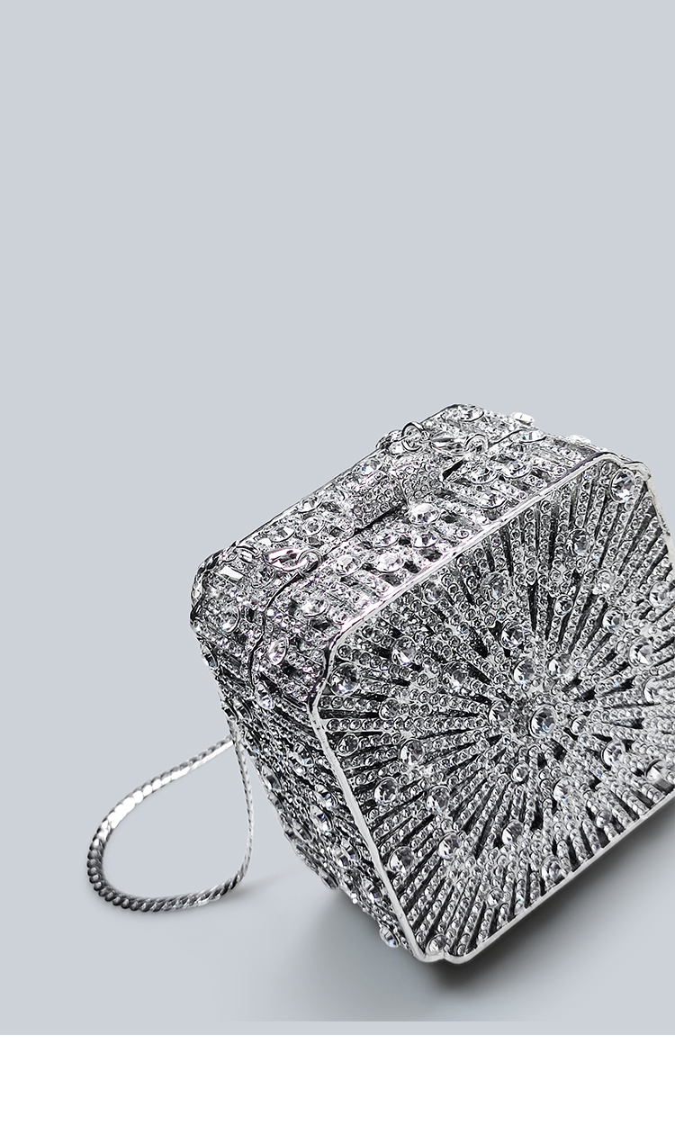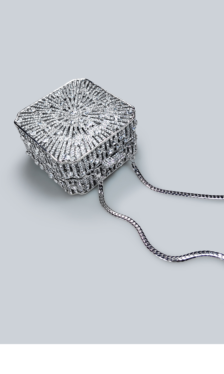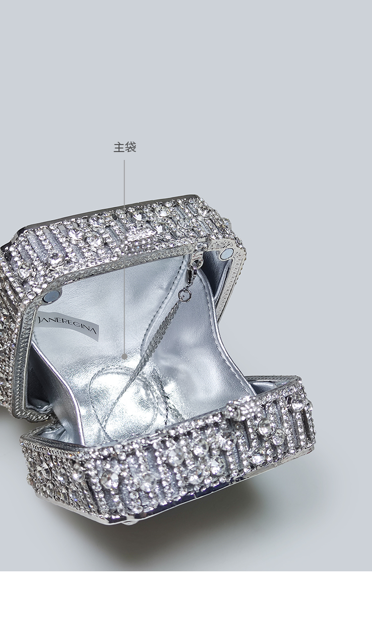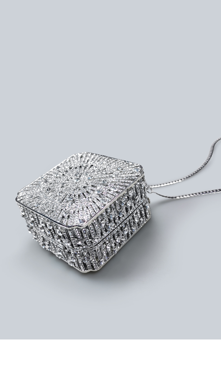 Light Luxury Sparkling Diamond-Decorated Bag, High-End Dress Matching Evening Bag, Silver Mini Bag, New Hand-Held Small Square Bag