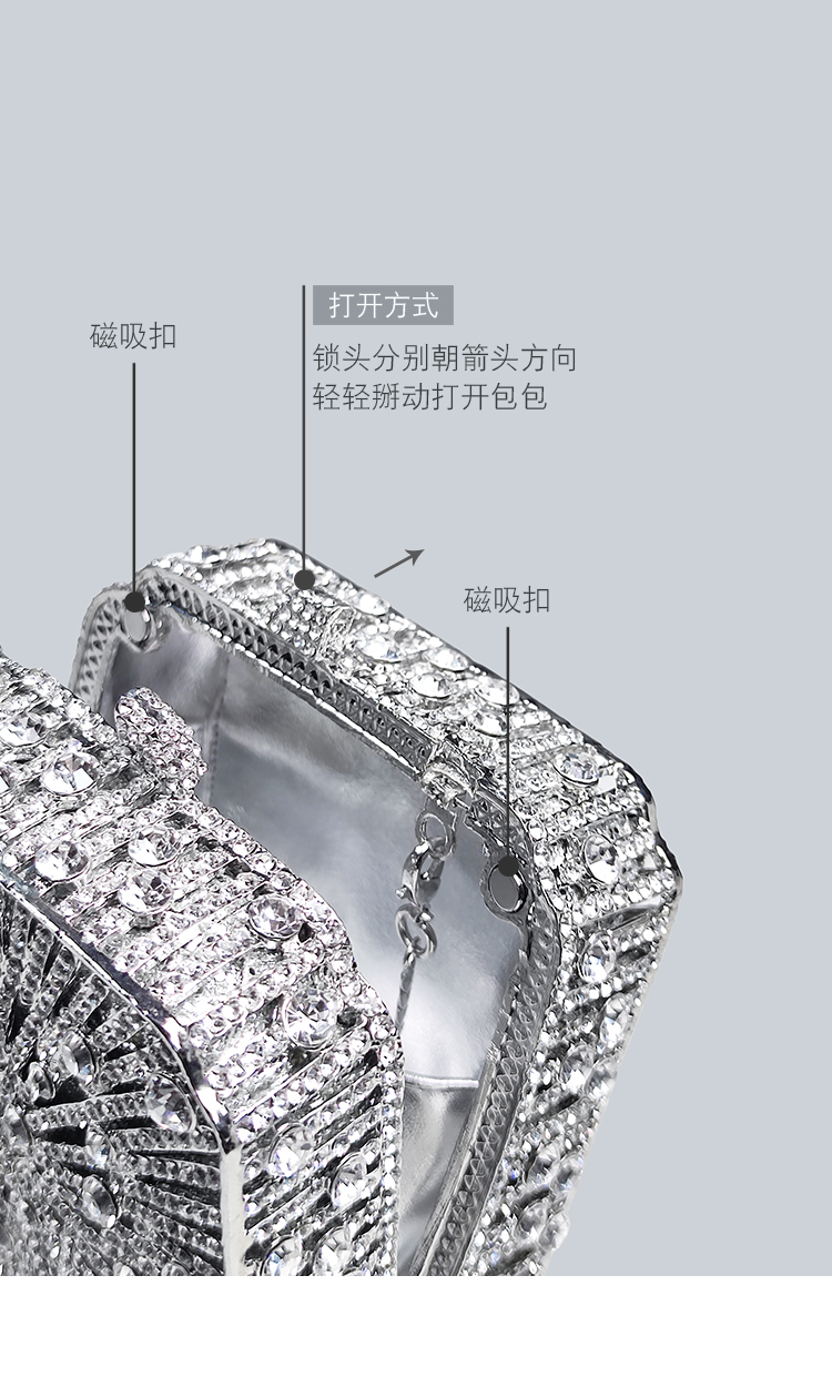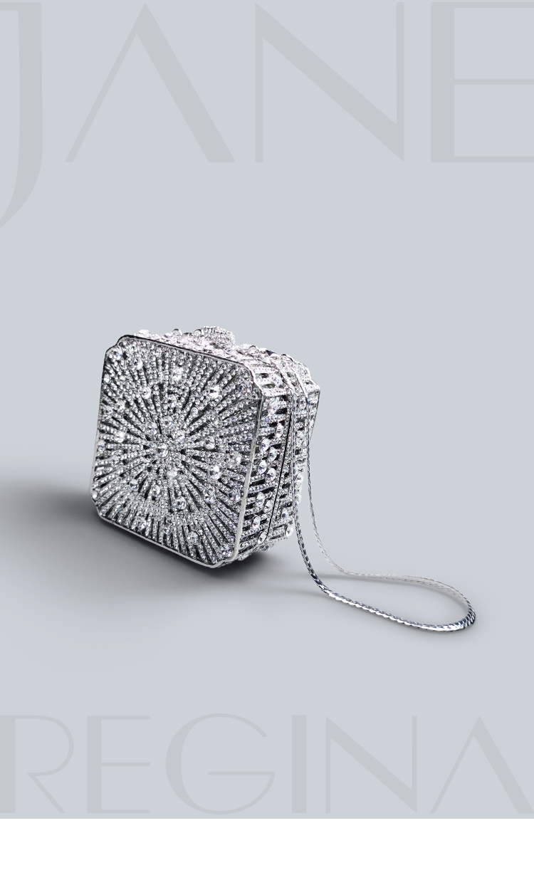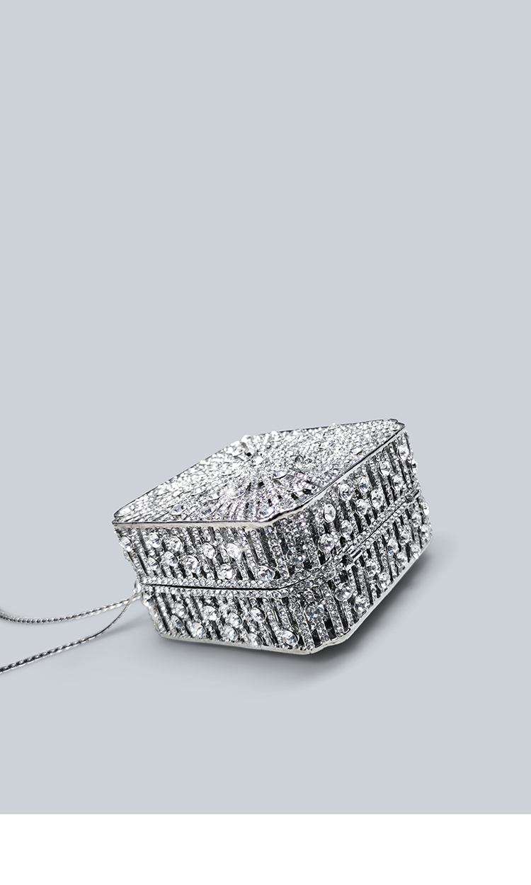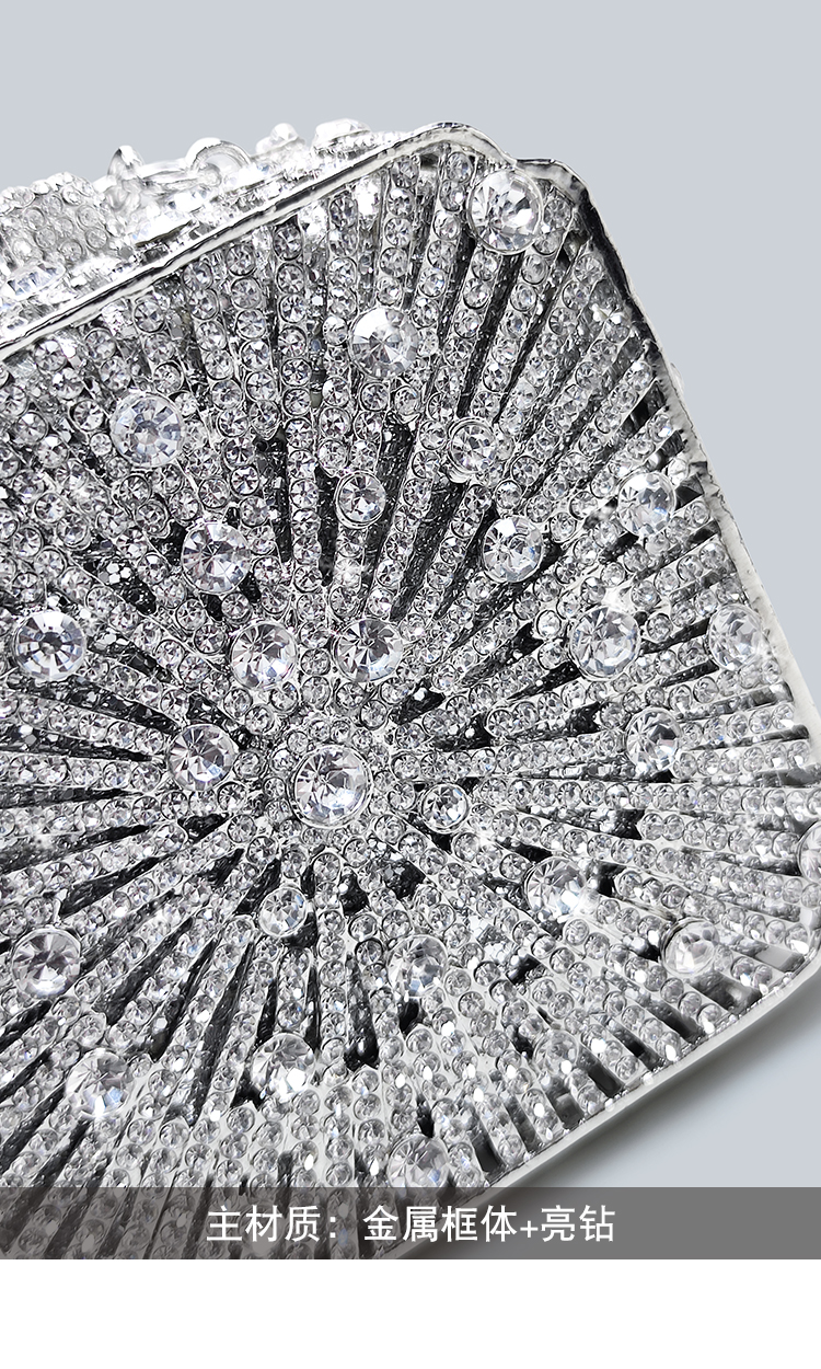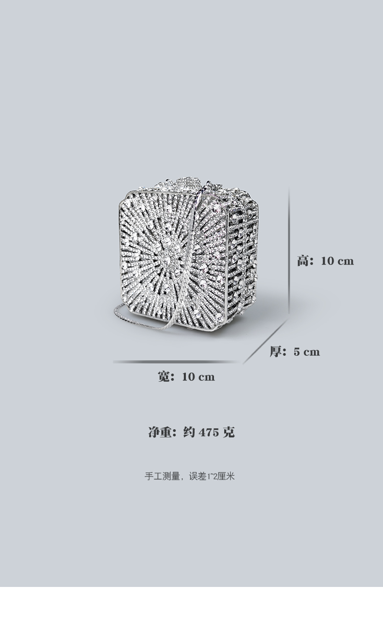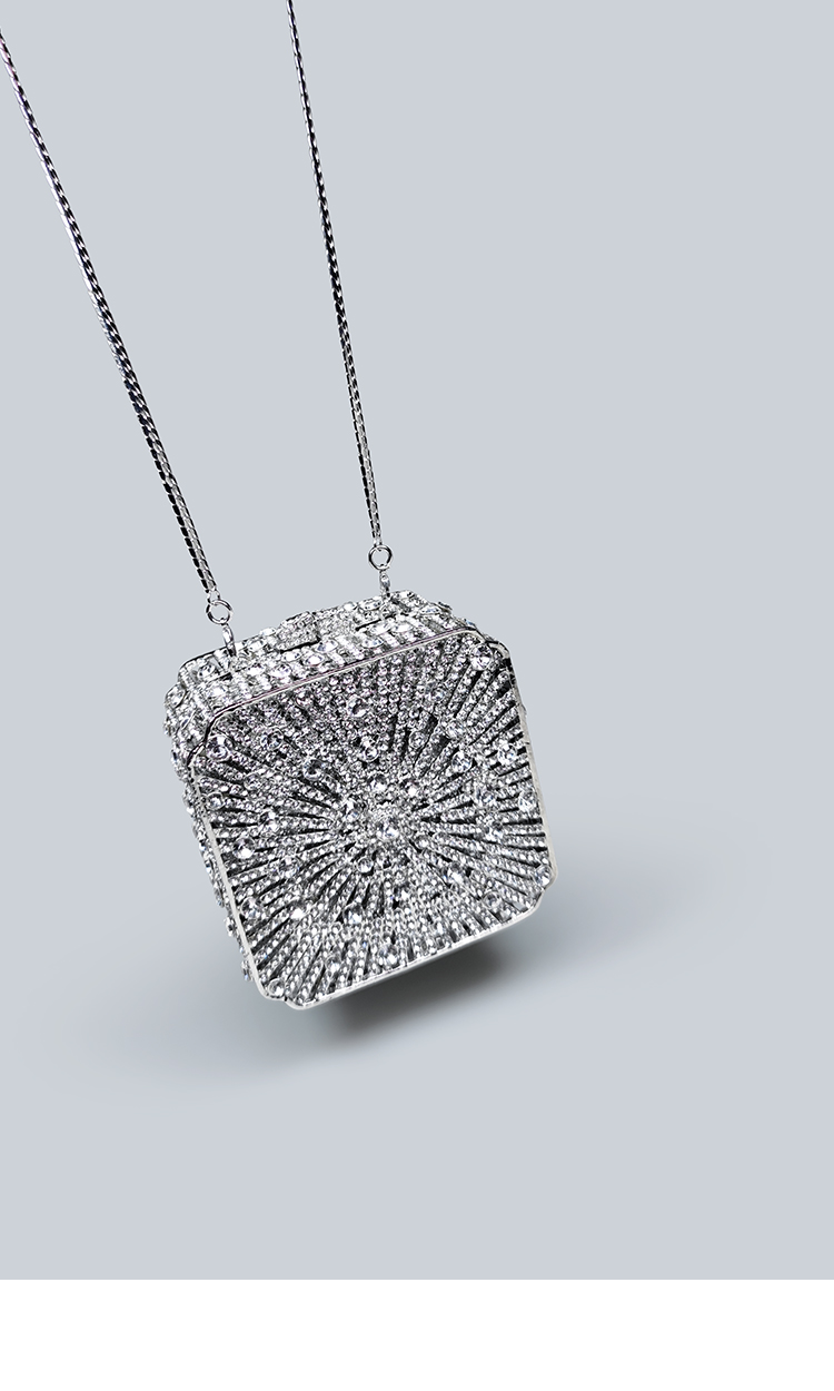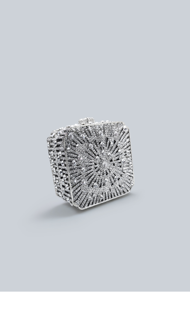 Light Luxury Sparkling Diamond-Decorated Bag, High-End Dress Matching Evening Bag, Silver Mini Bag, New Hand-Held Small Square Bag