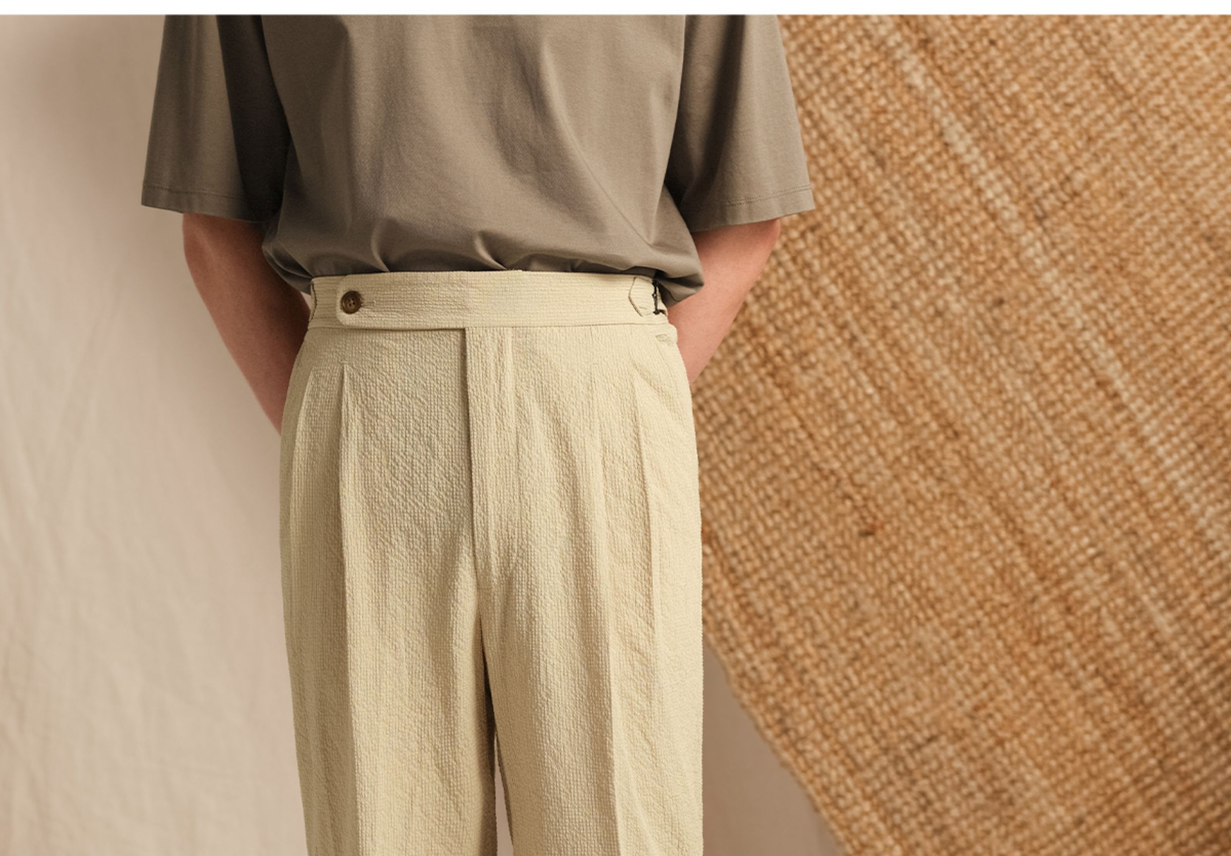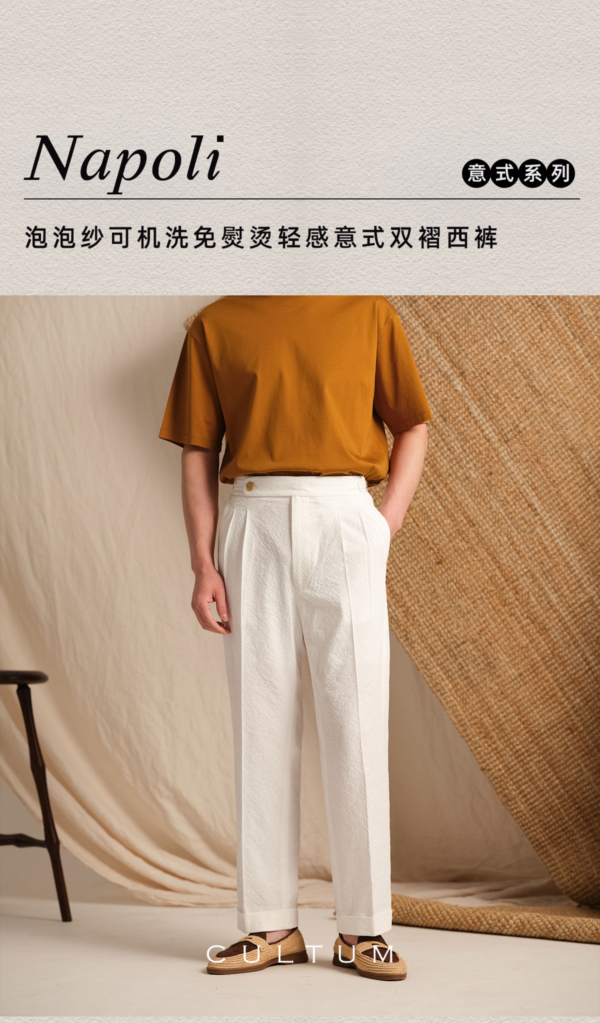 【Zero Gravity Feel, Machine Washable】Cultum Italian Bubble Gauze No-Iron Lightweight Breathable Double-Pleated Casual Dress Pants for Men