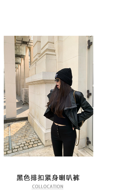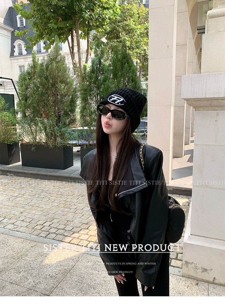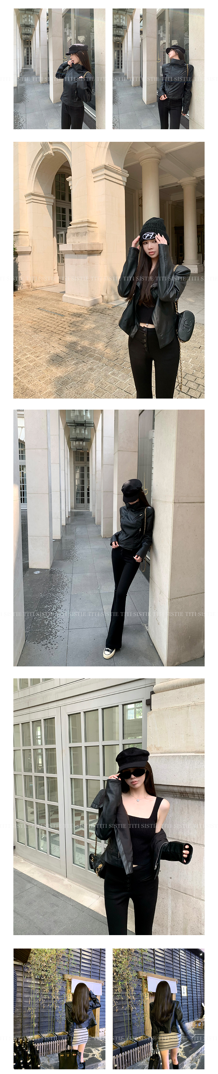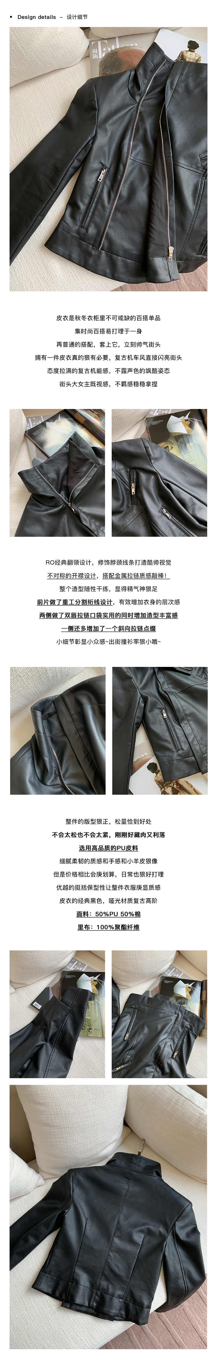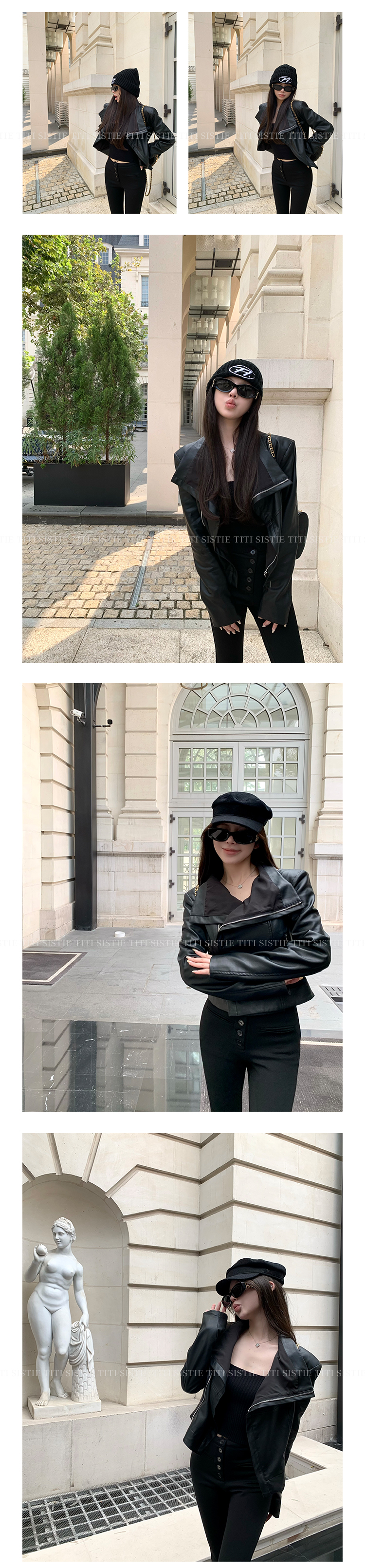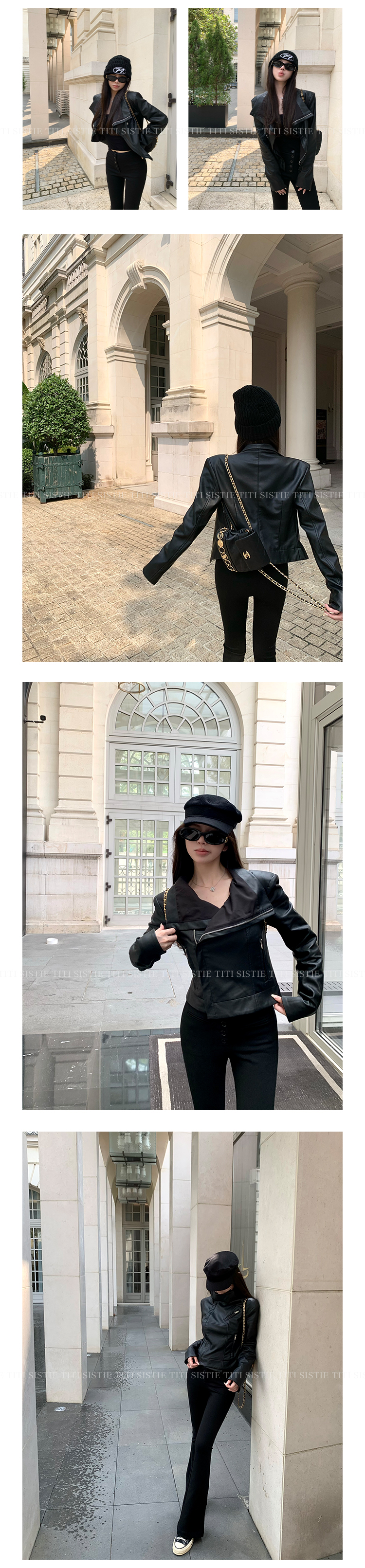 Titi Sister [Notting Hill Jazz] Leather Jacket Women's Motorcycle Style Autumn Black Vintage Pu Leather Jacket Coat