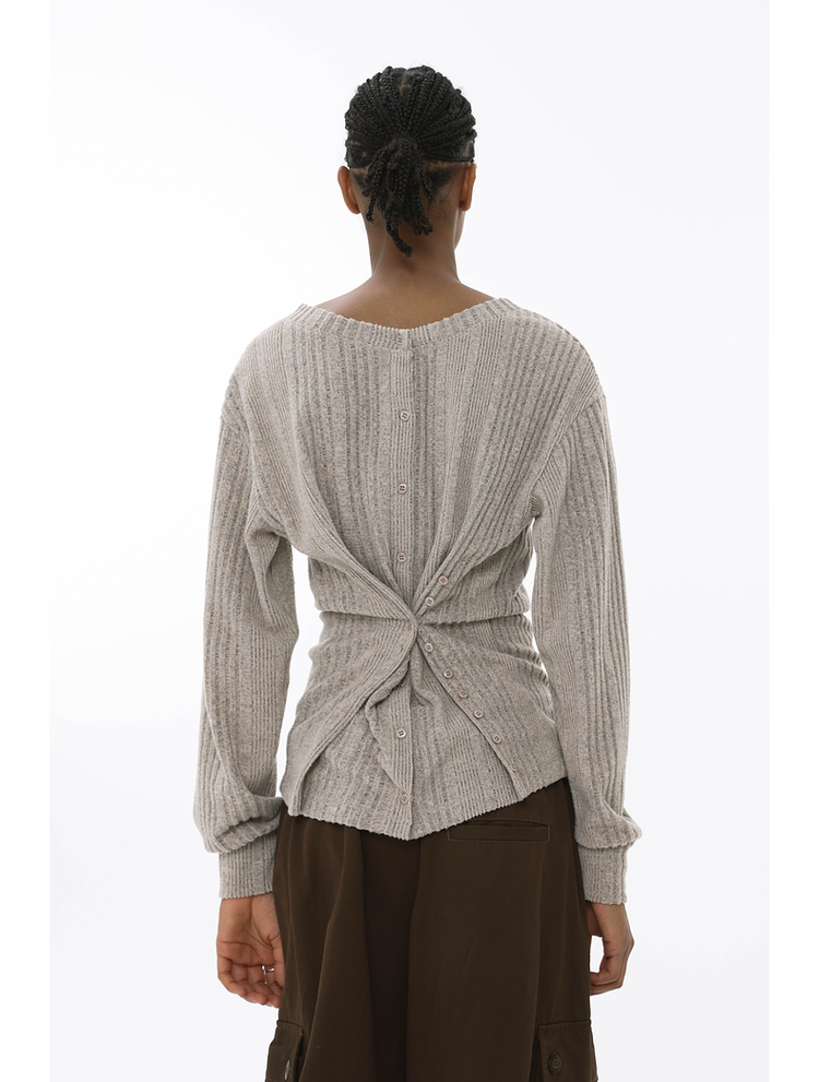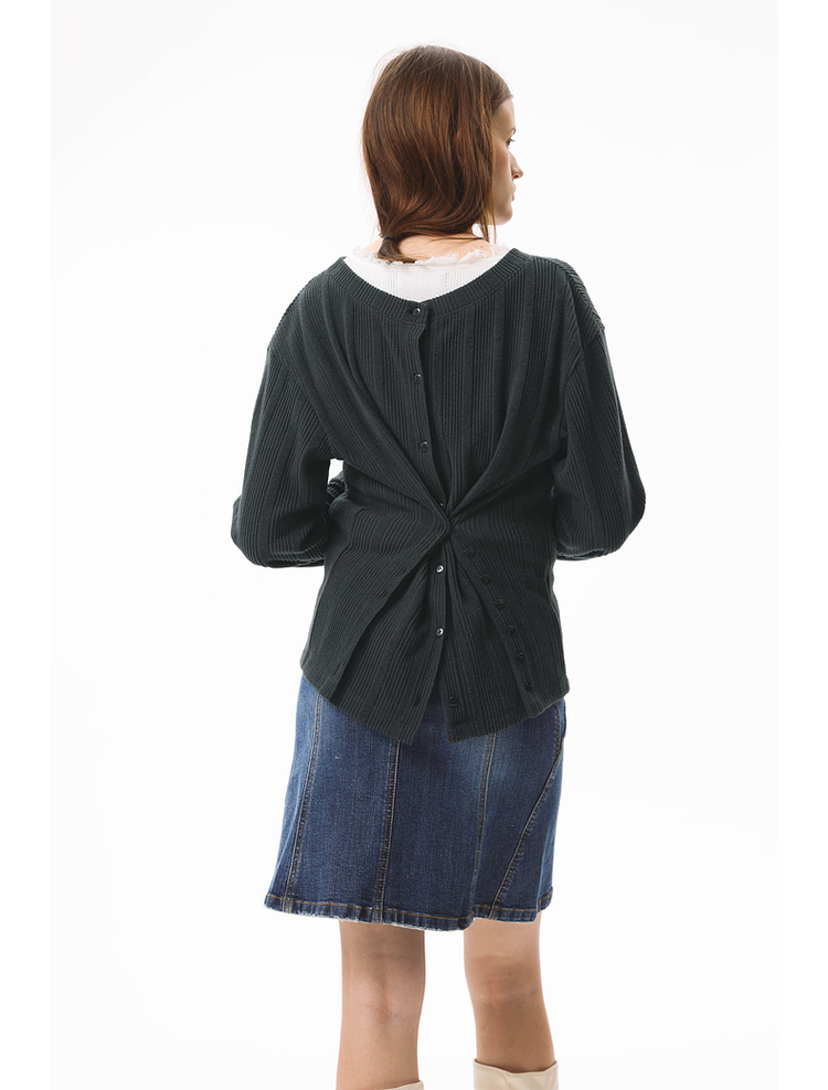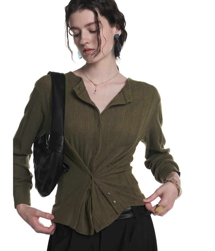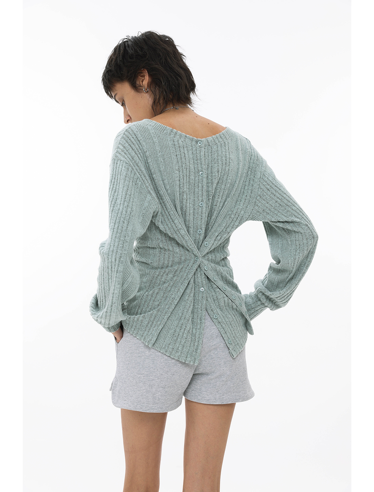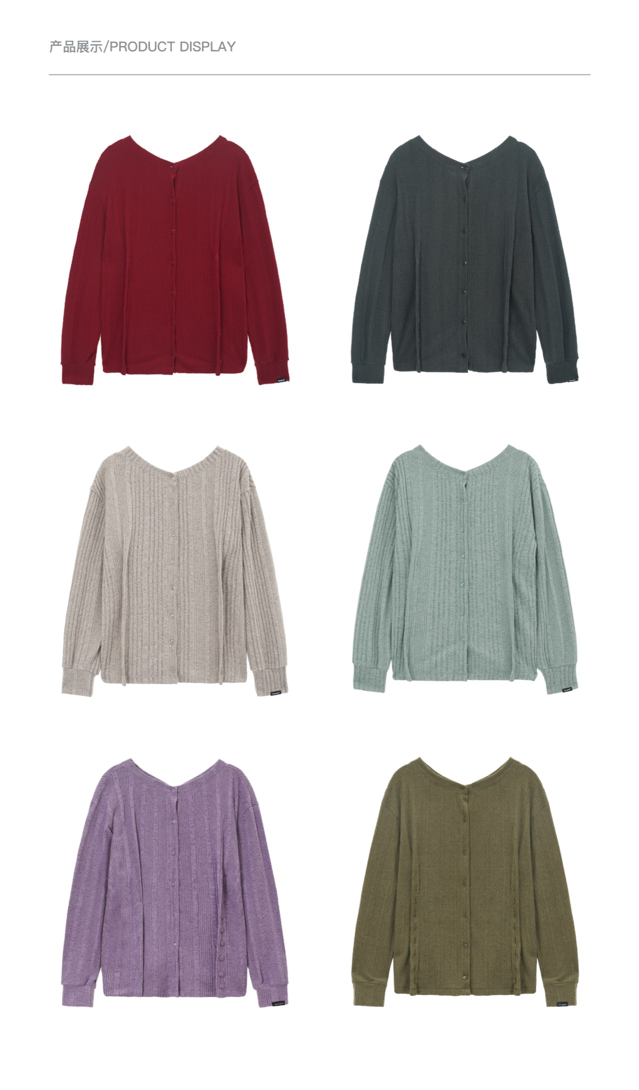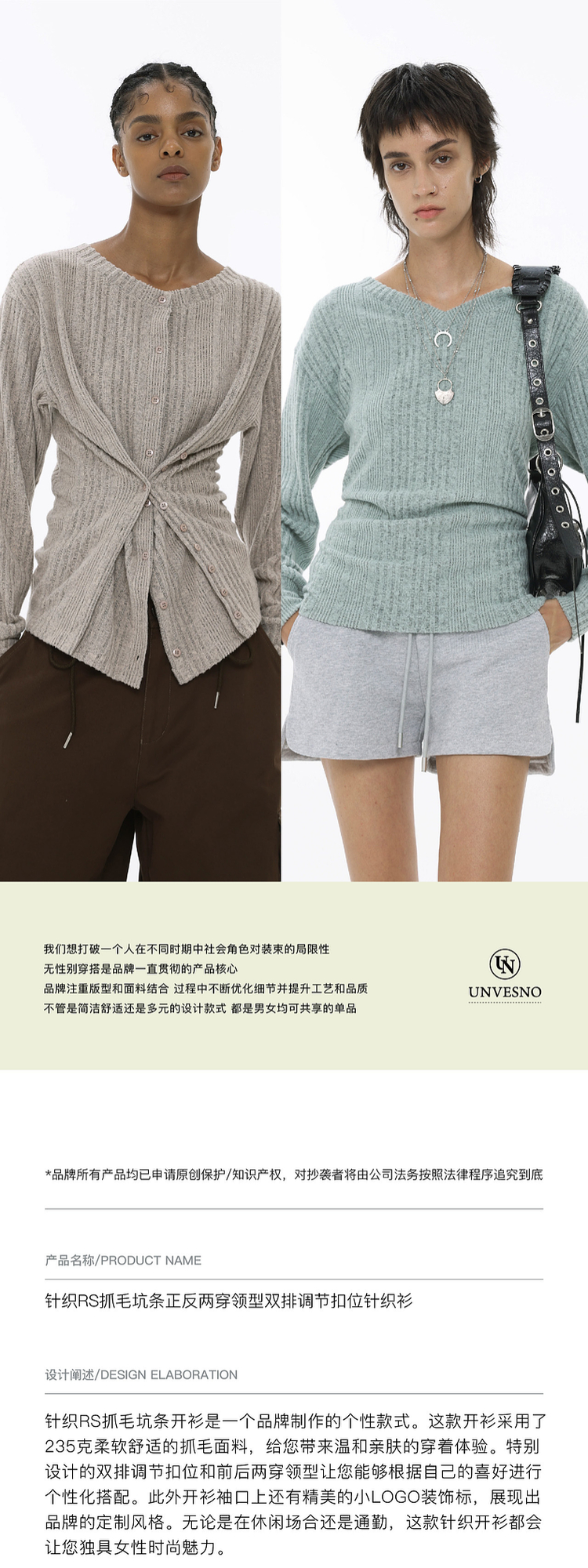 Unvesno (Un) Two-Way Wear Double-Row Adjustable Buckle Autumn Slim Fit Fleece Lazy Long-Sleeve Knit Sweater