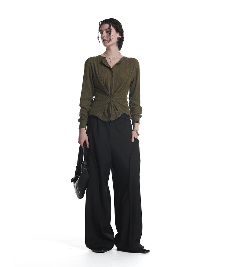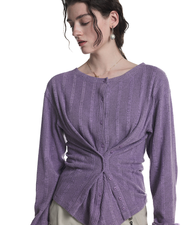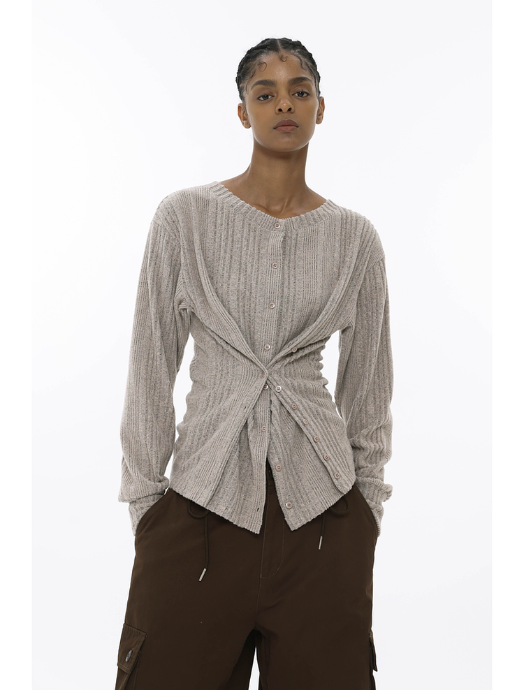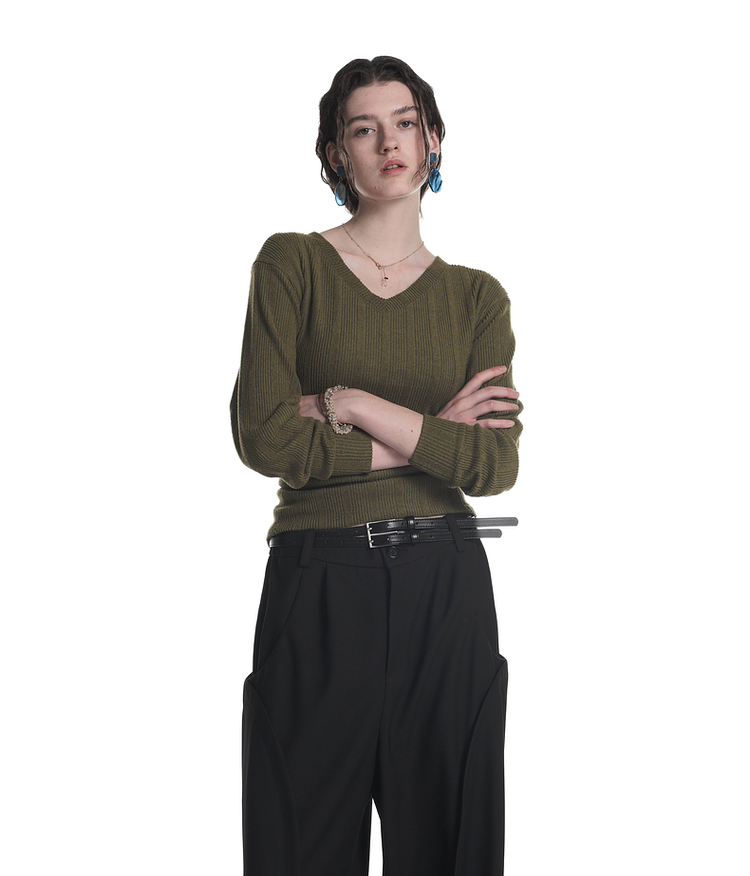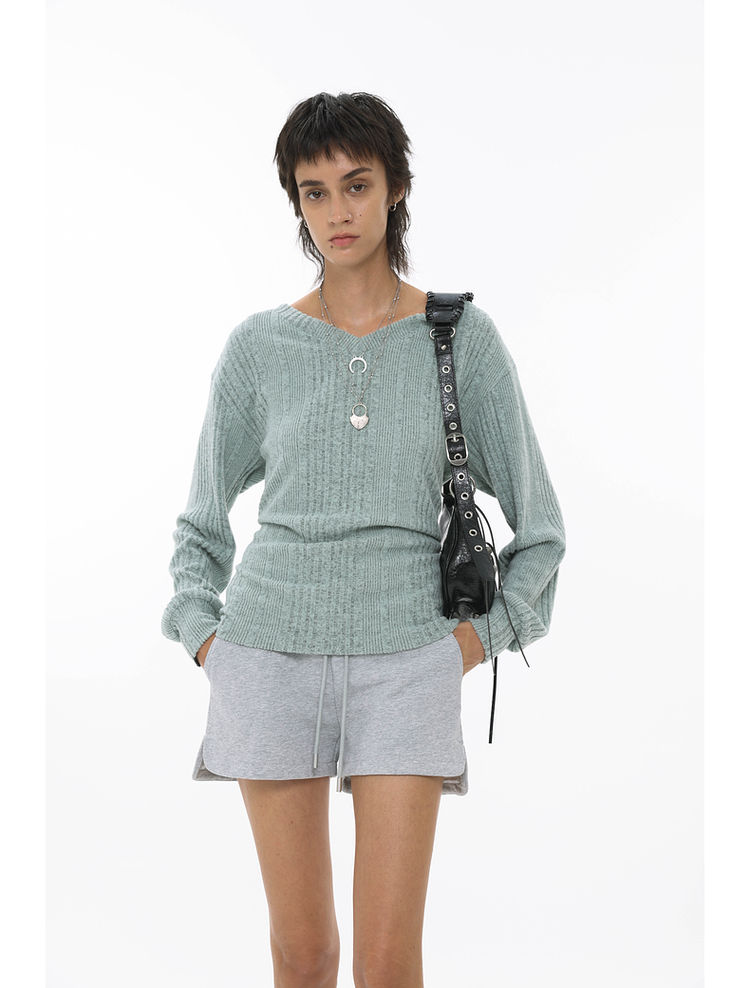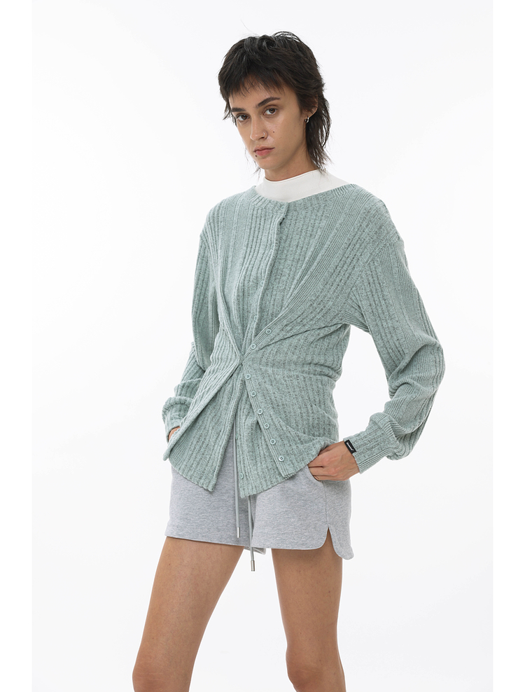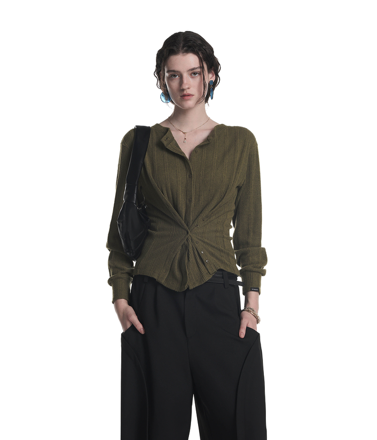 Unvesno (Un) Two-Way Wear Double-Row Adjustable Buckle Autumn Slim Fit Fleece Lazy Long-Sleeve Knit Sweater