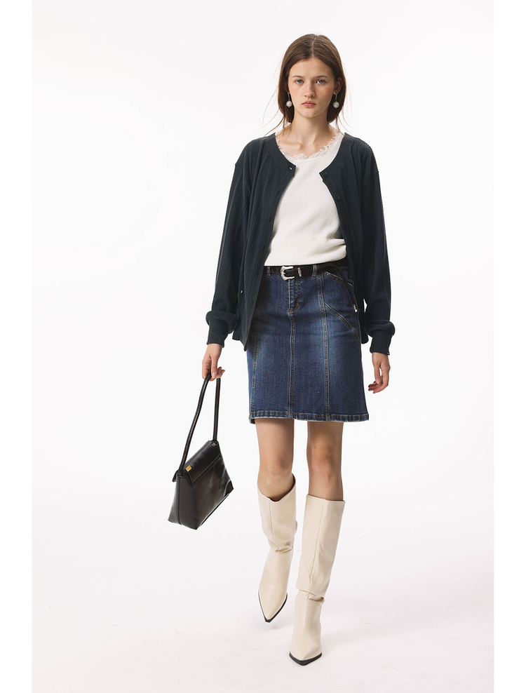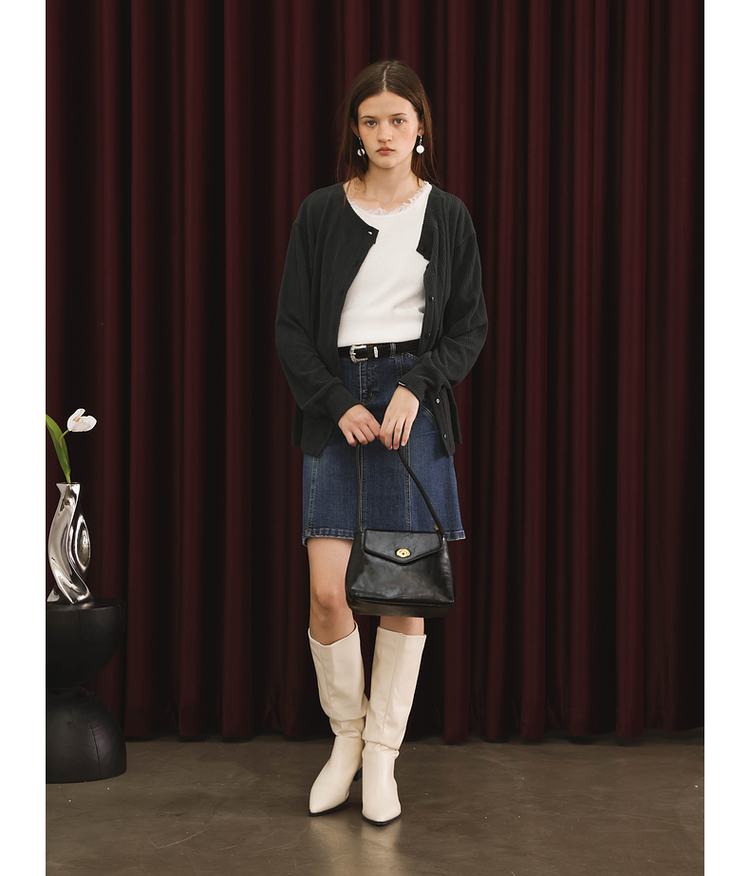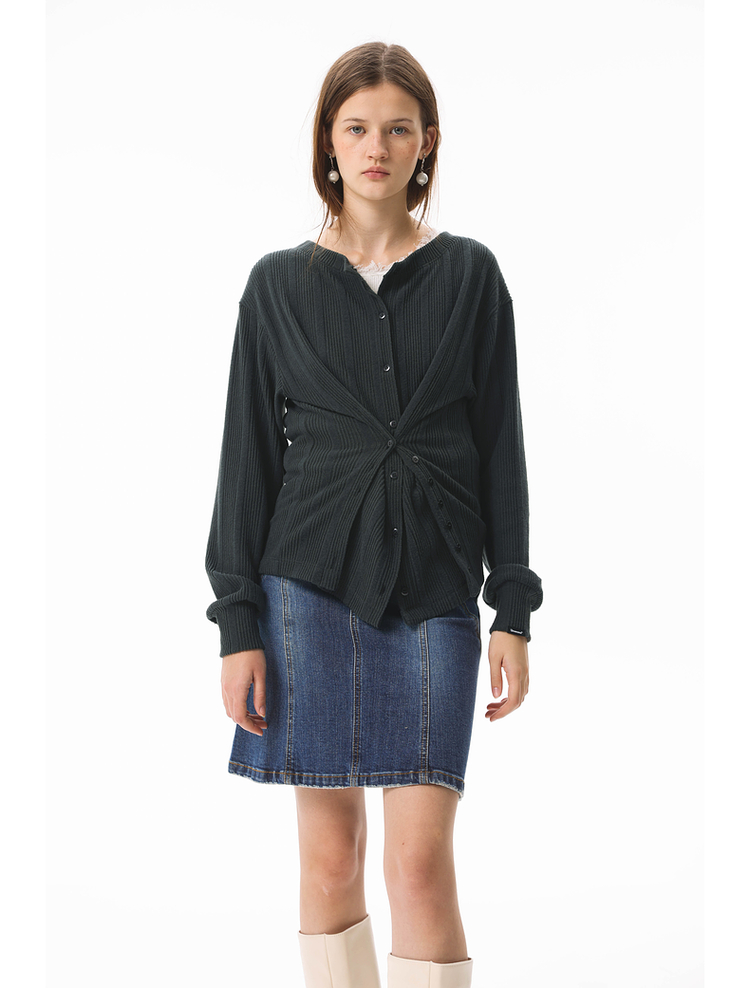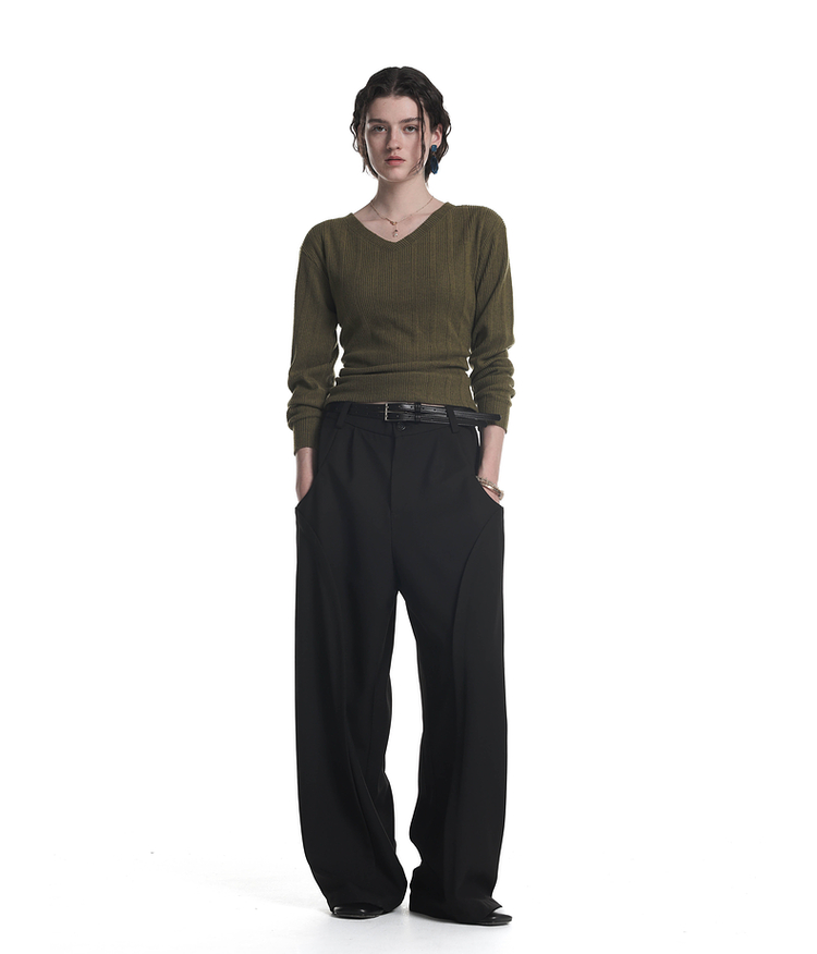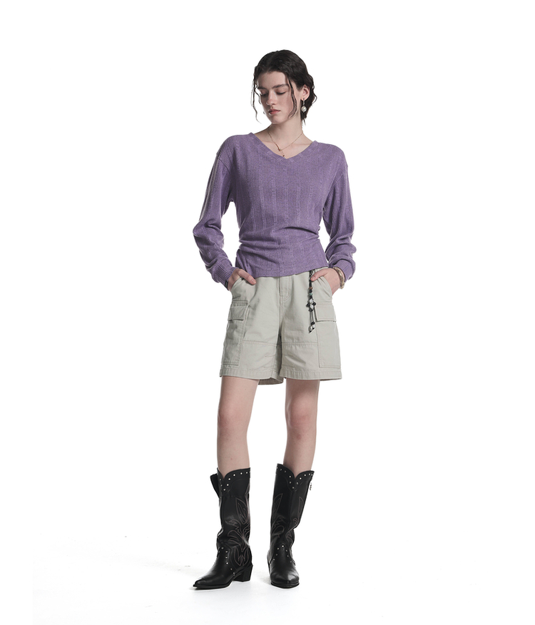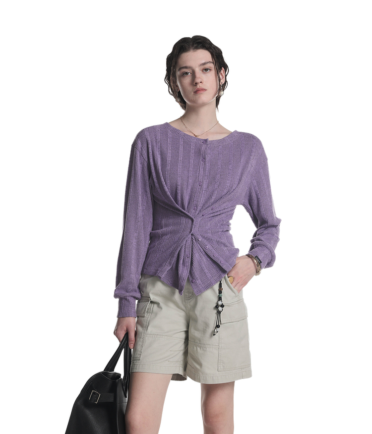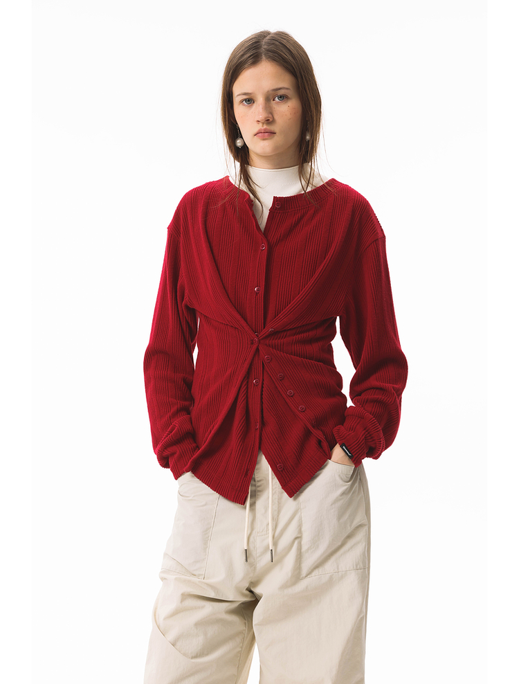 Unvesno (Un) Two-Way Wear Double-Row Adjustable Buckle Autumn Slim Fit Fleece Lazy Long-Sleeve Knit Sweater