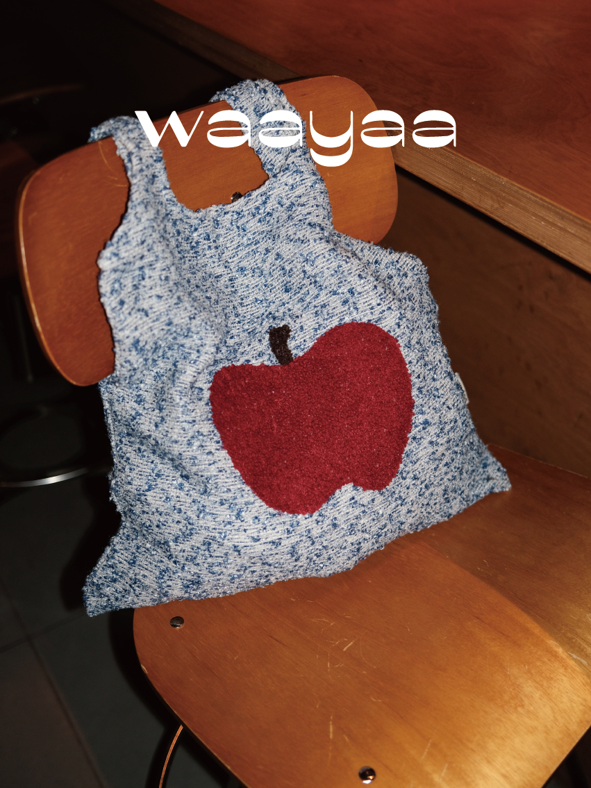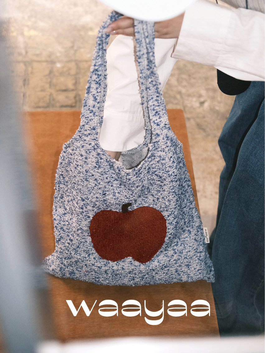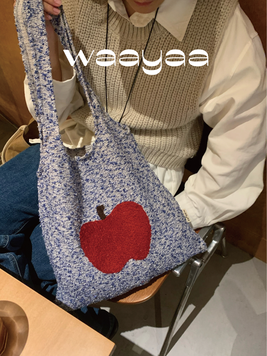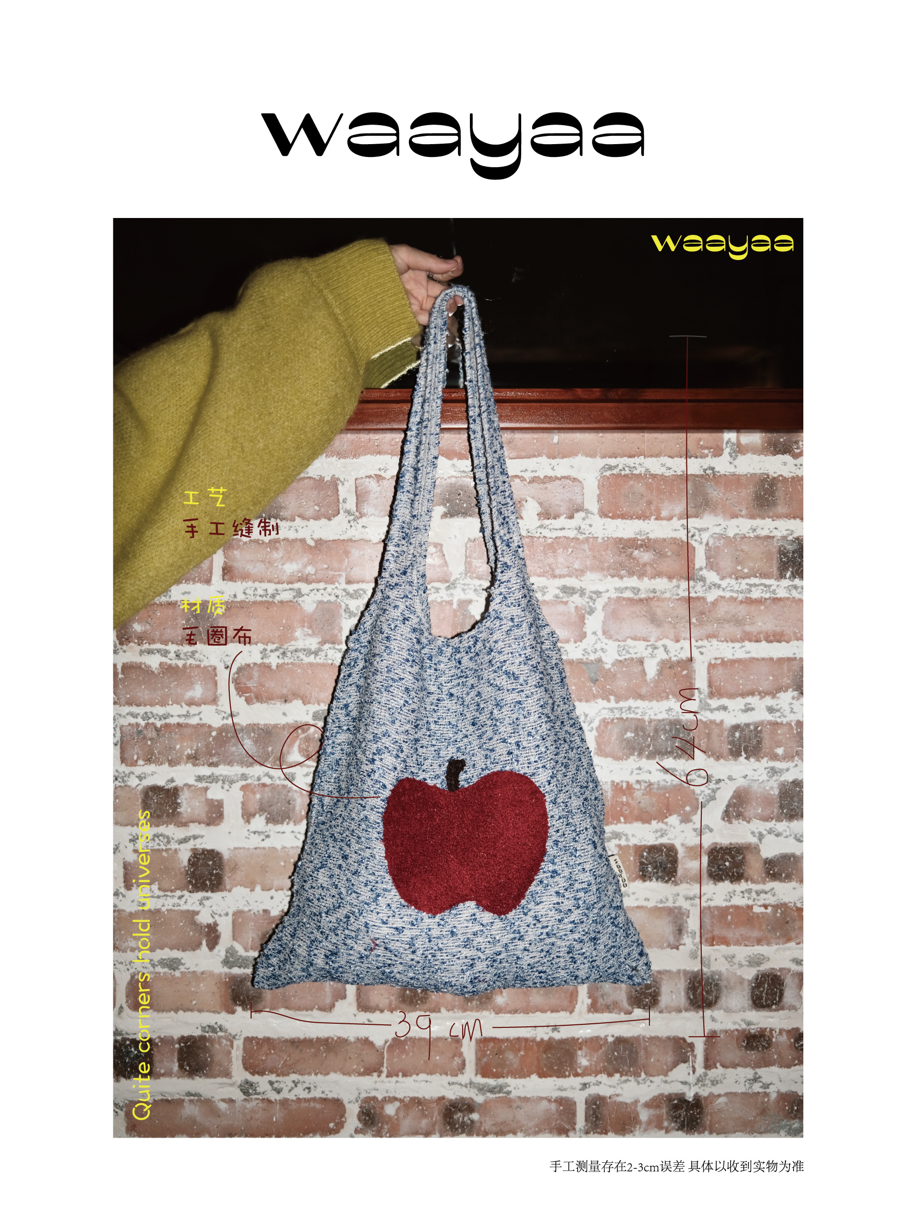 Hug Waayaa Niche Original Textured Fabric Thick Thread Colorful Apple Embroidery Shoulder Tote Bag Storage Casual