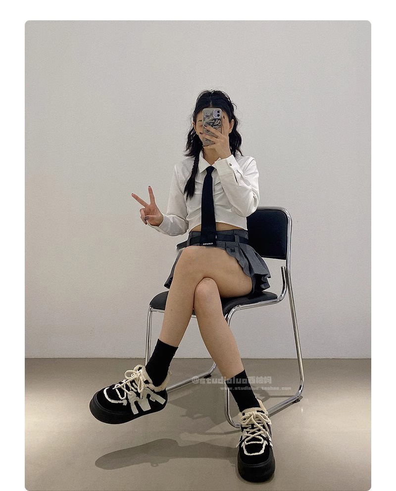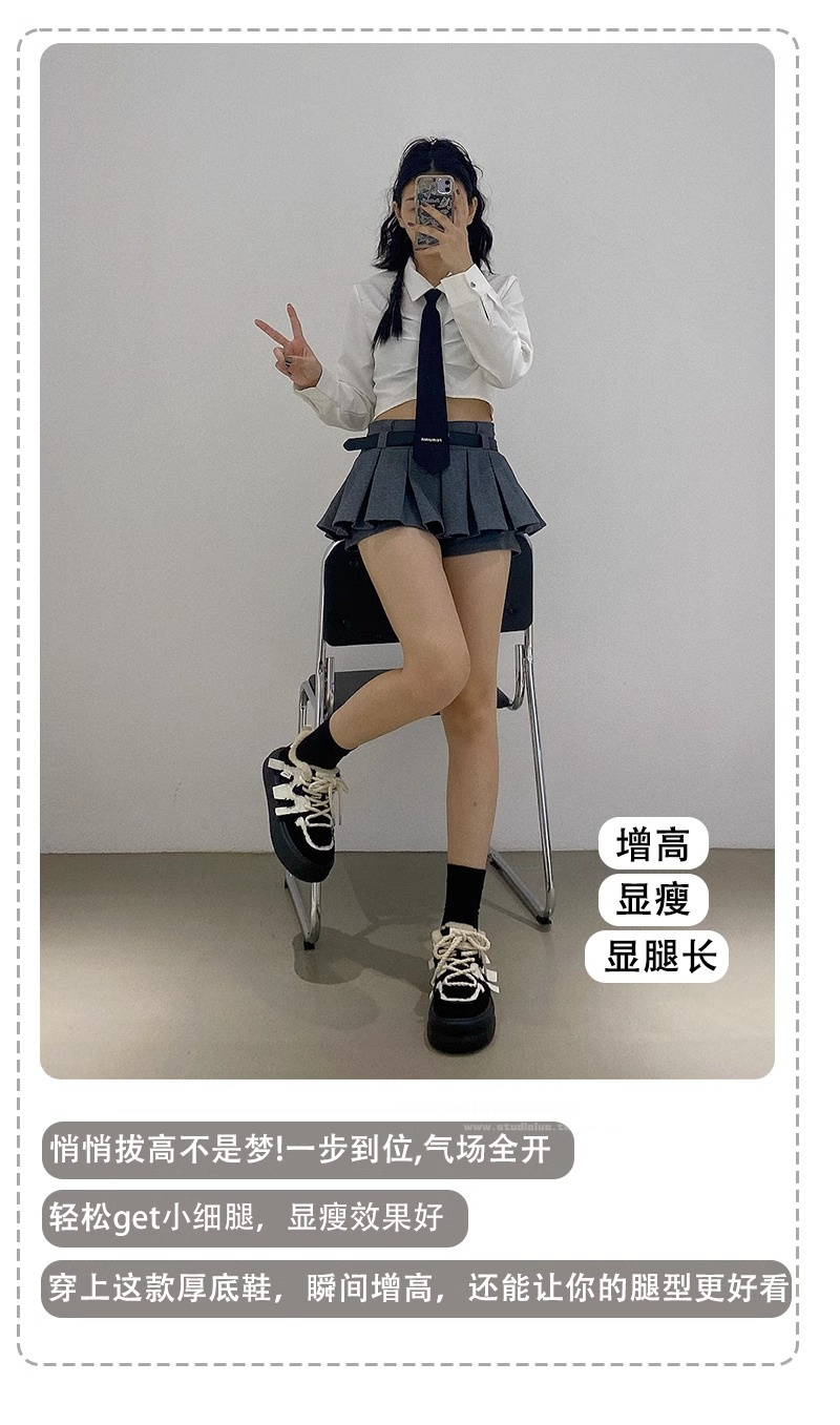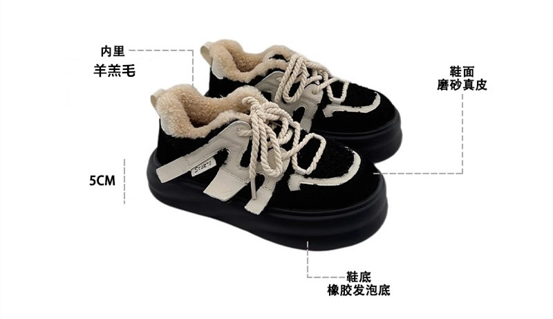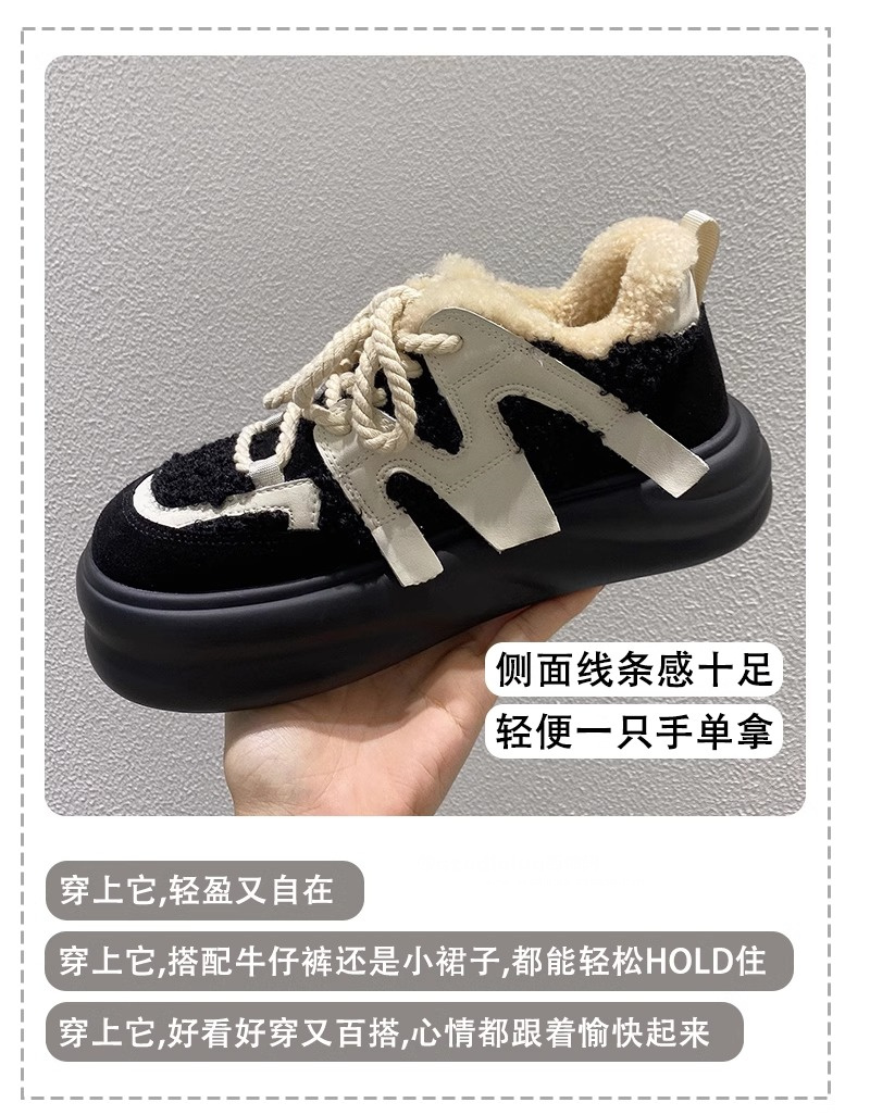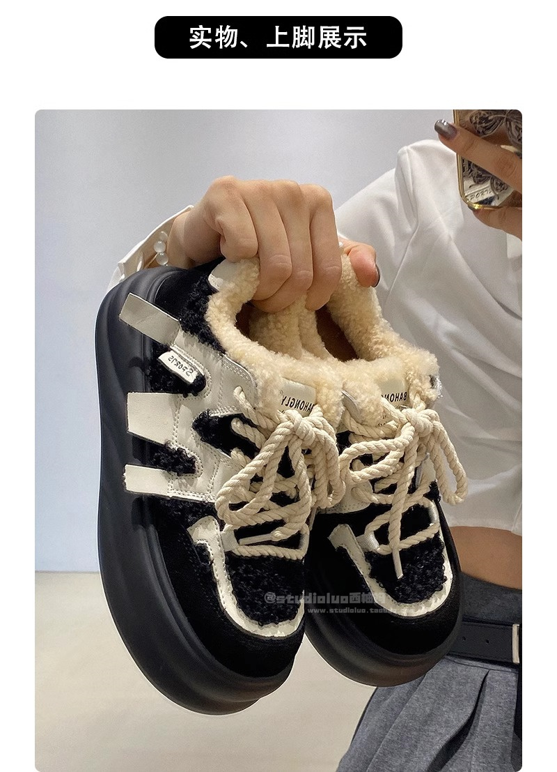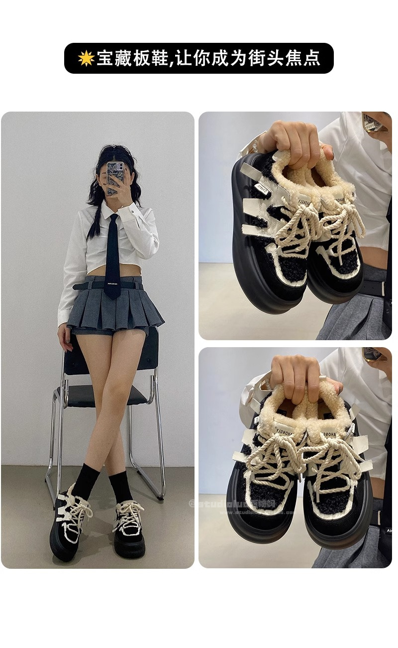 Hong Kong Genuine Leather Casual Sports Plush Platform Shoes for Women 2025 Spring and Autumn Warm Fleece Thick-Soled Height-Increasing Loafers