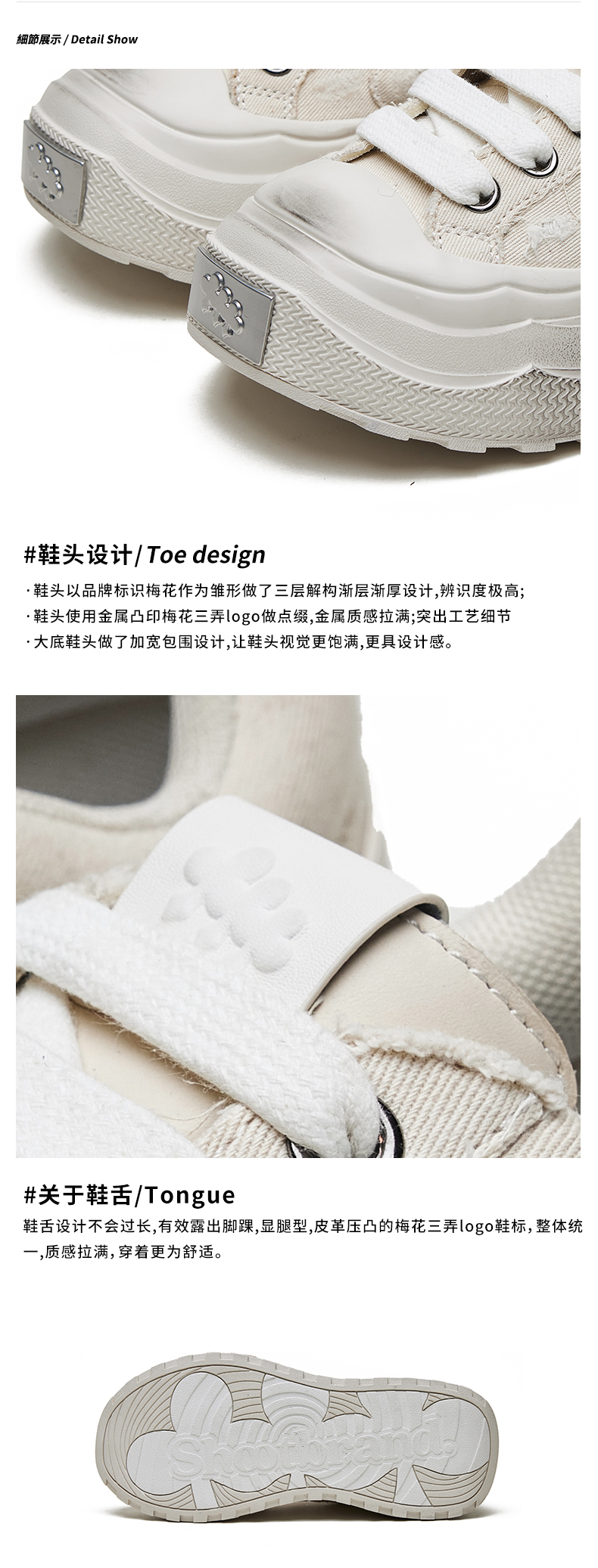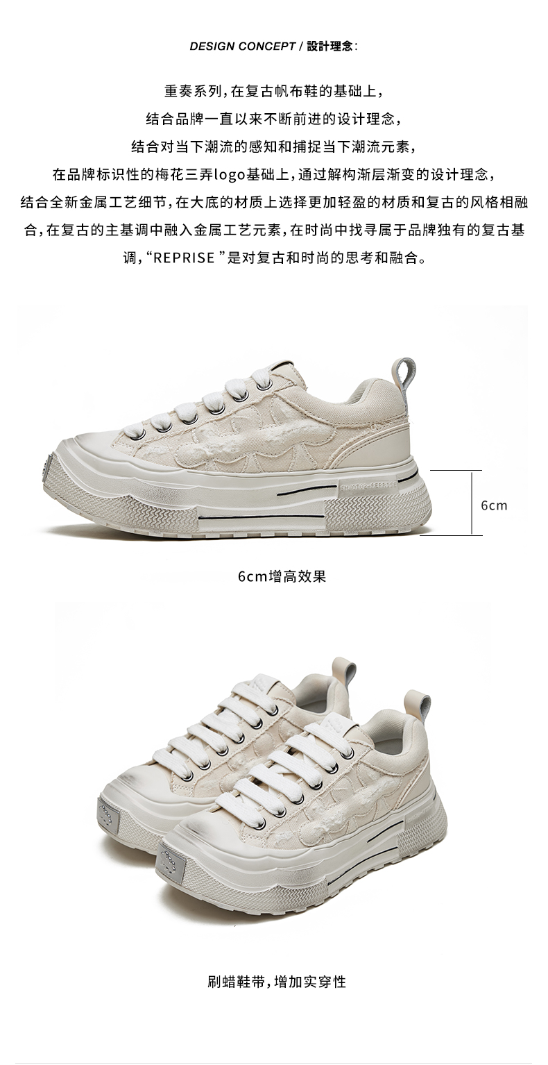Chen Duling's Same Style Shoot Brand Ensemble Series Thick-Soled Retro Canvas Shoes for Men and Women, Casual Sneakers, Dirty Shoes, White