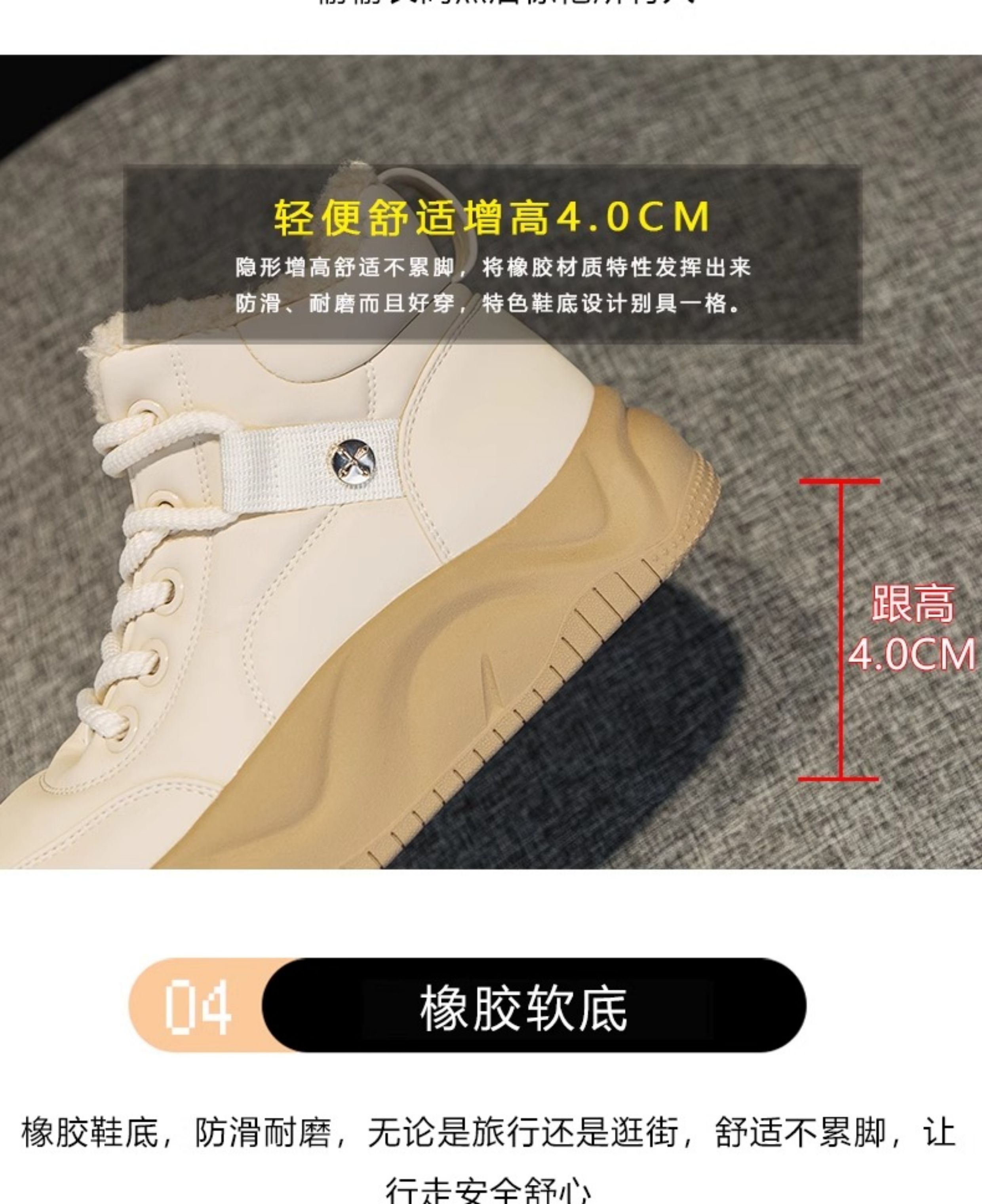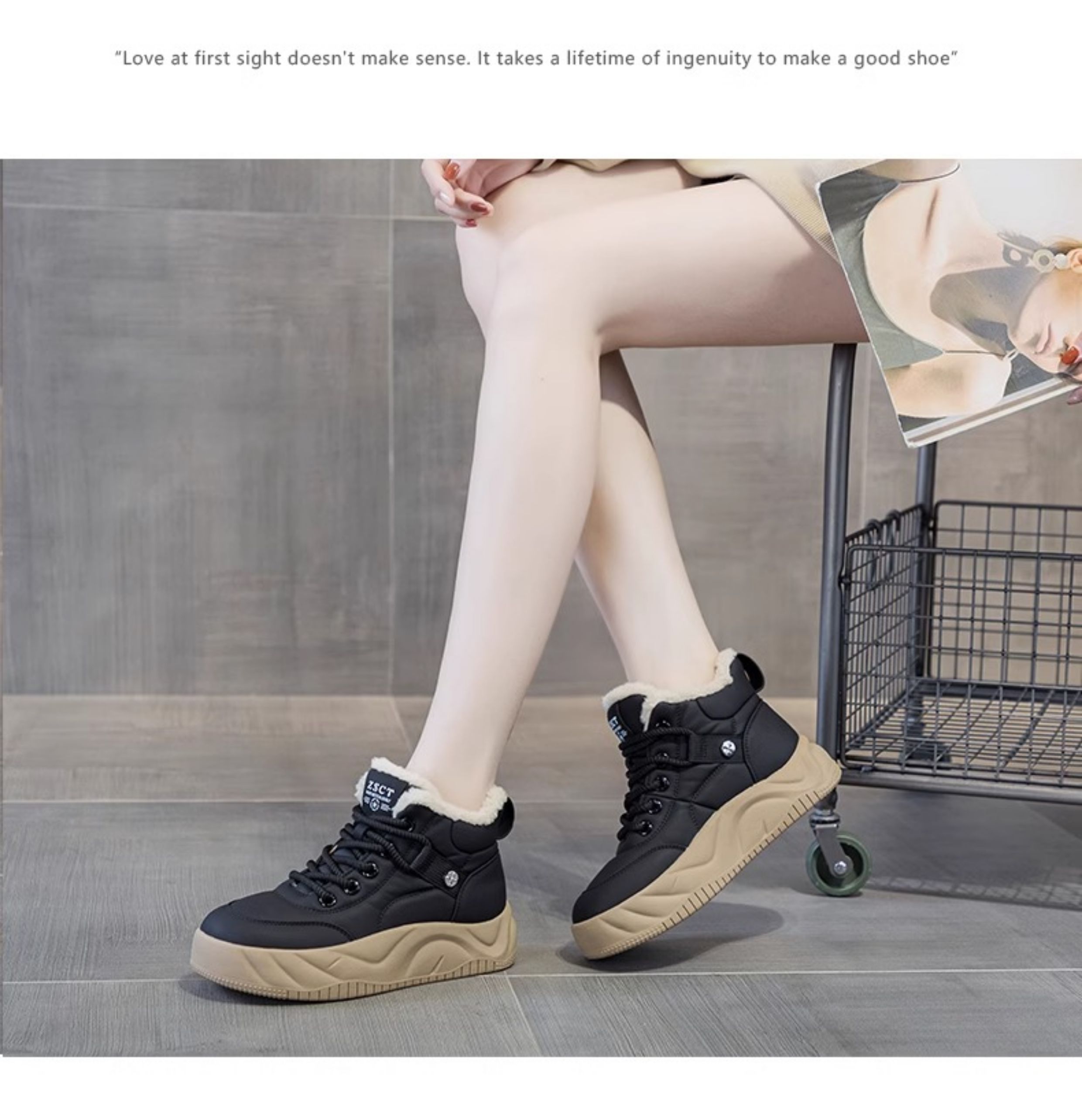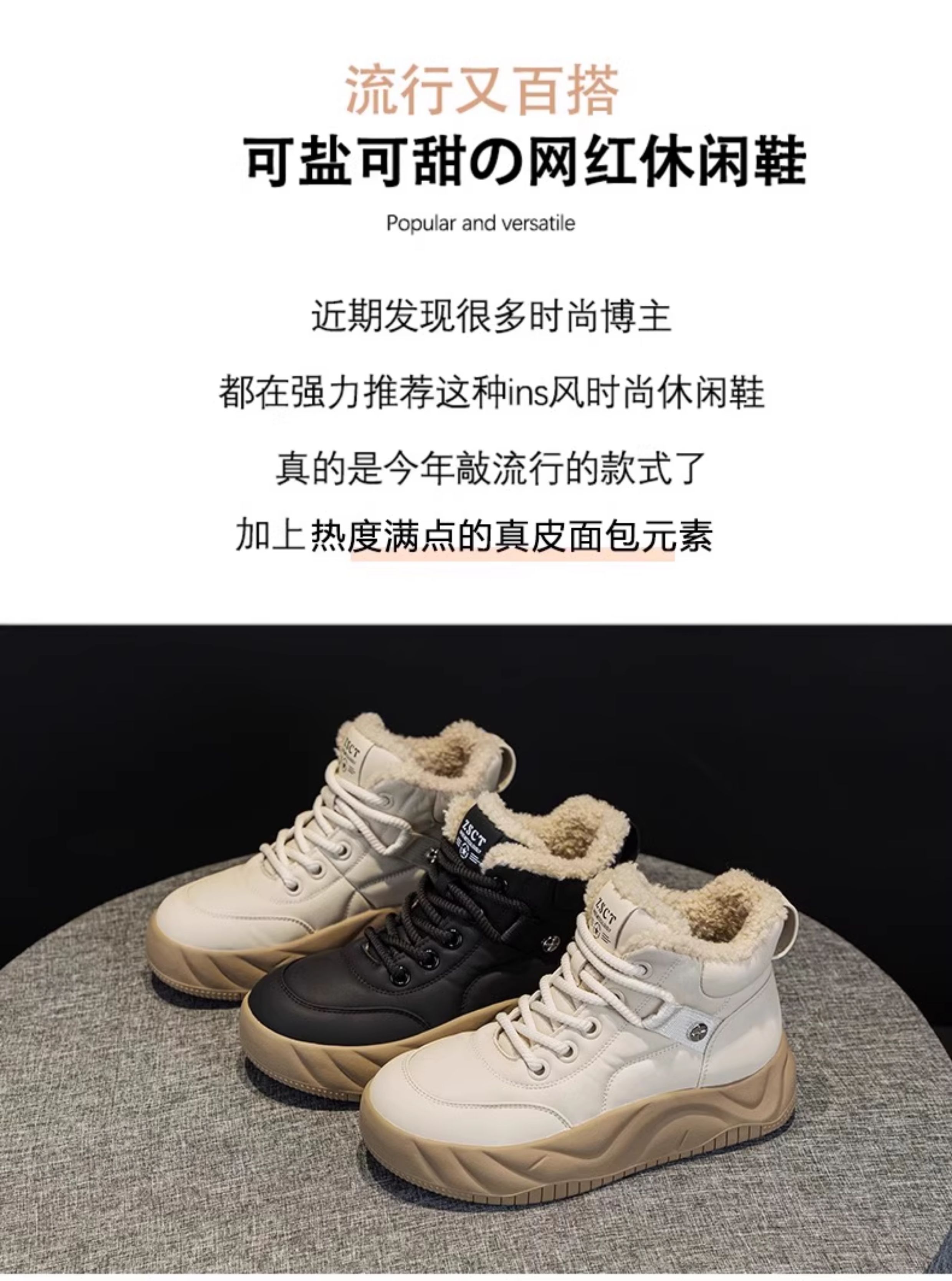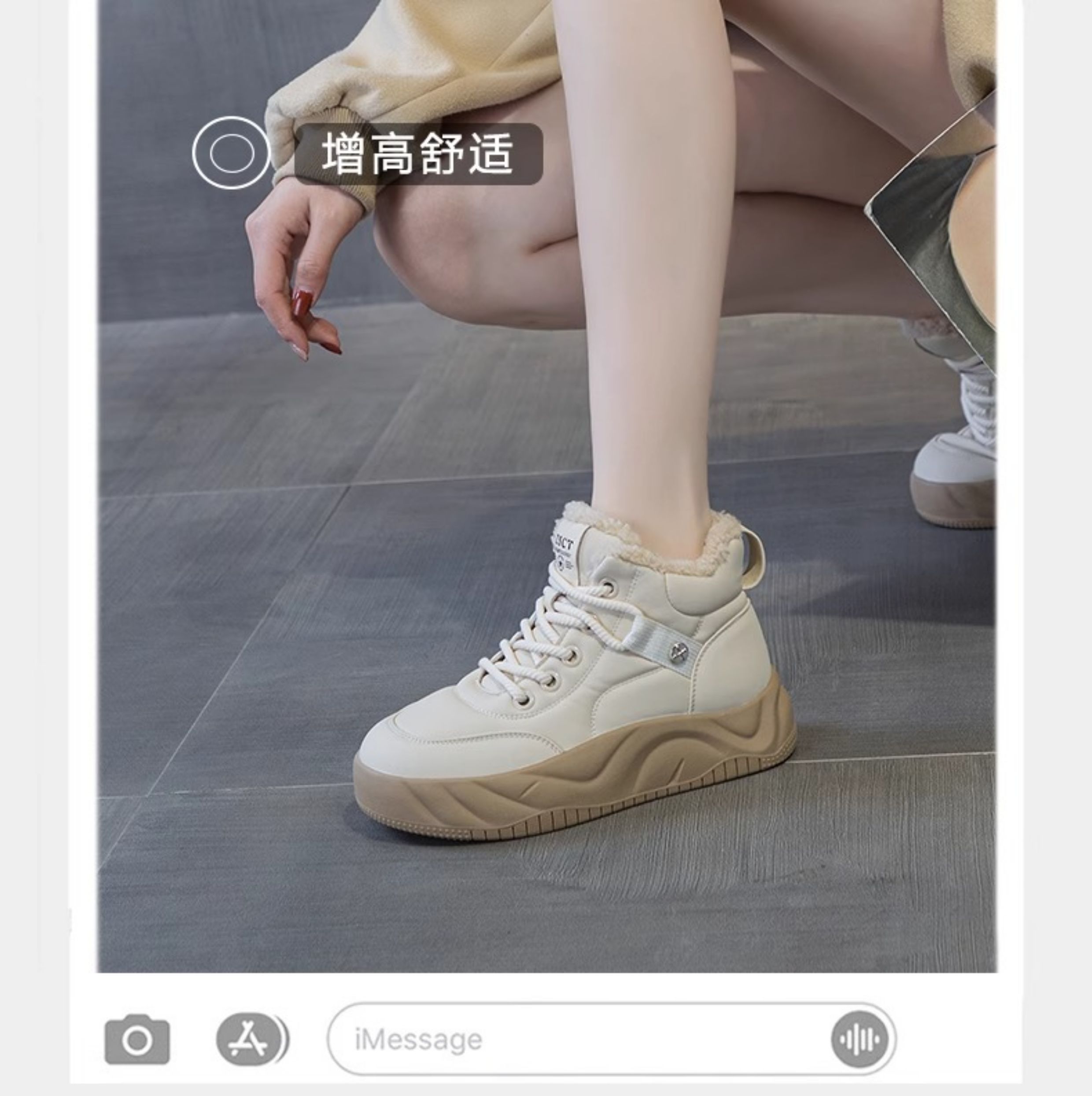 Hong Kong High-Top Cotton Shoes for Women, Winter Fleece-Lined 2025 New Thick-Soled Soft-Soled White Sneakers, Sporty Furry Snow Boots