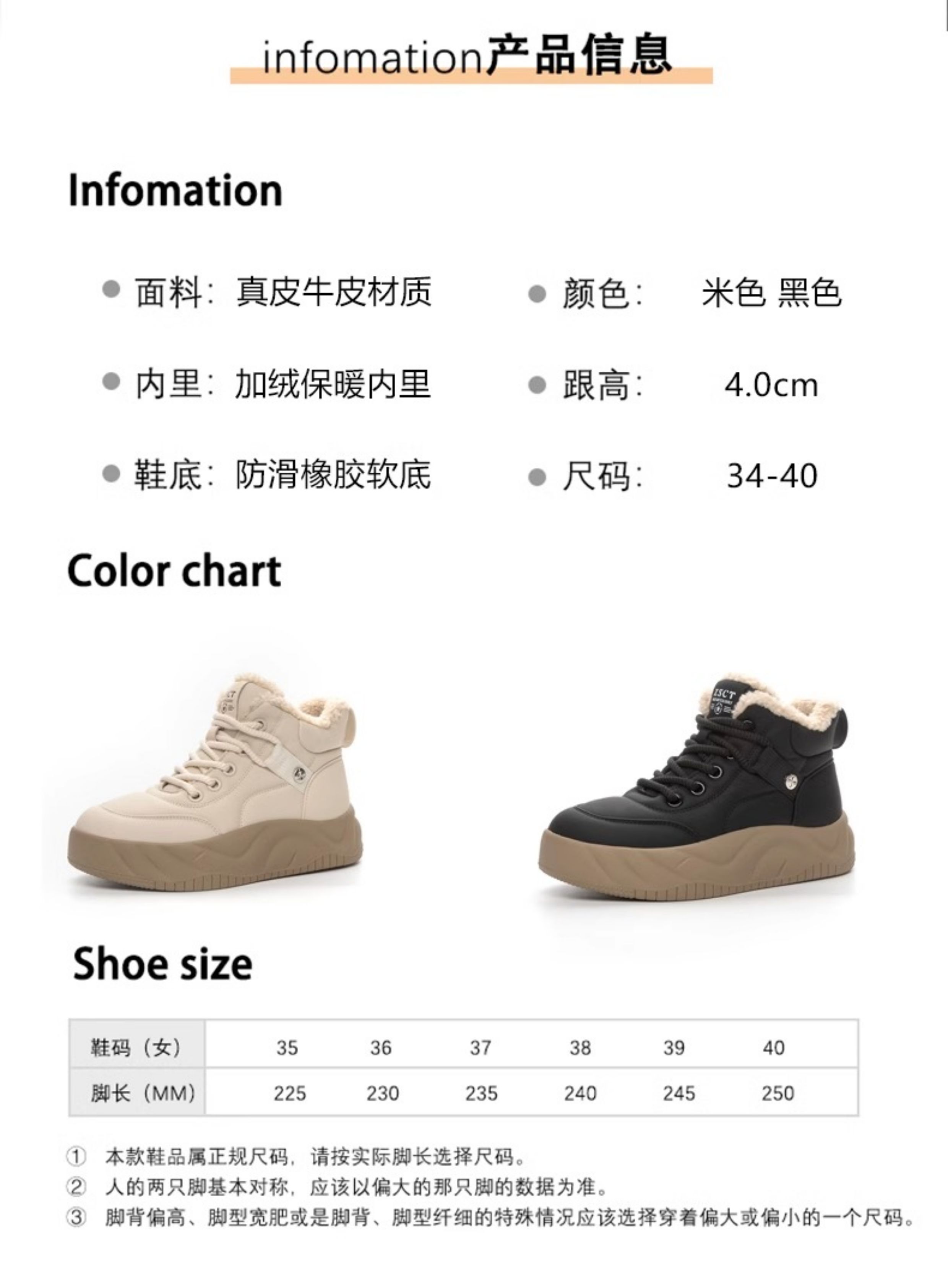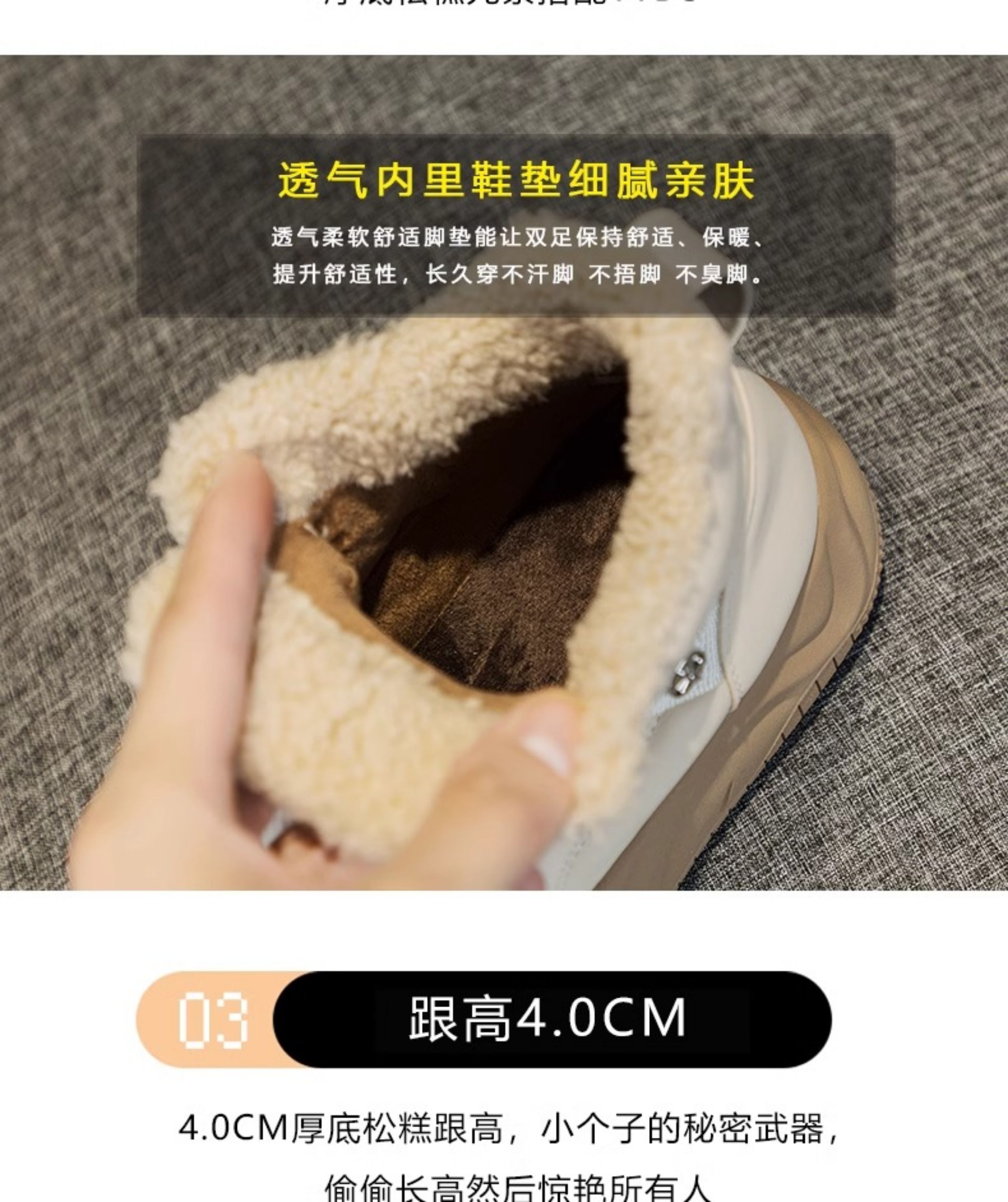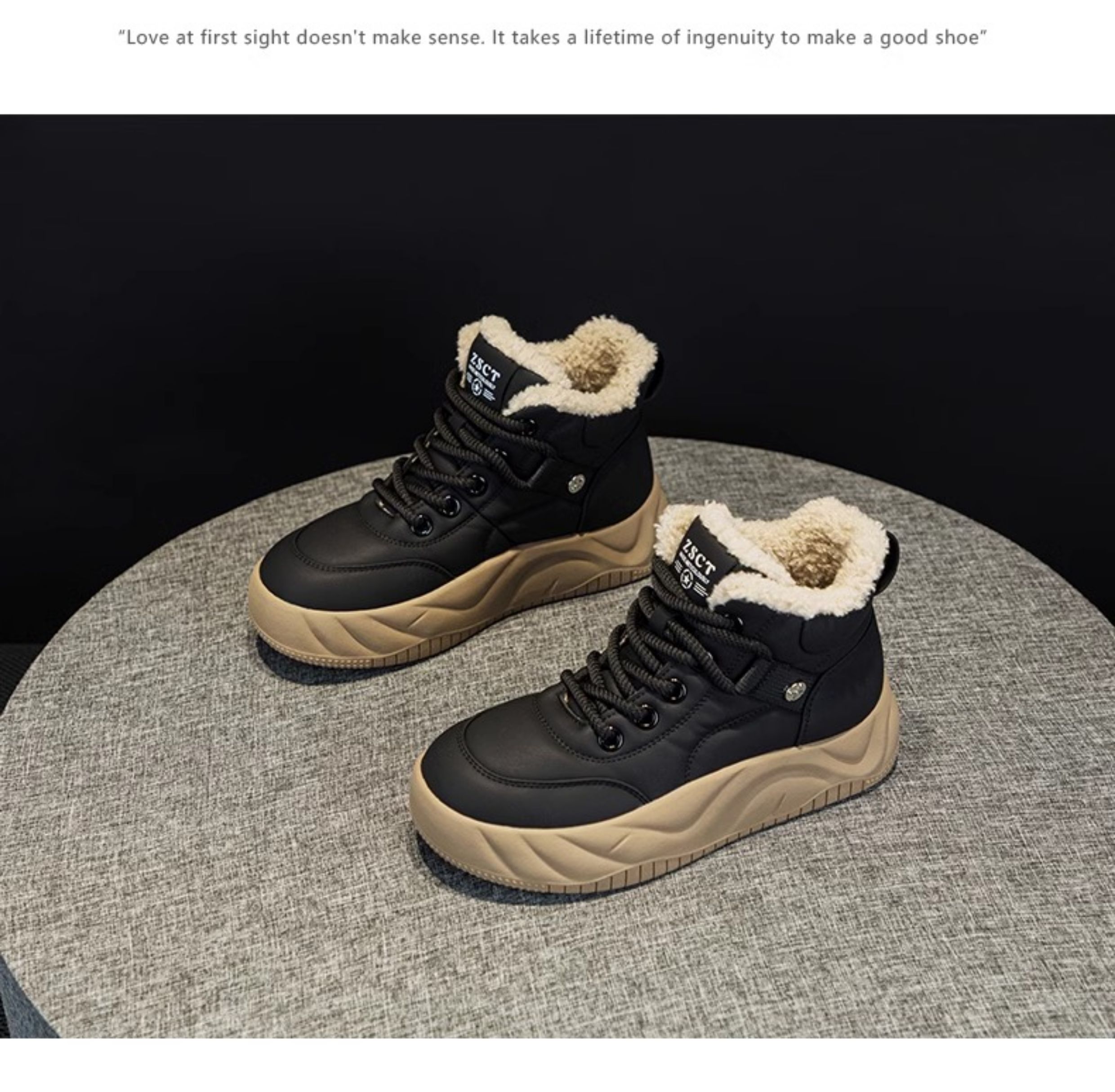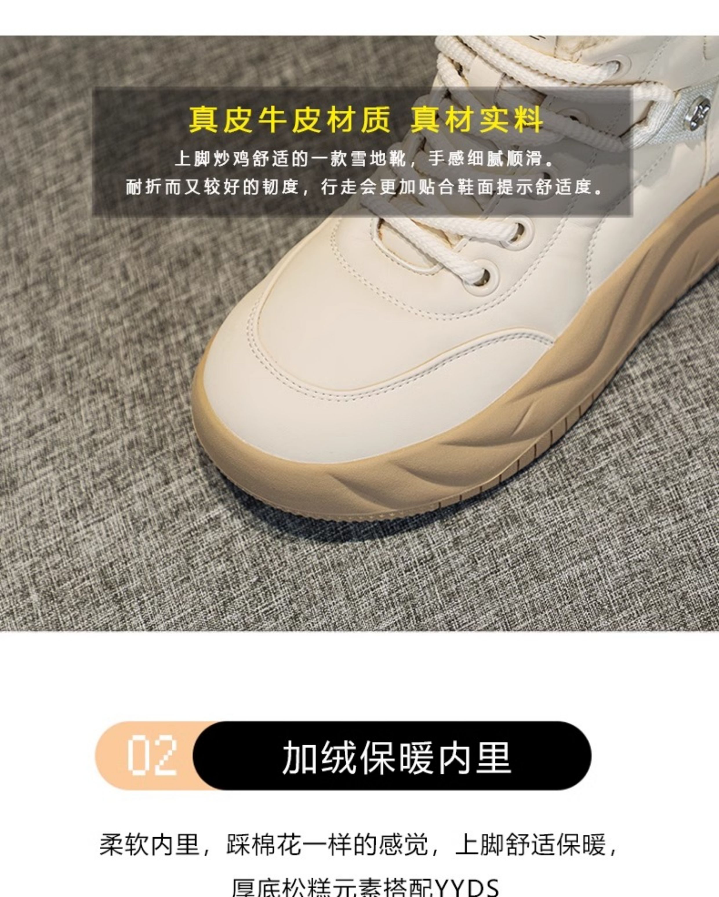 Hong Kong High-Top Cotton Shoes for Women, Winter Fleece-Lined 2025 New Thick-Soled Soft-Soled White Sneakers, Sporty Furry Snow Boots