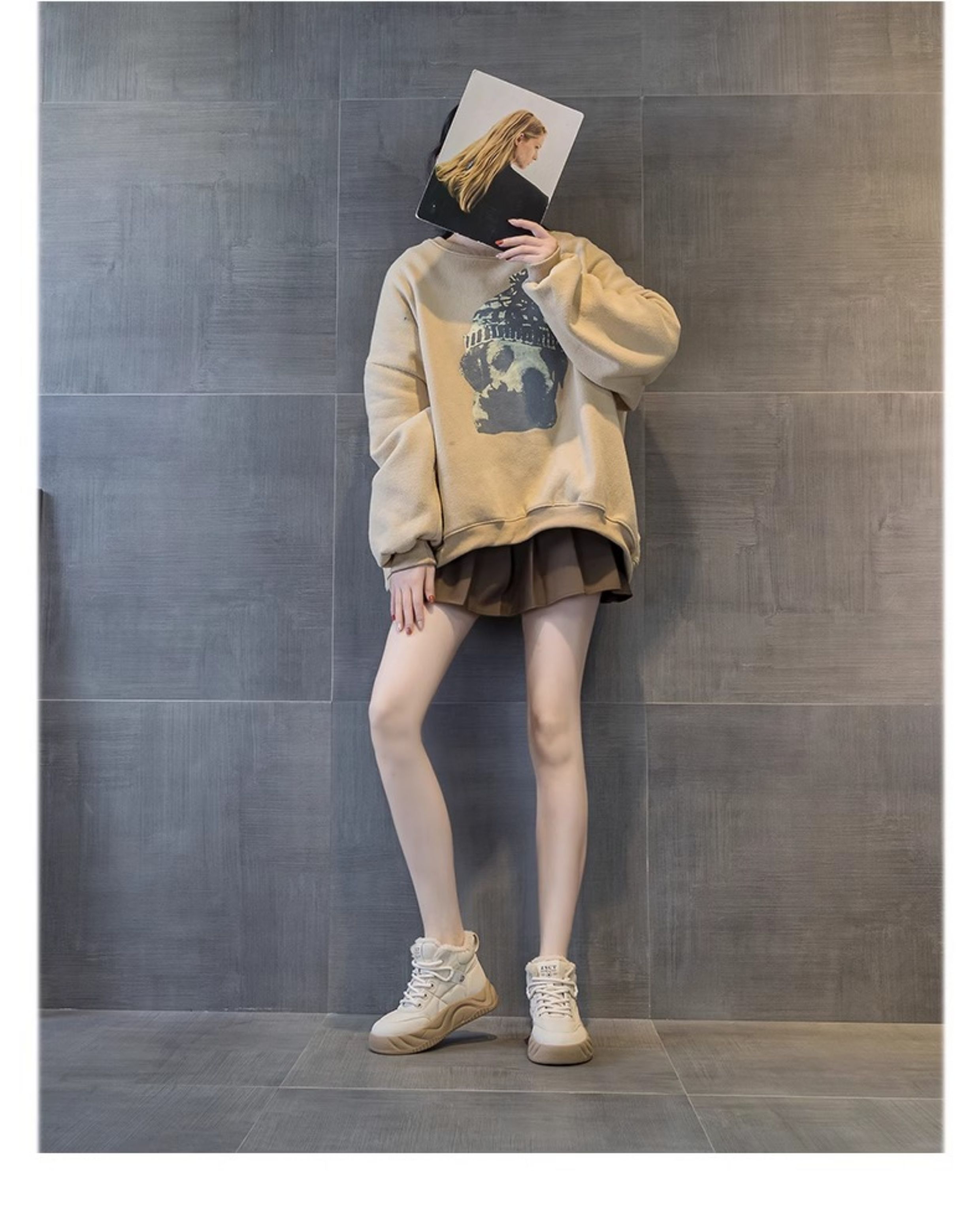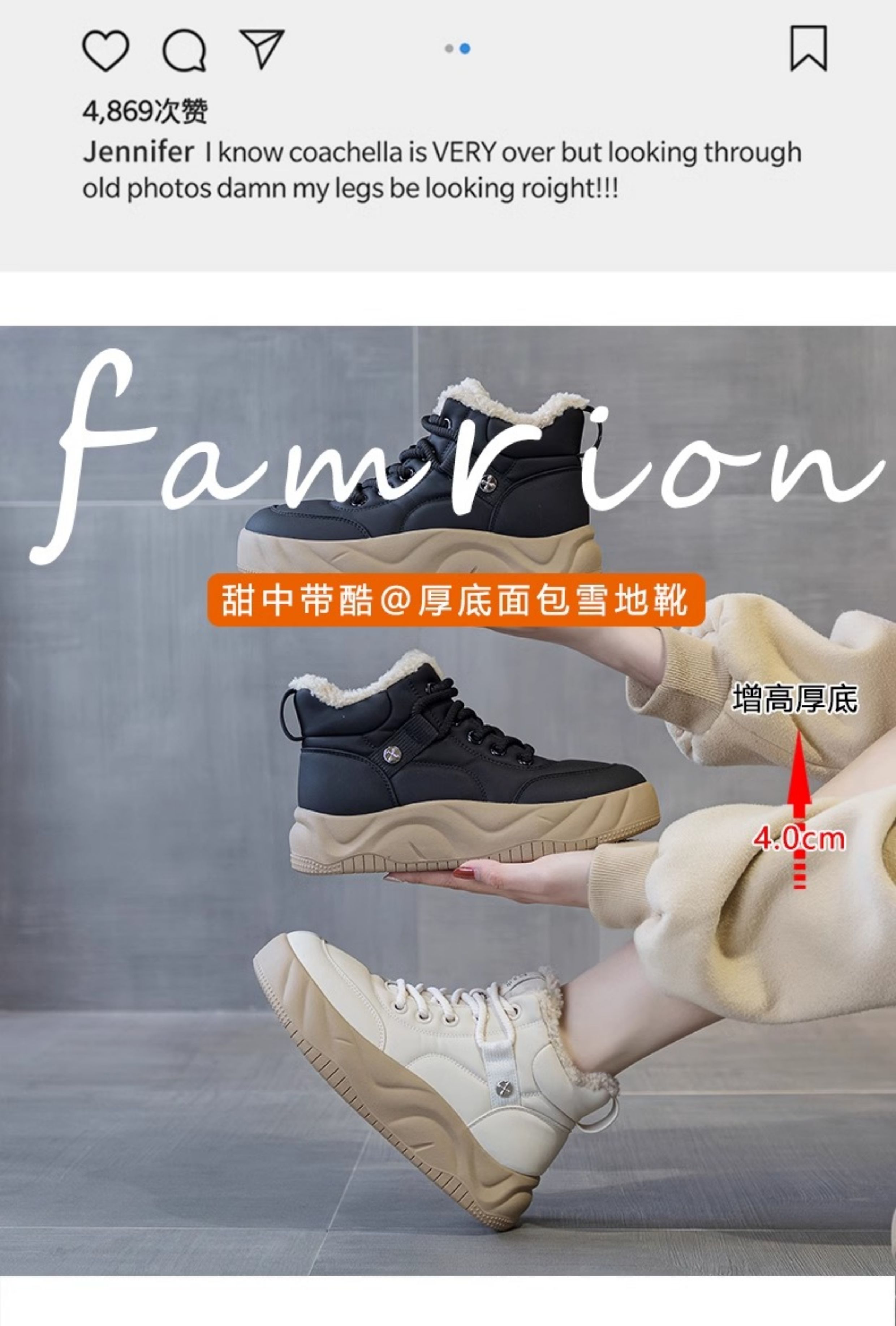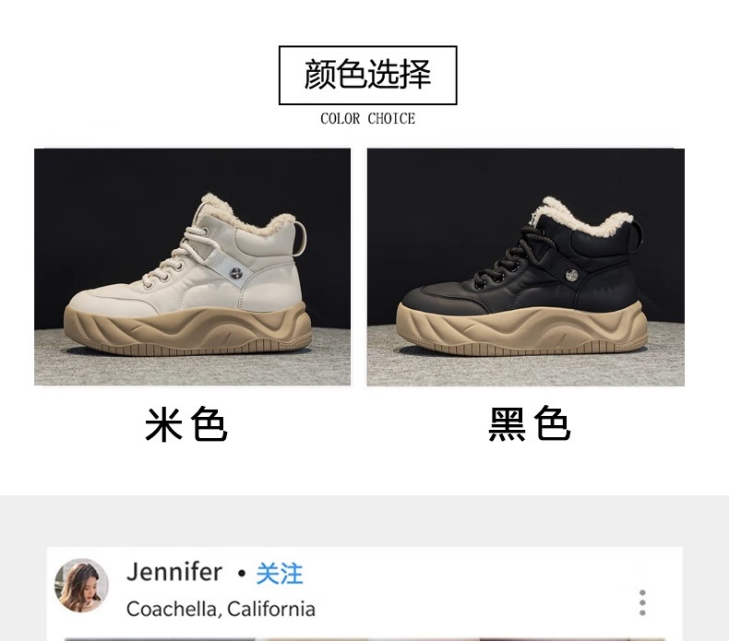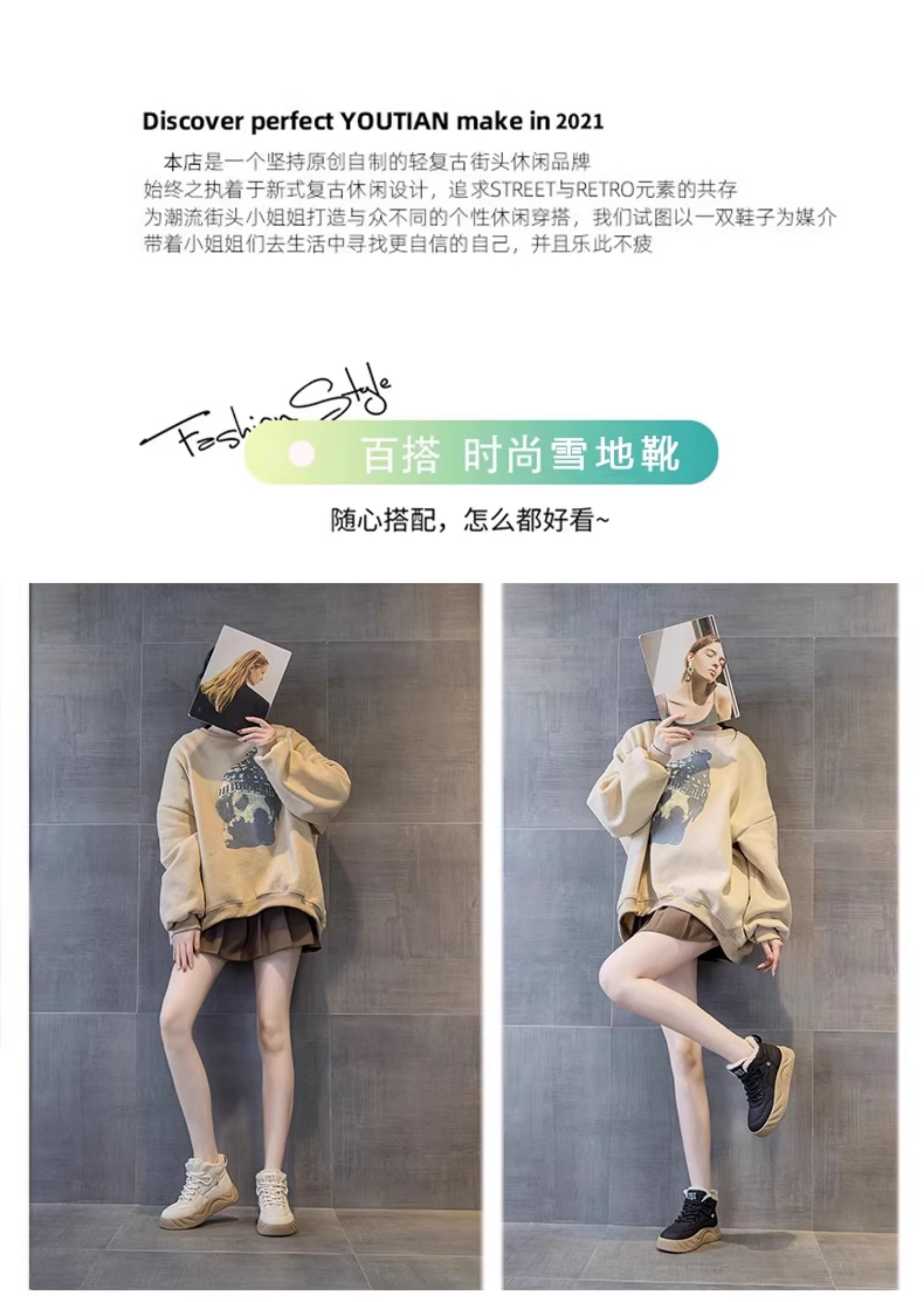 Hong Kong High-Top Cotton Shoes for Women, Winter Fleece-Lined 2025 New Thick-Soled Soft-Soled White Sneakers, Sporty Furry Snow Boots