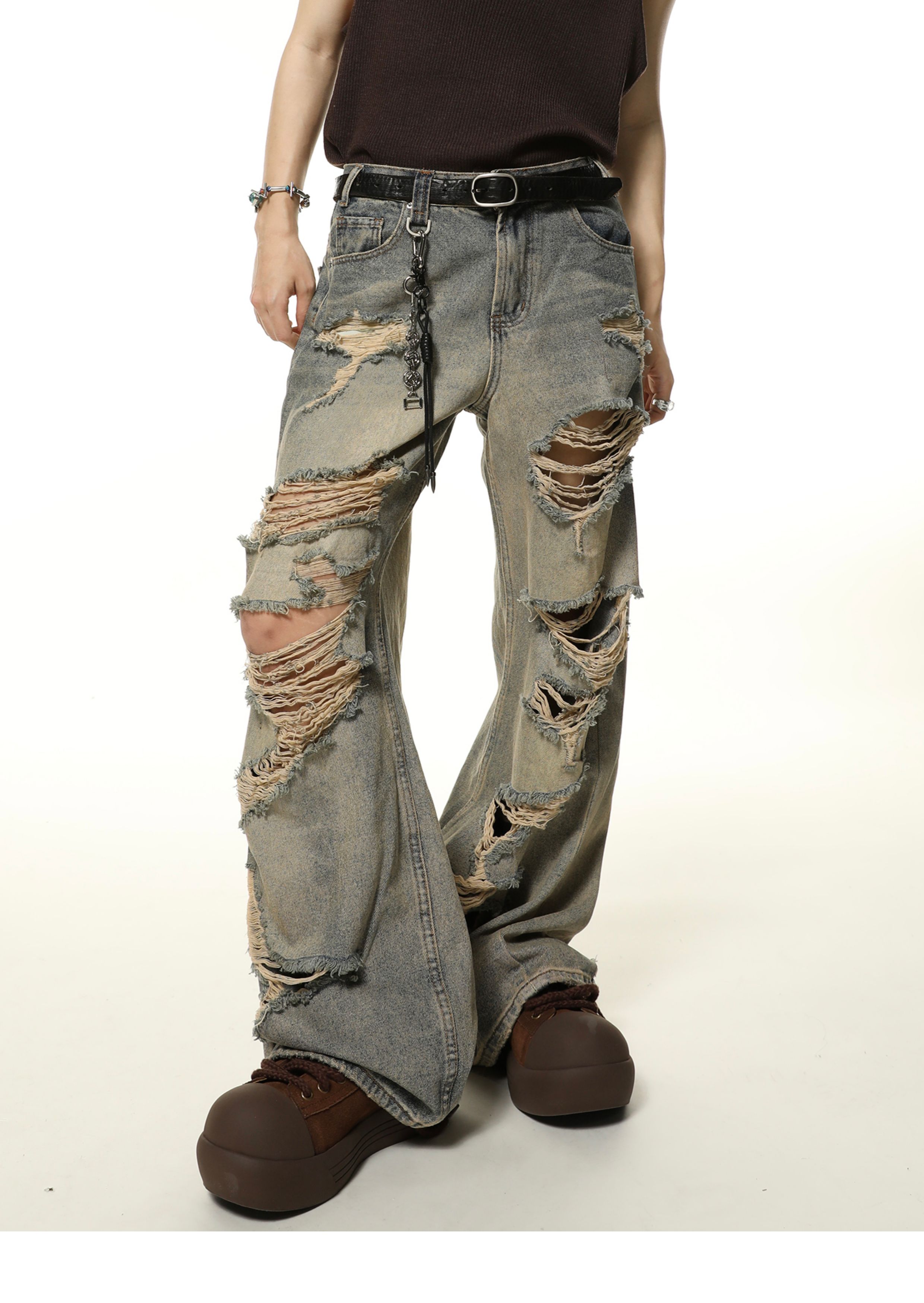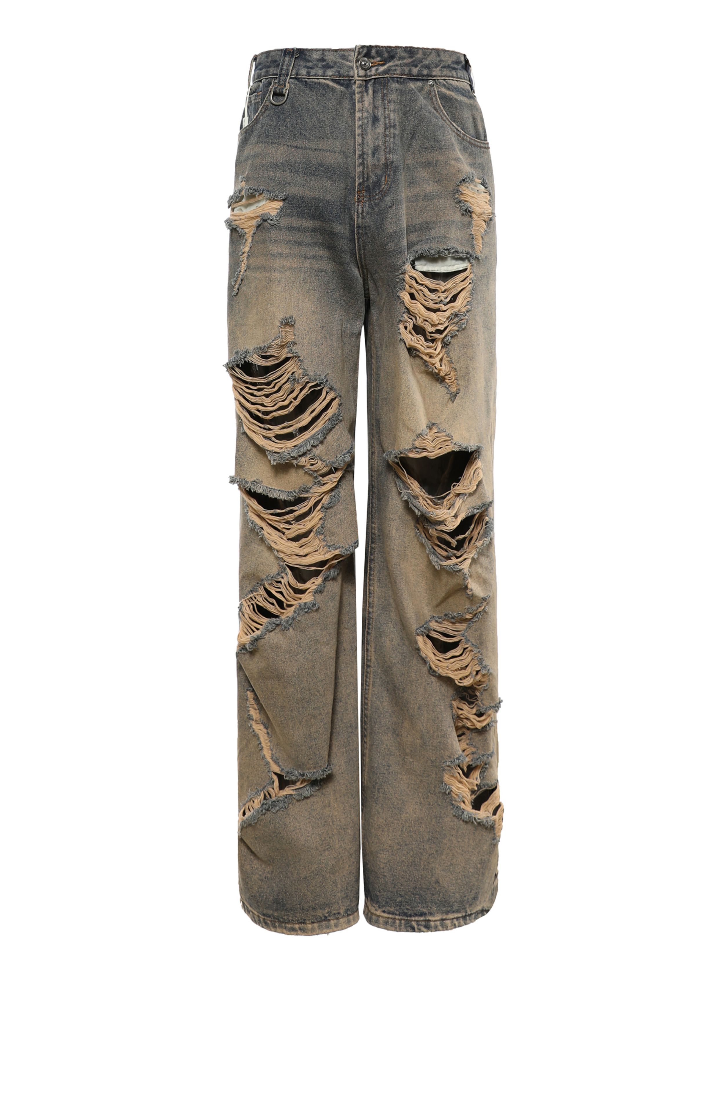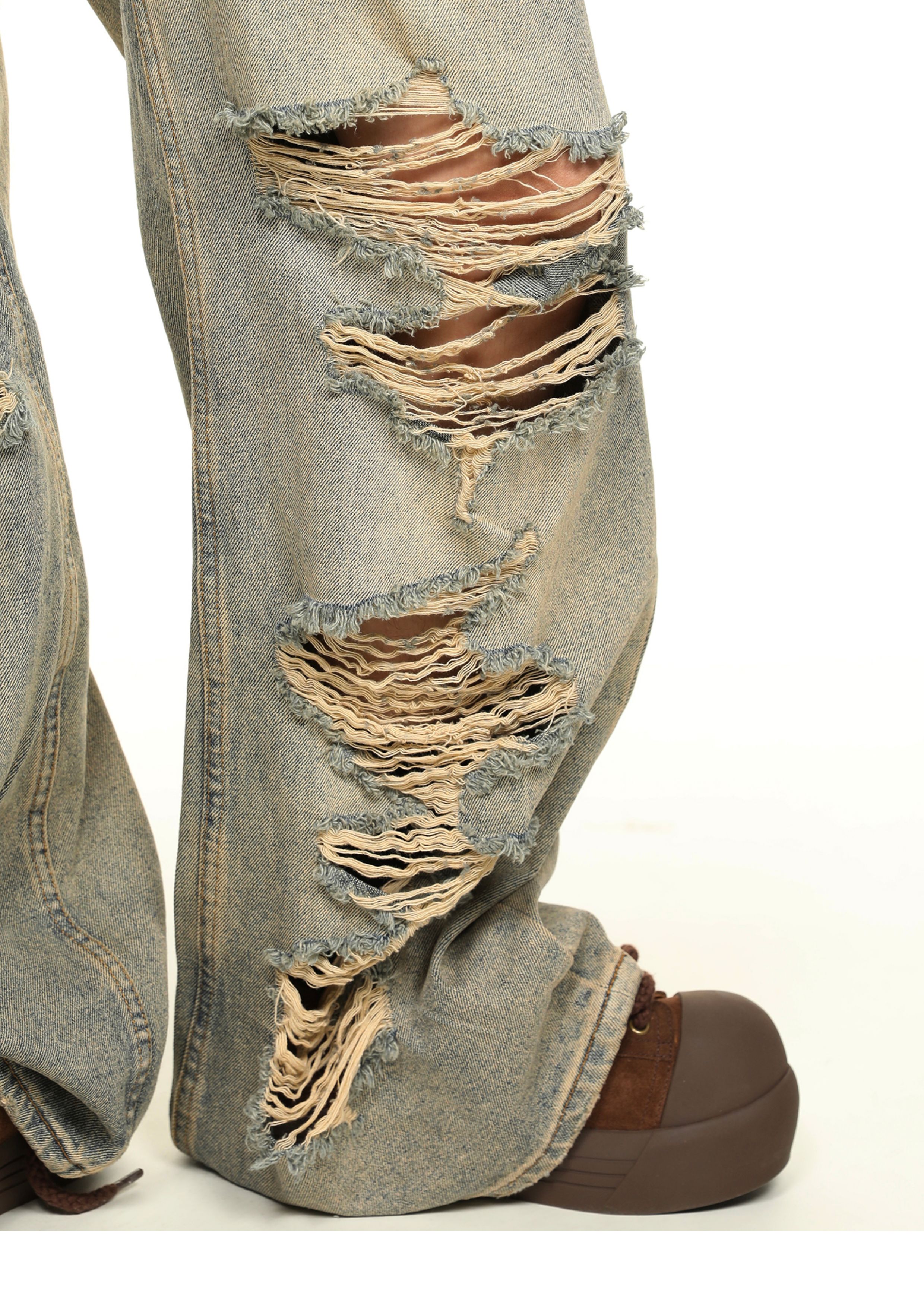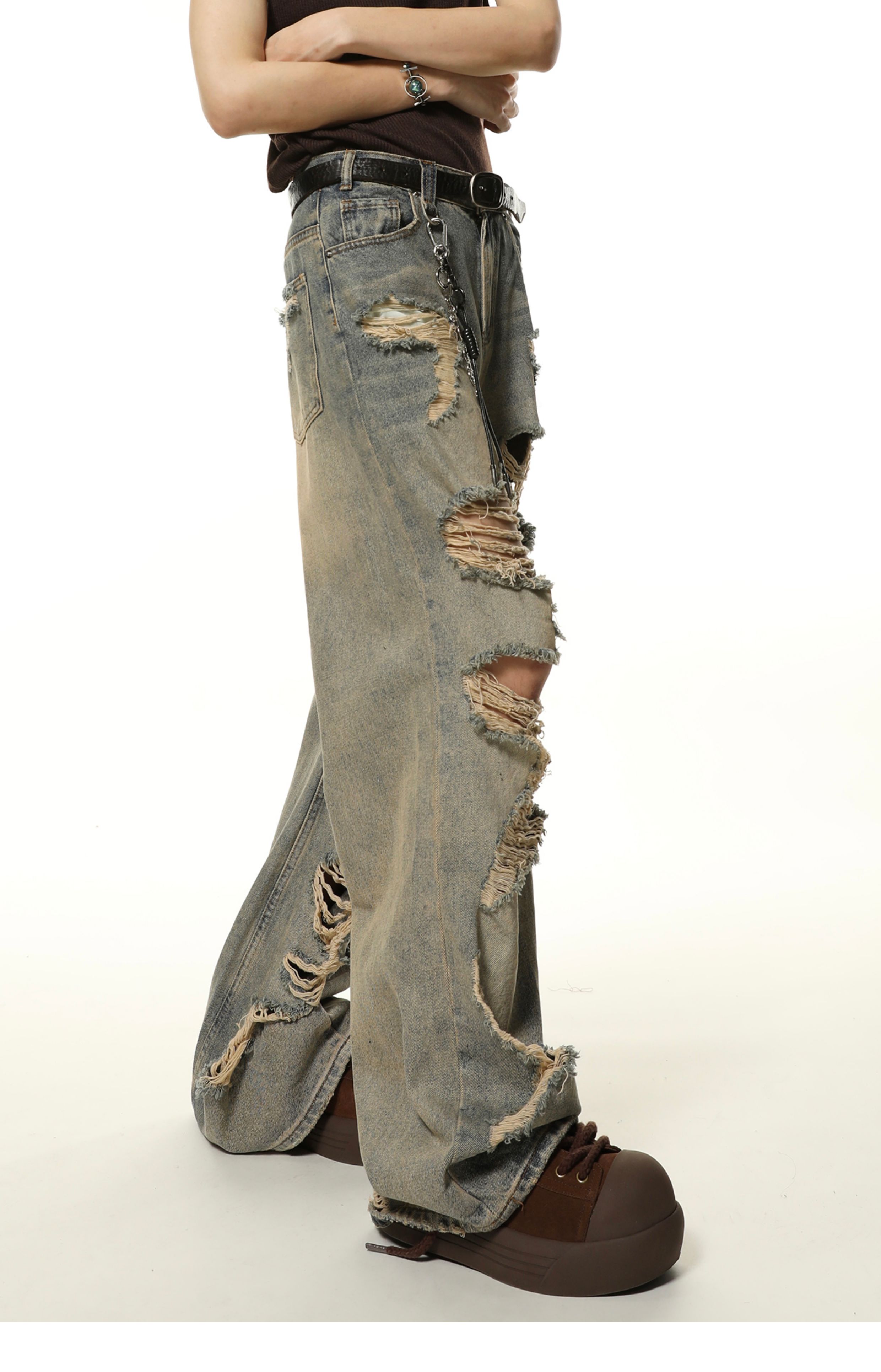 Futureboy/Wasteland Distressed Ripped Dirty Washed Jeans Parisian Style Worn-Out Beggar Pants Trendy