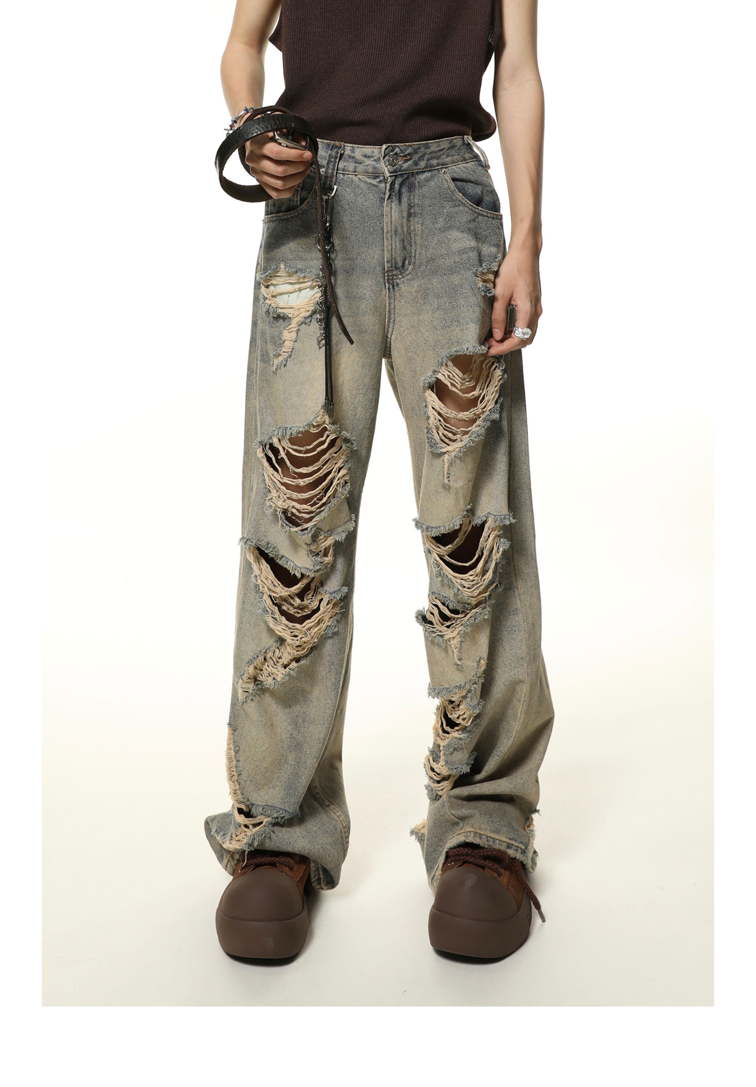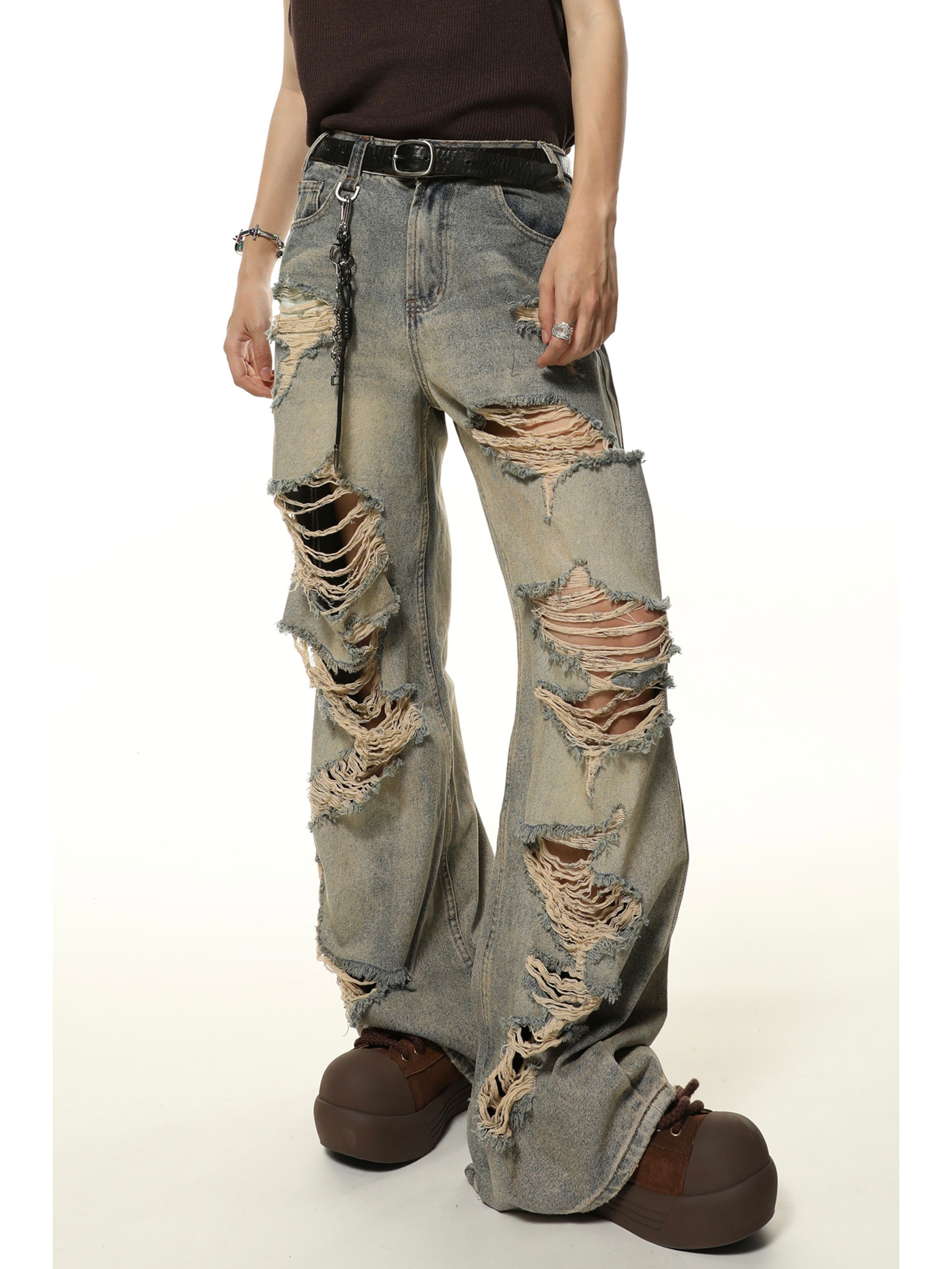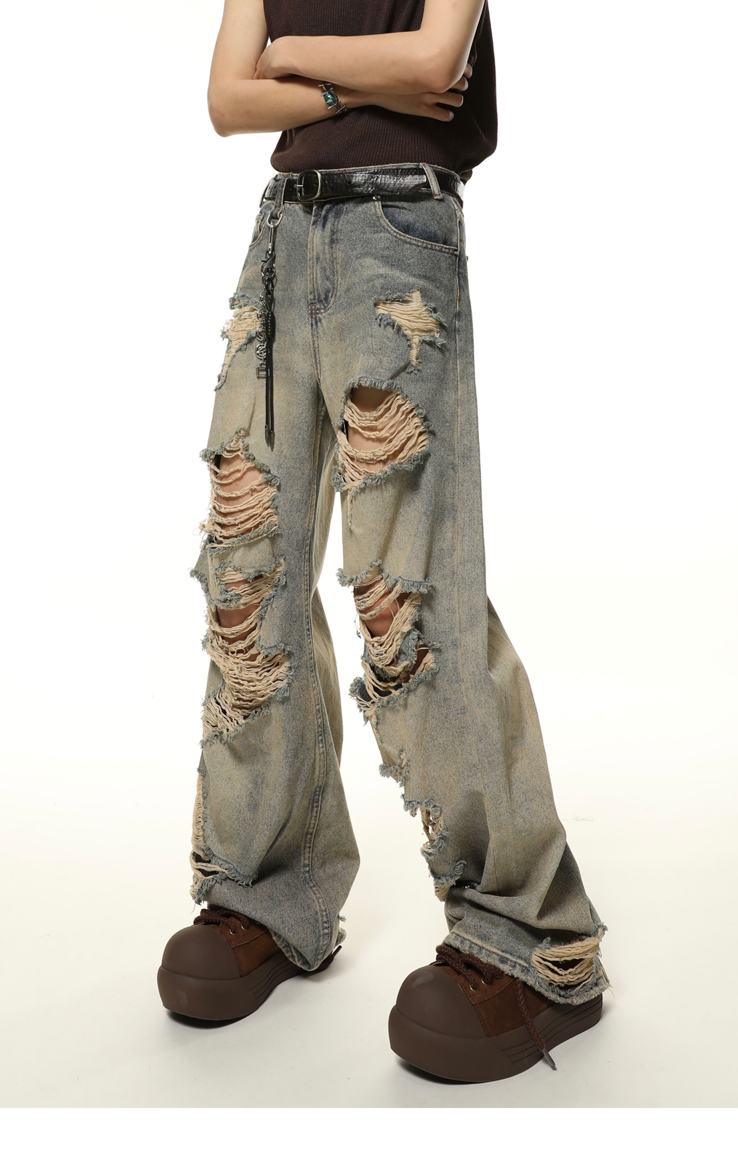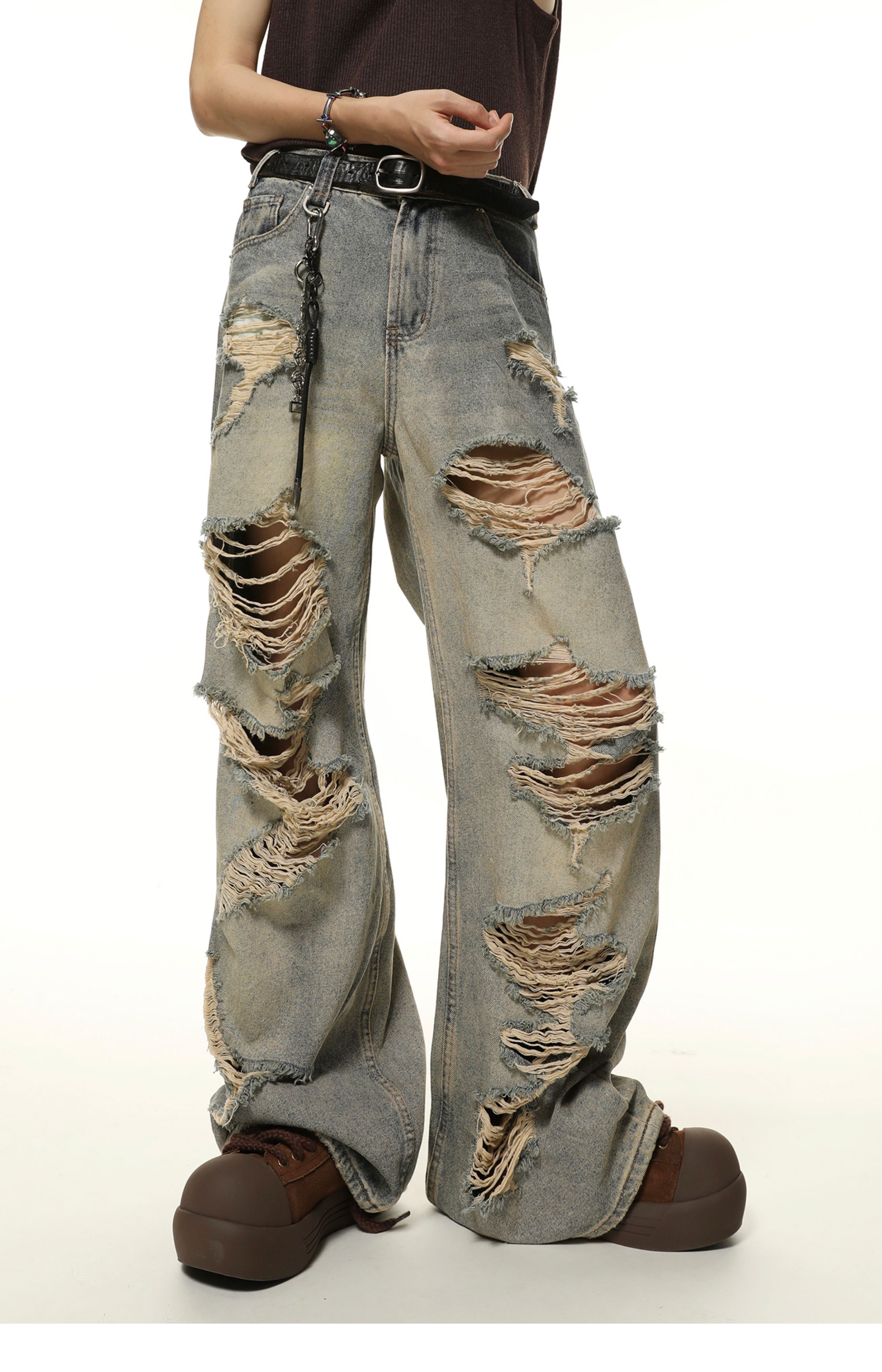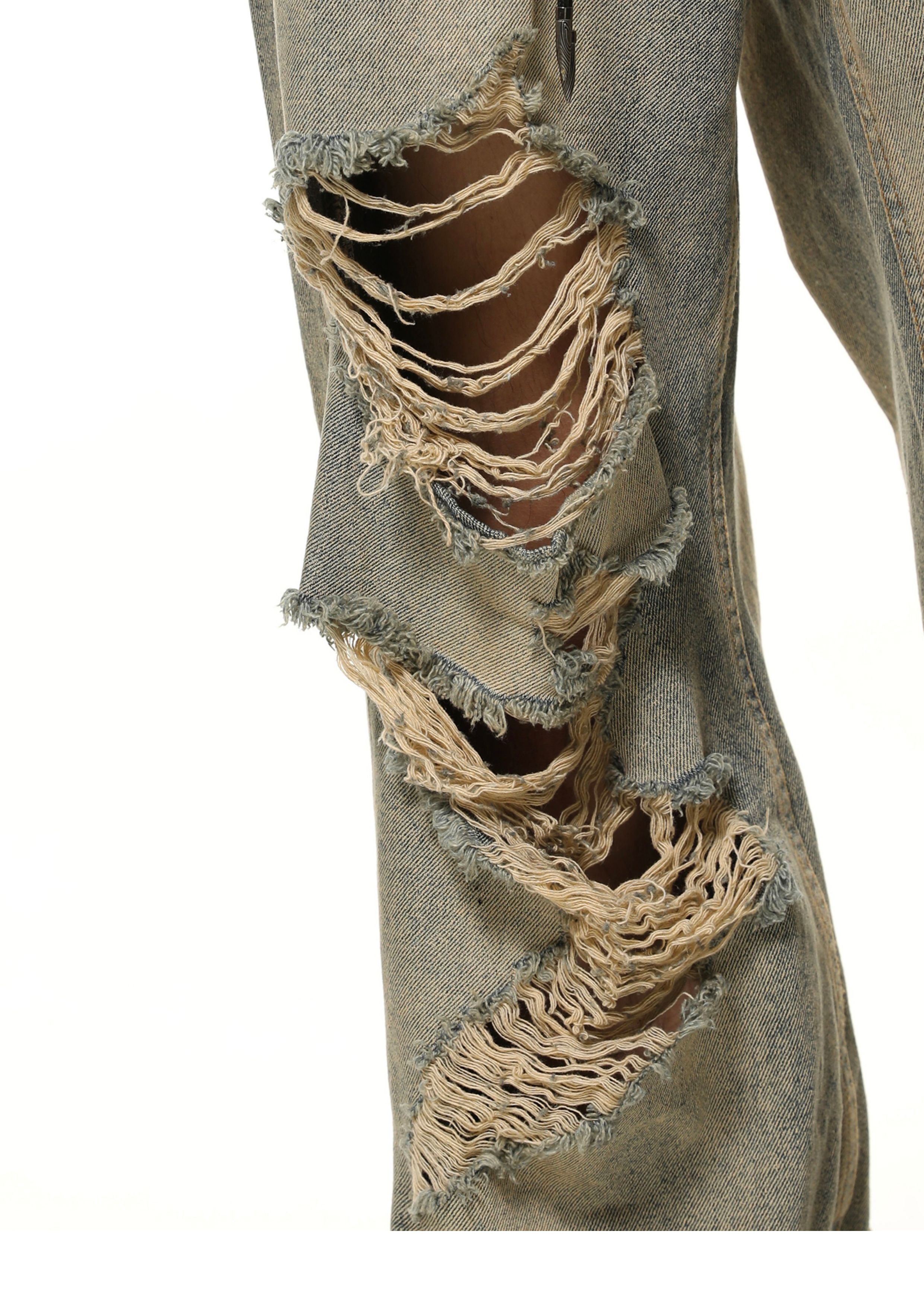 Futureboy/Wasteland Distressed Ripped Dirty Washed Jeans Parisian Style Worn-Out Beggar Pants Trendy