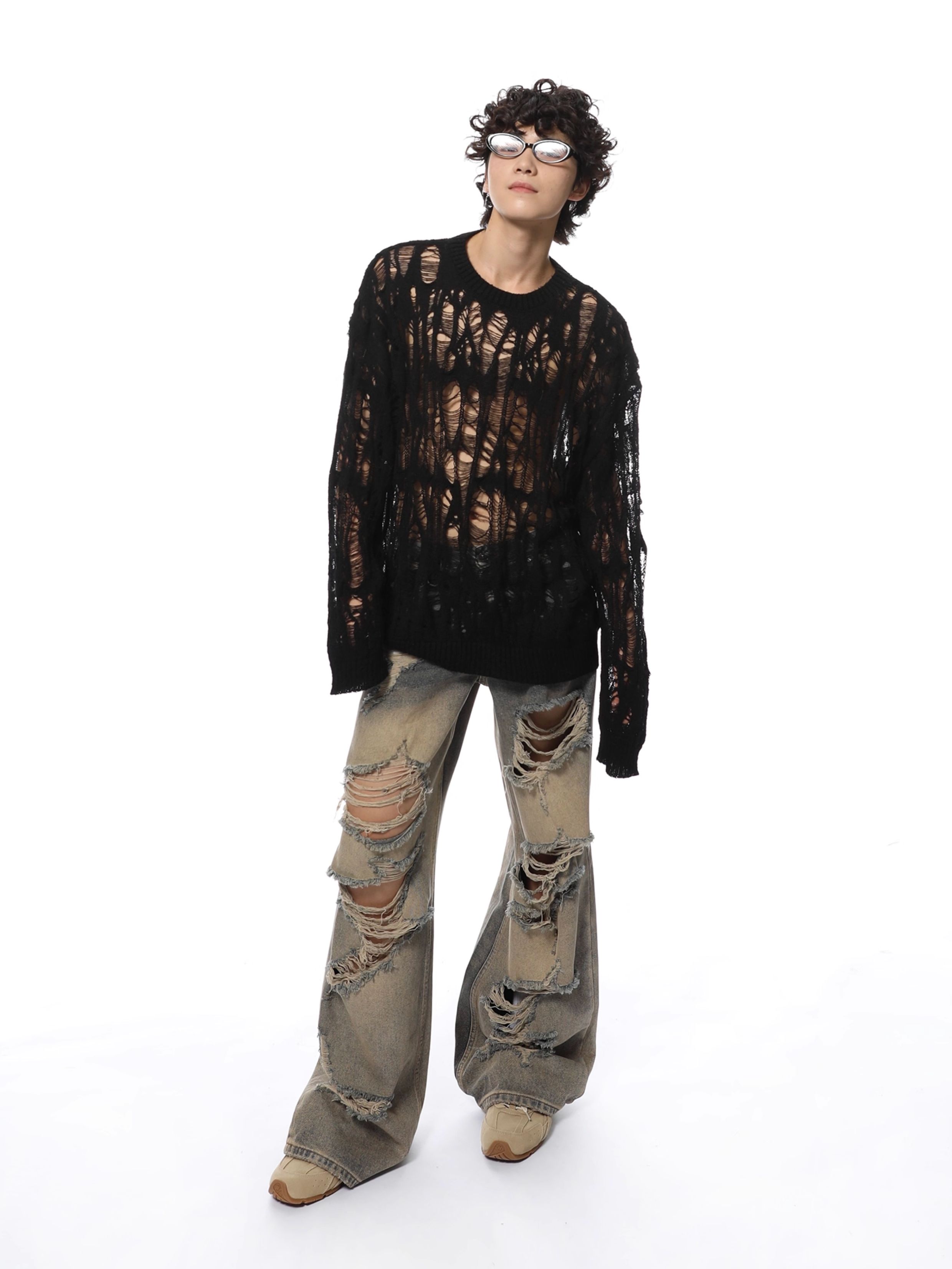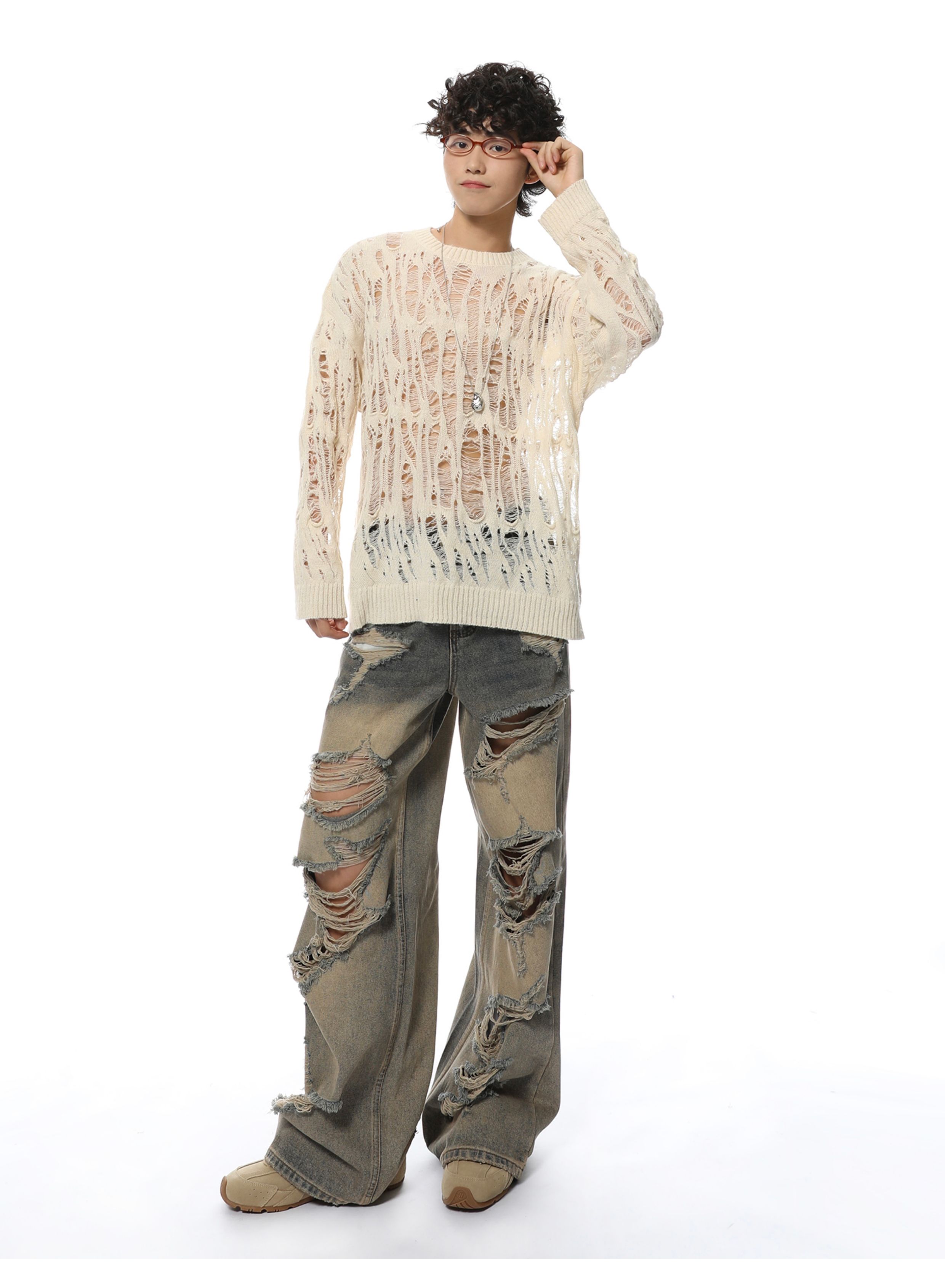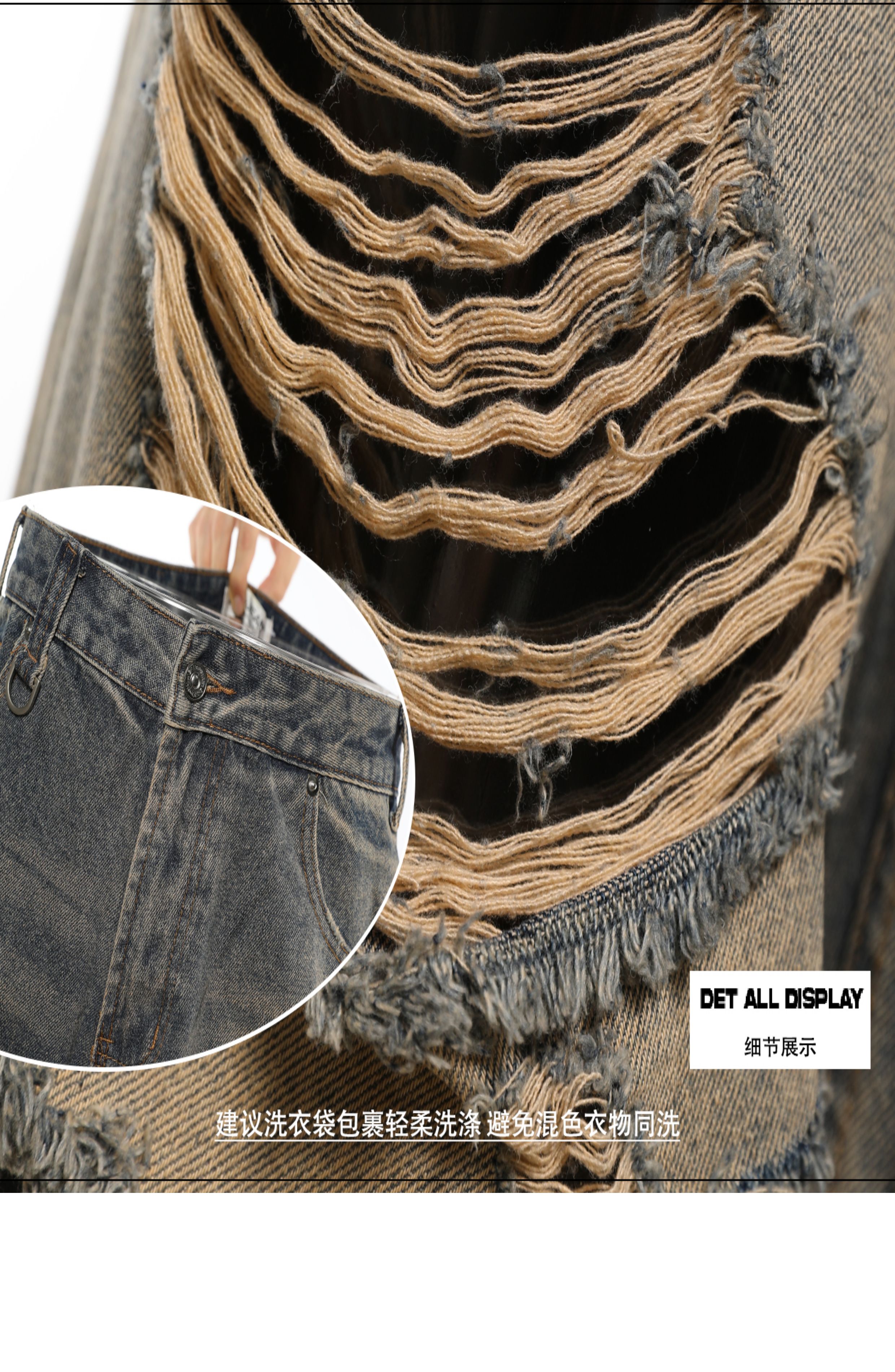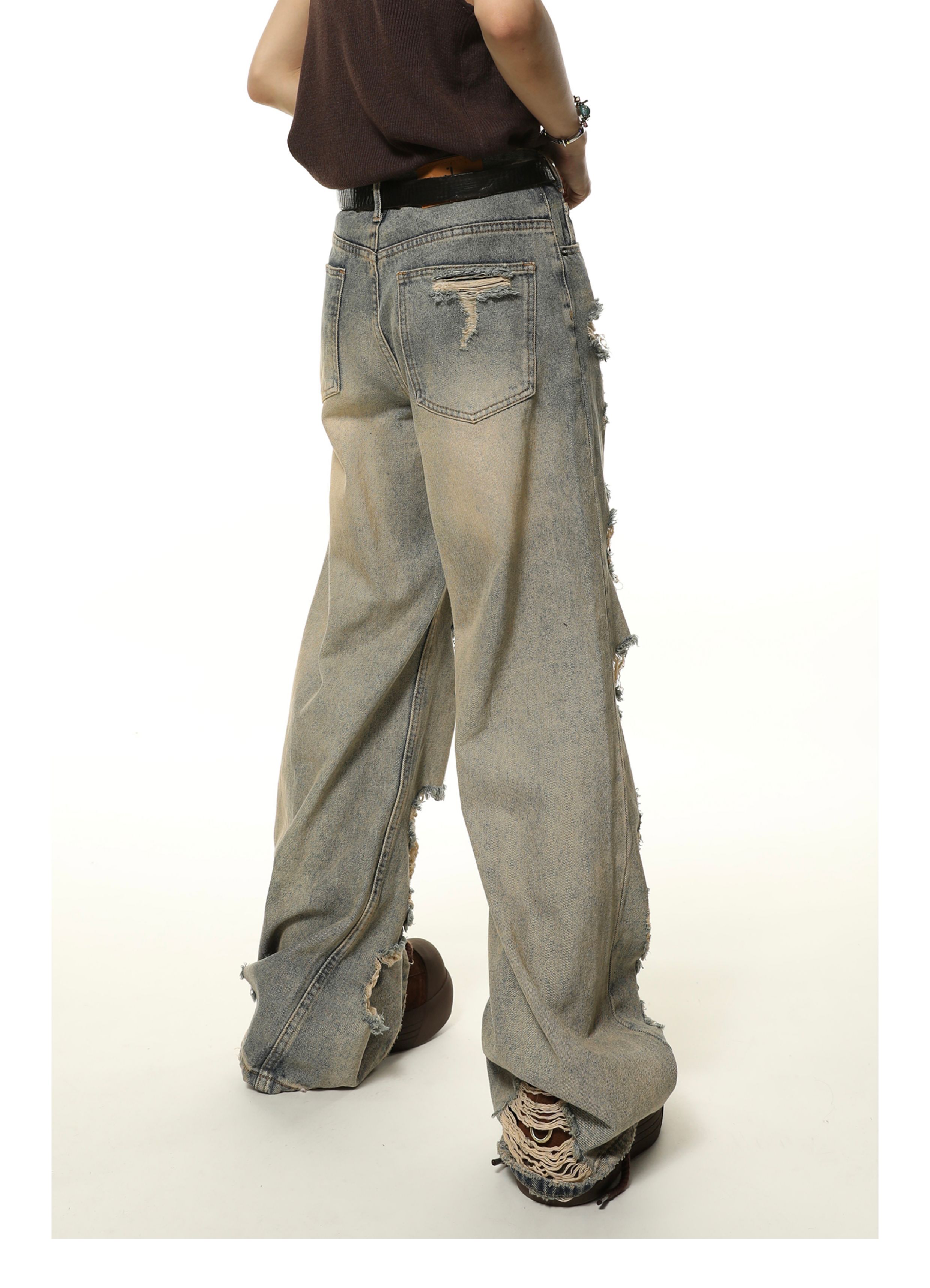 Futureboy/Wasteland Distressed Ripped Dirty Washed Jeans Parisian Style Worn-Out Beggar Pants Trendy