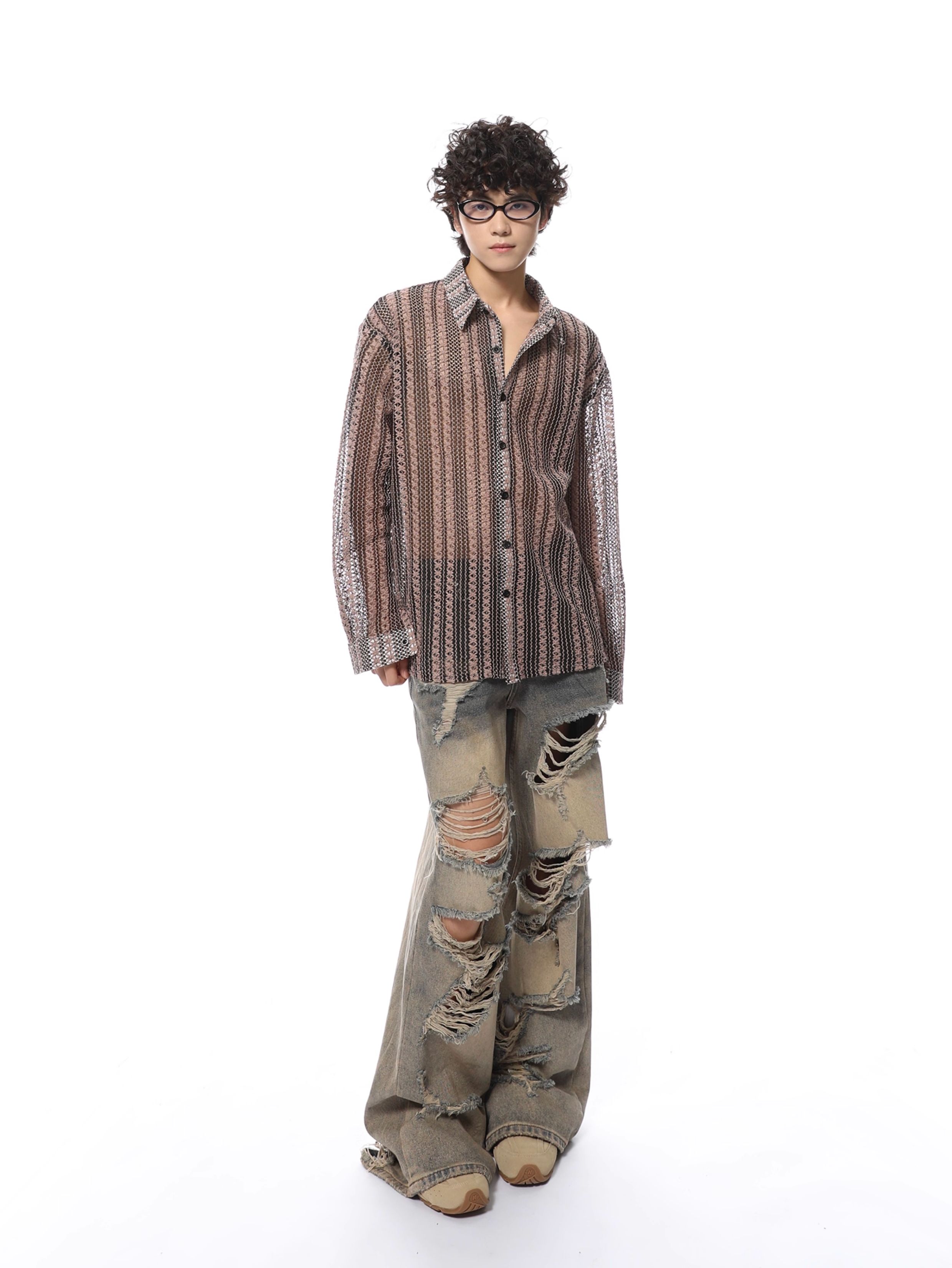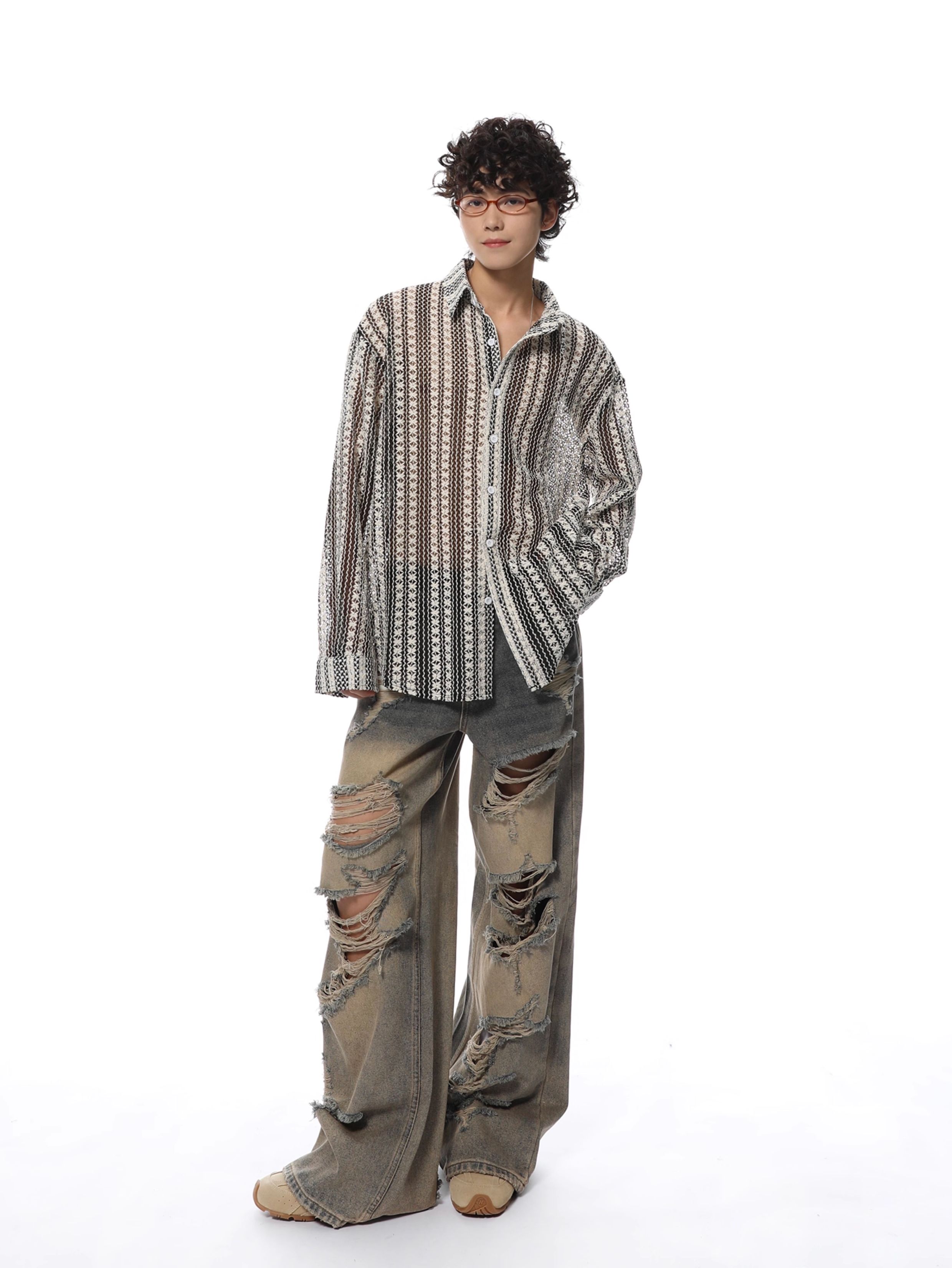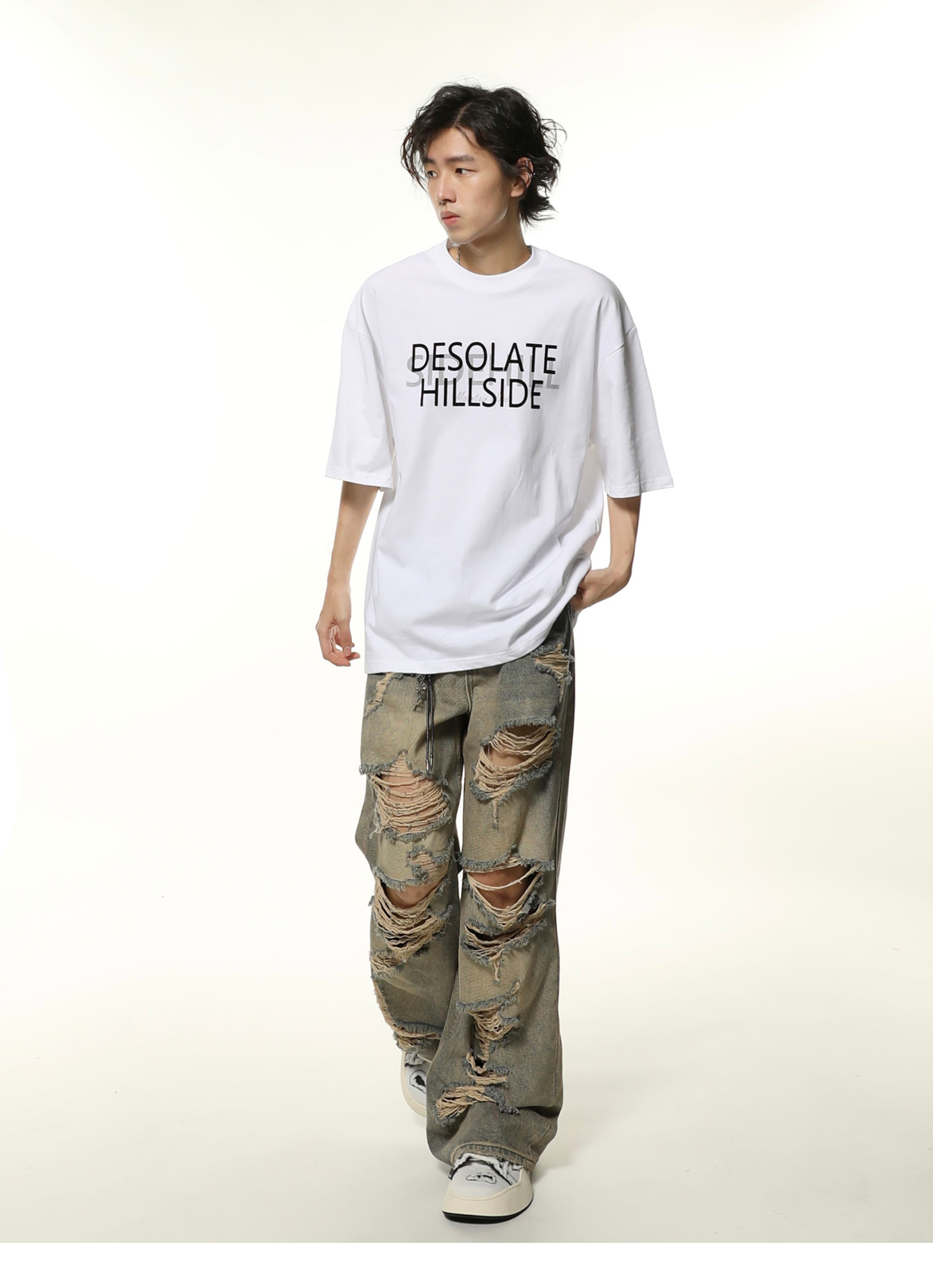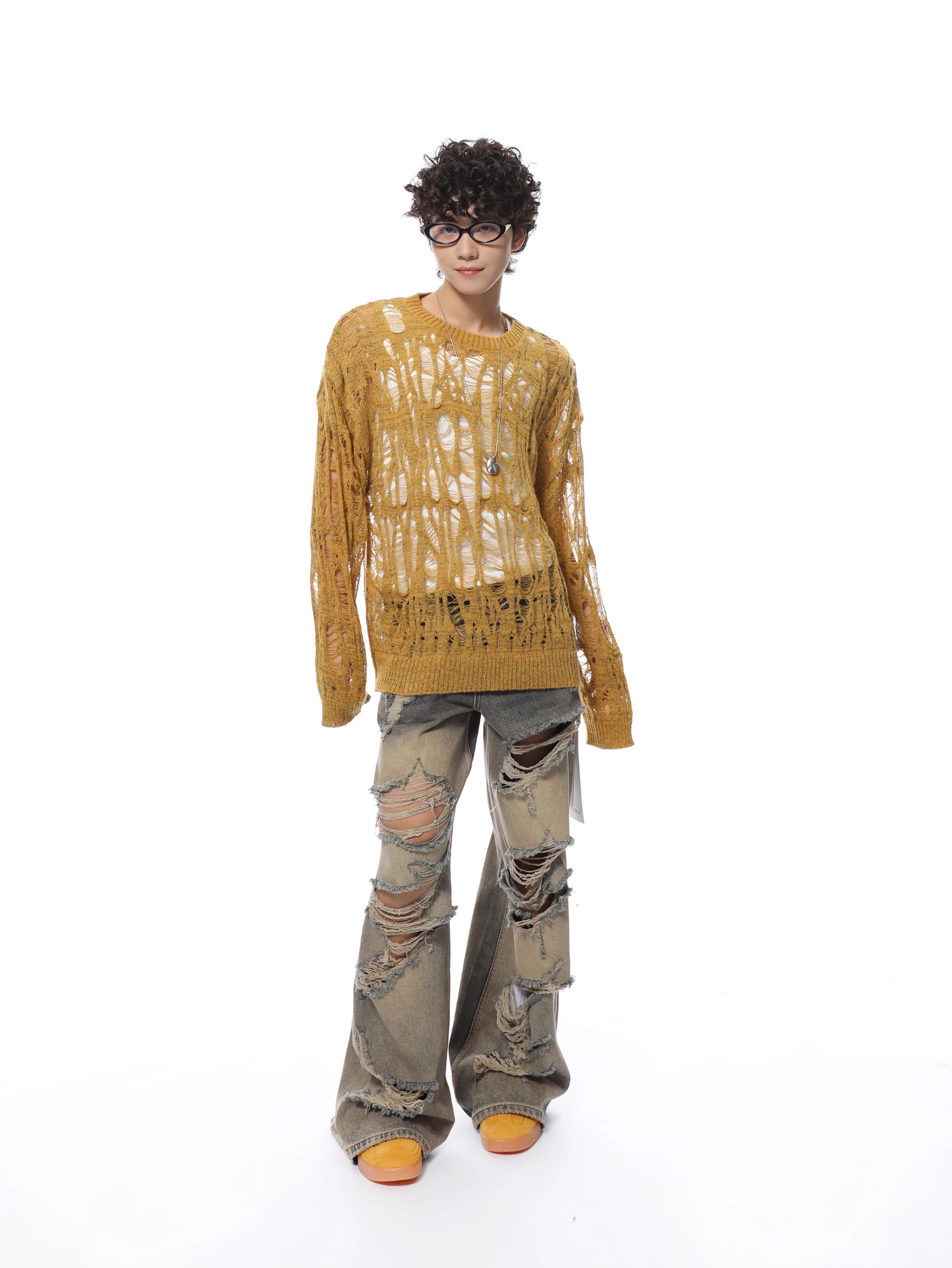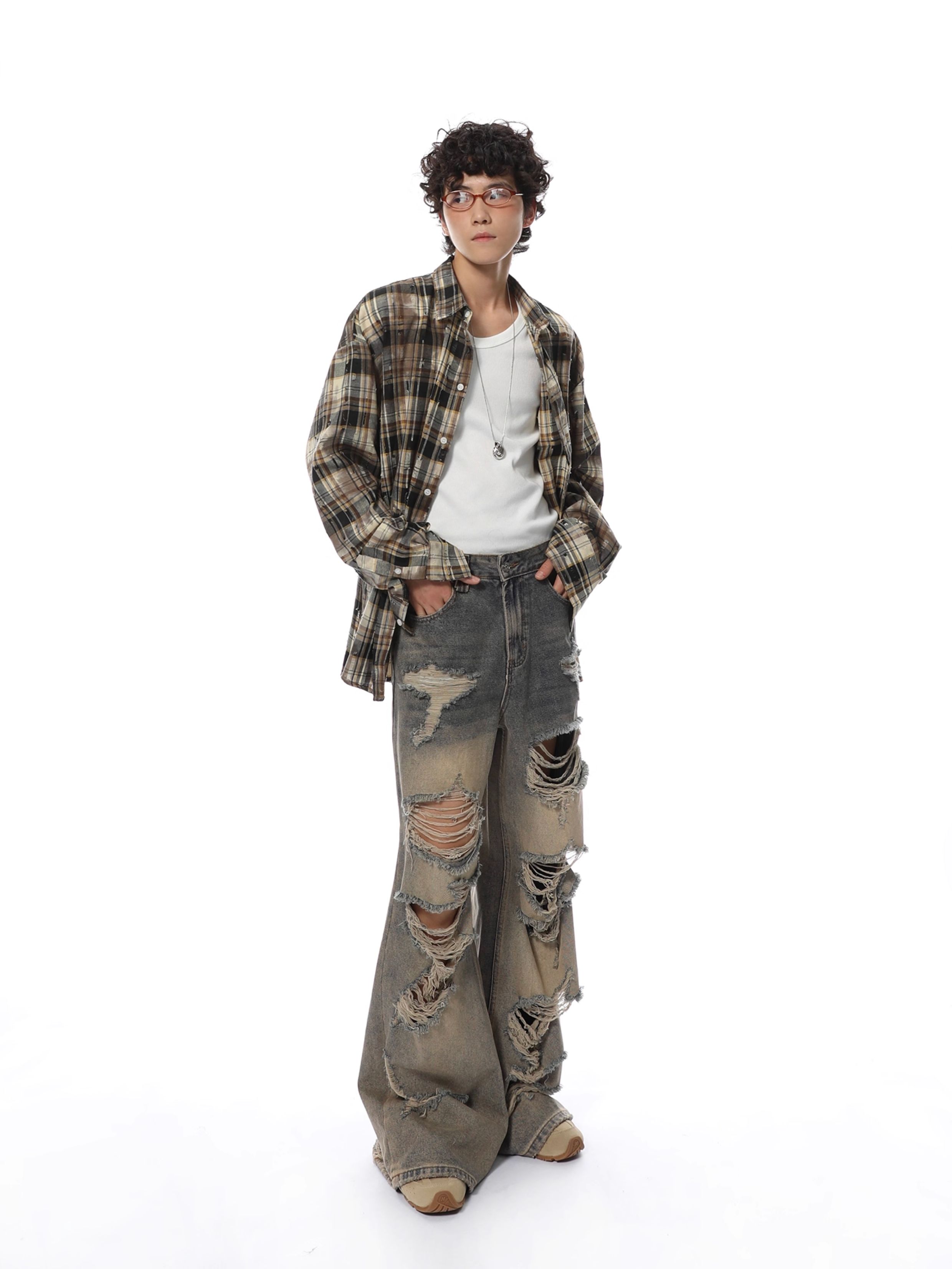 Futureboy/Wasteland Distressed Ripped Dirty Washed Jeans Parisian Style Worn-Out Beggar Pants Trendy