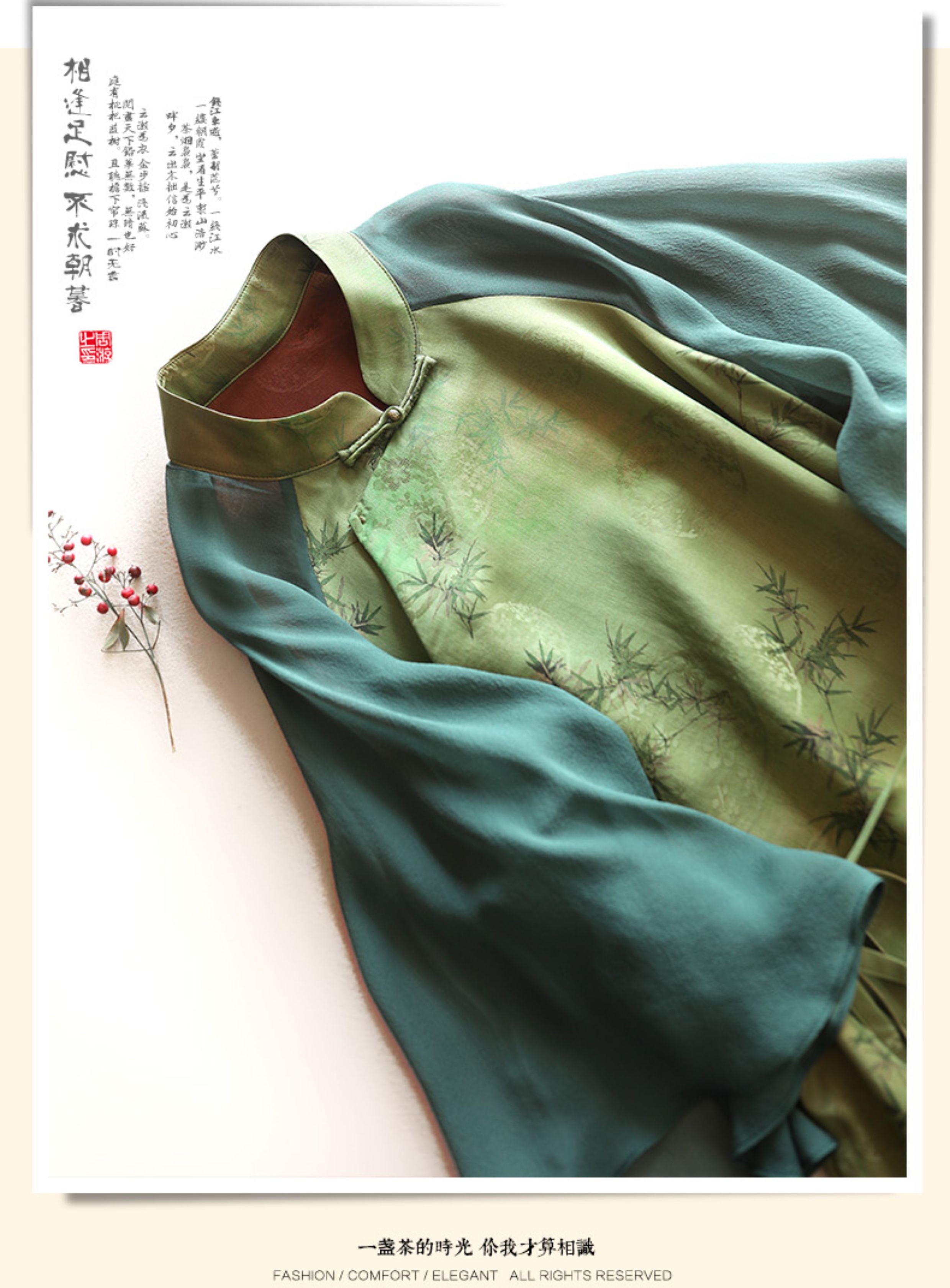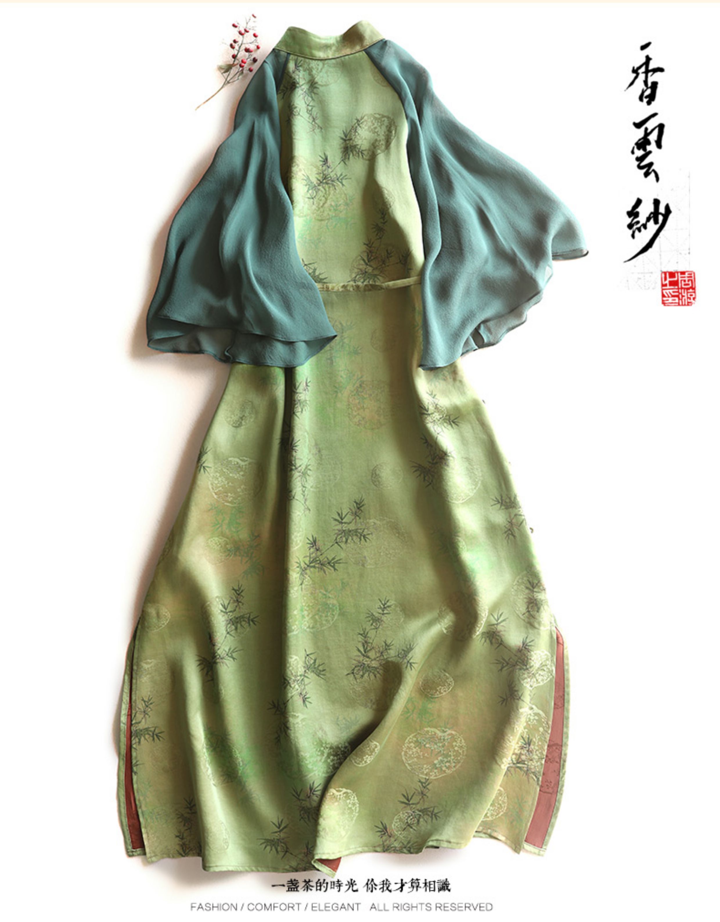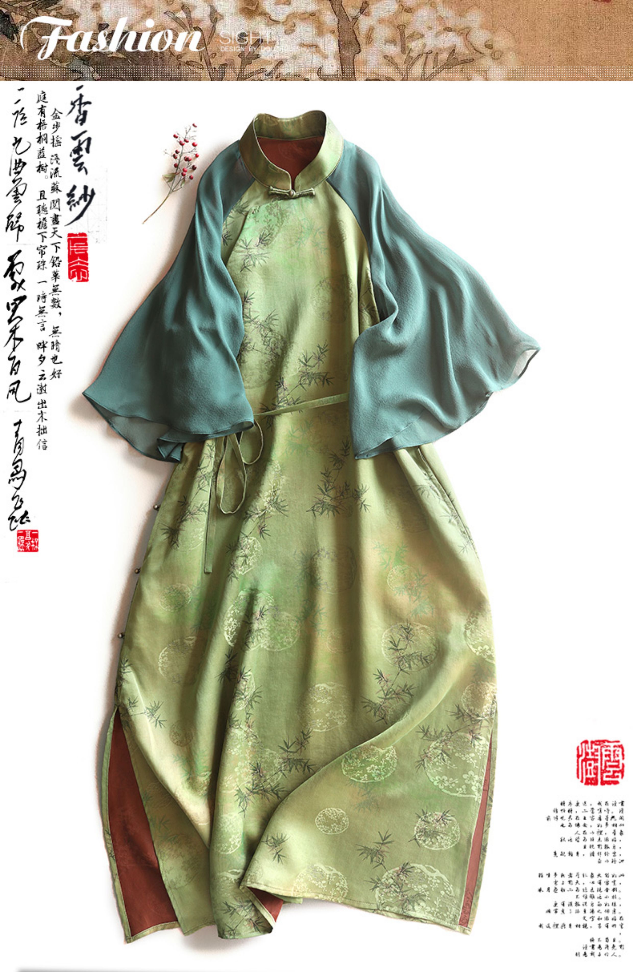Yunshu Original Floral Fragrant Cloud Silk Chinese Style Lace-Up Long Dress Summer Mulberry Silk Printed Retro National Trend Dress