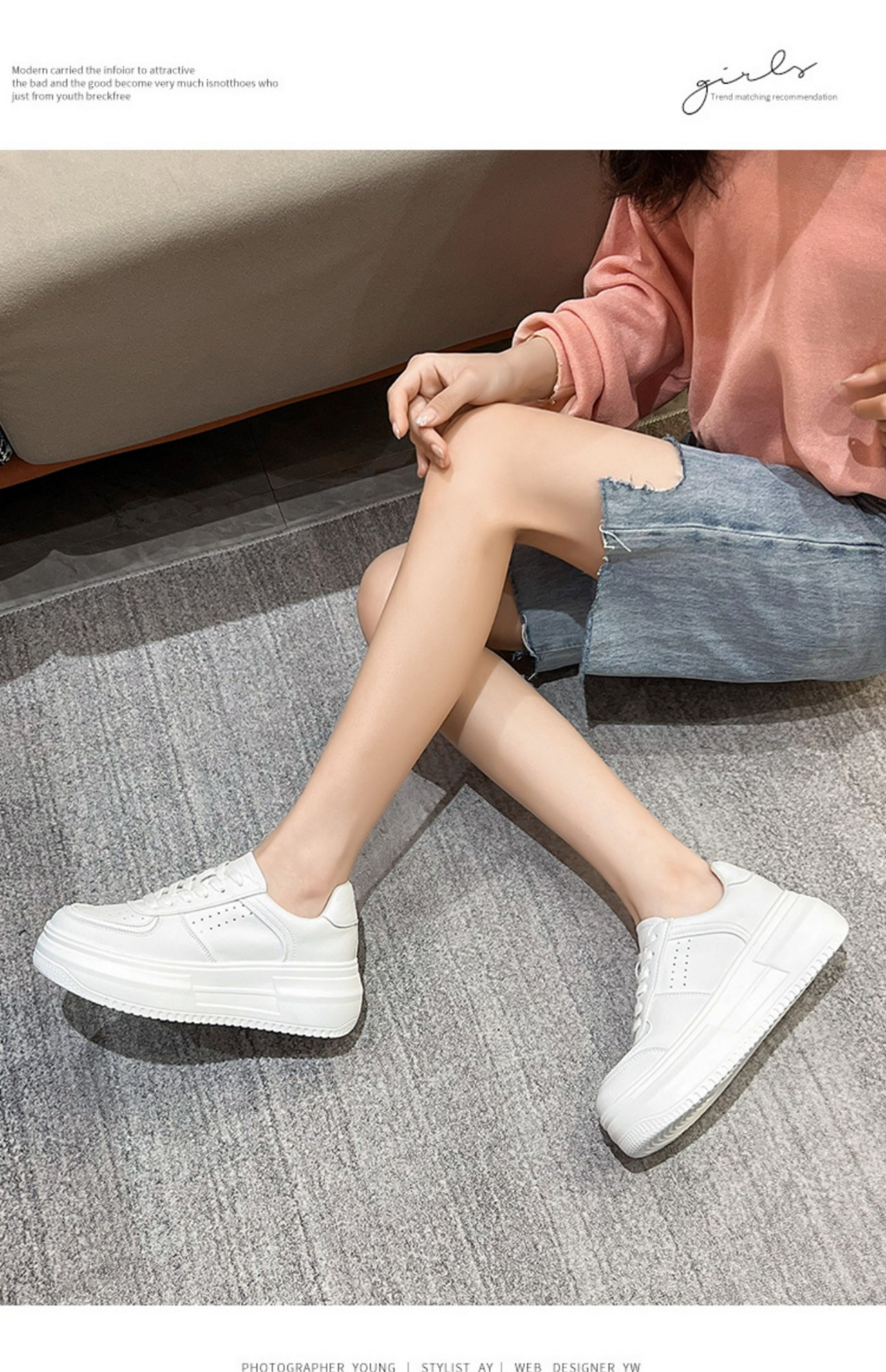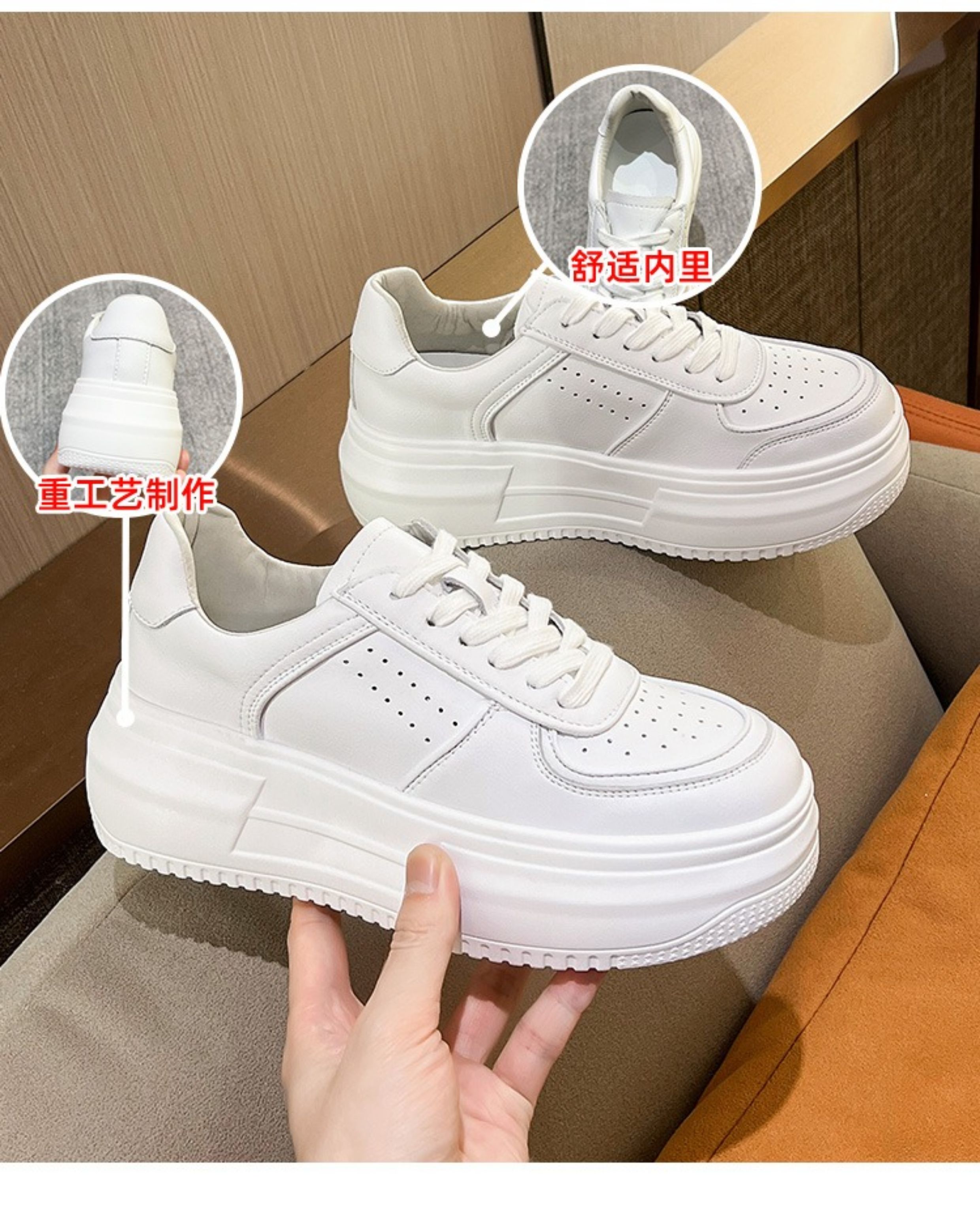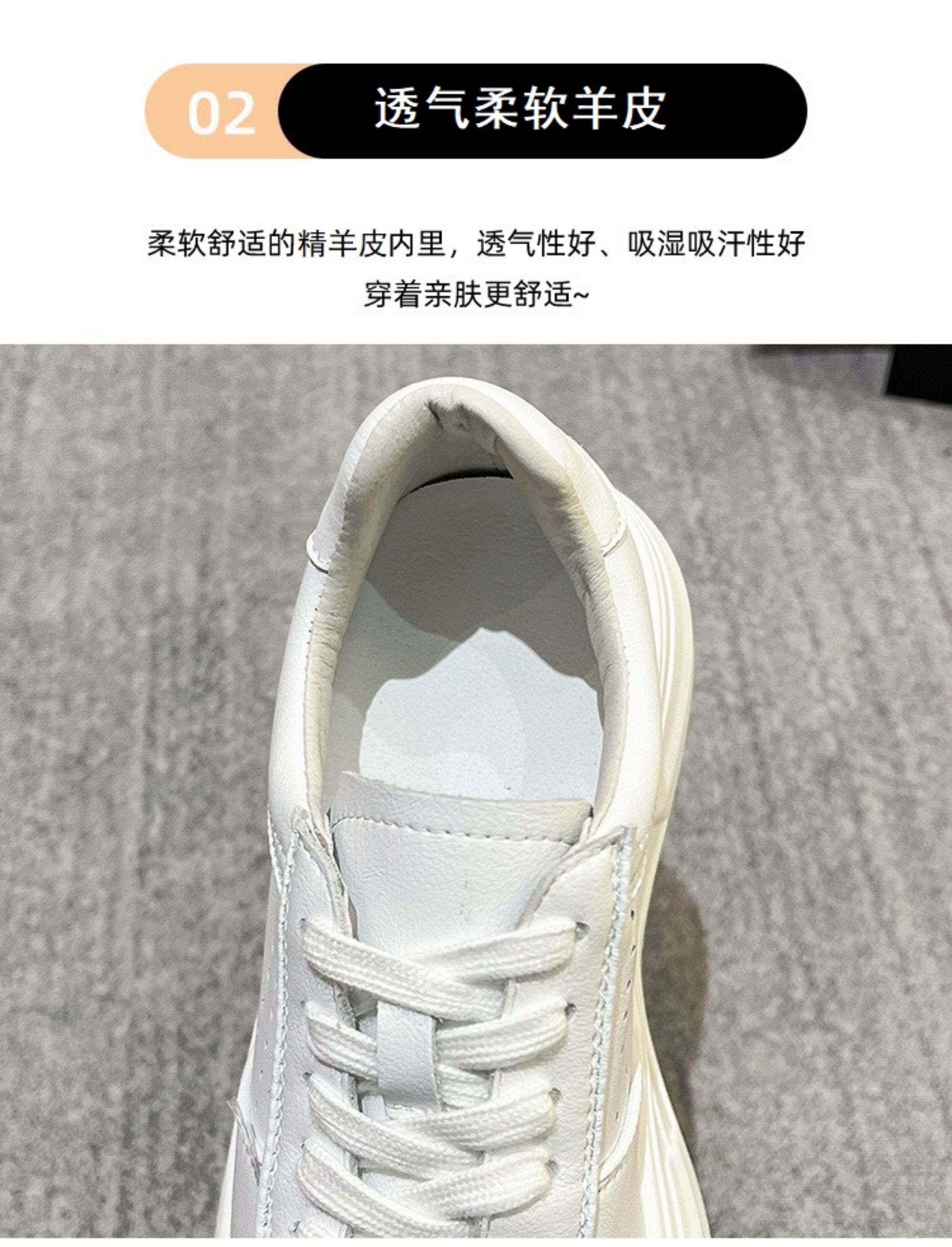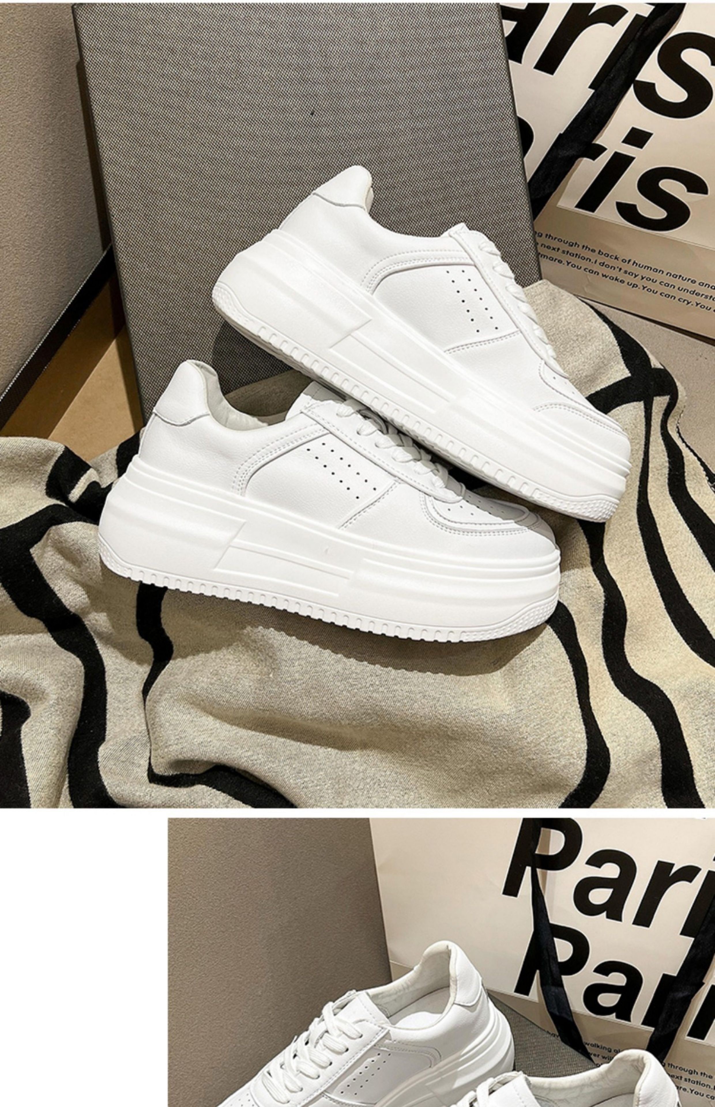 Hong Kong Genuine Leather Thick-Soled Height-Increasing White Sneakers for Women 2025 Spring and Autumn Casual Sneakers Soft-Soled Lightweight Loafers Platform Shoes