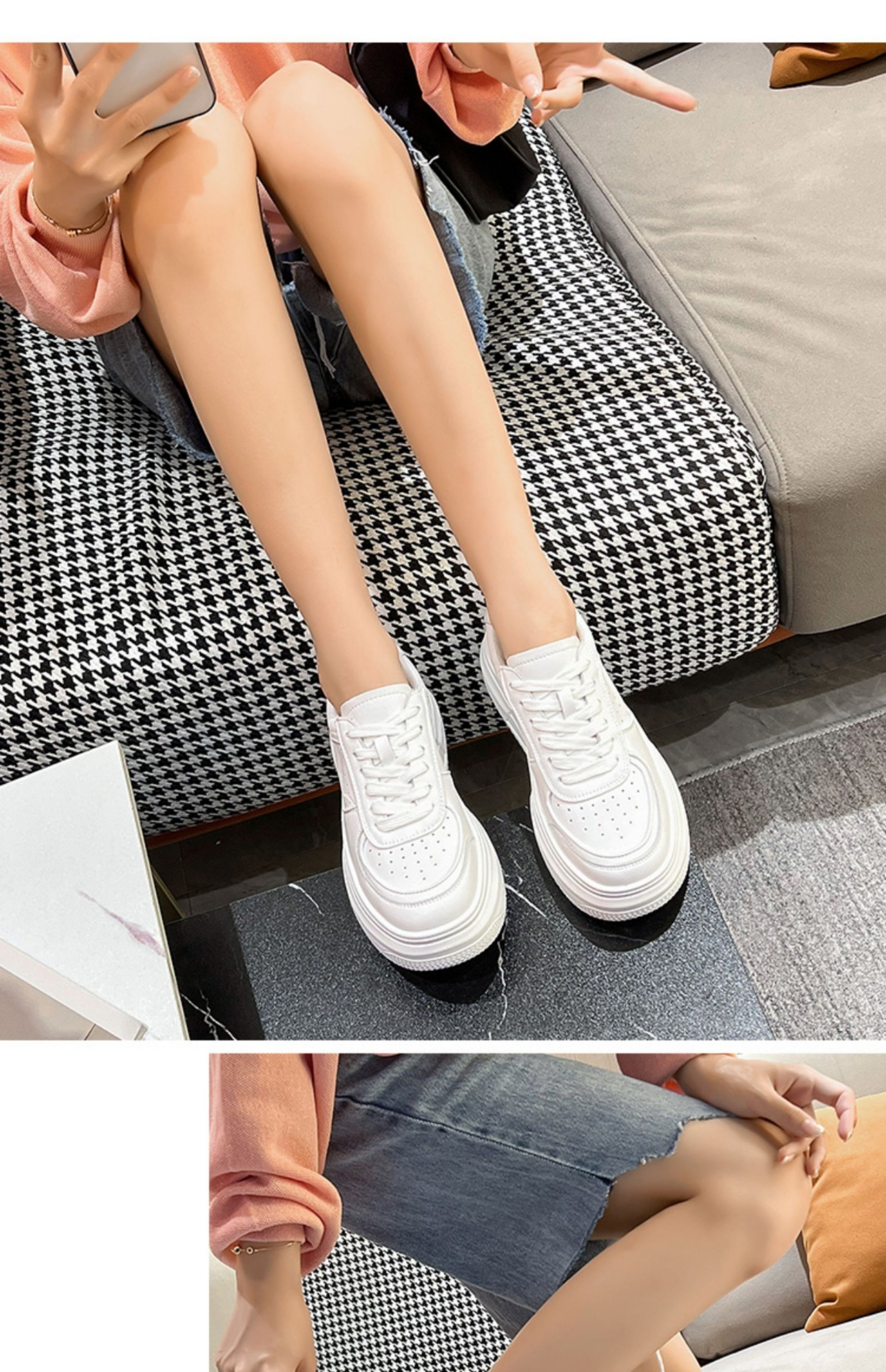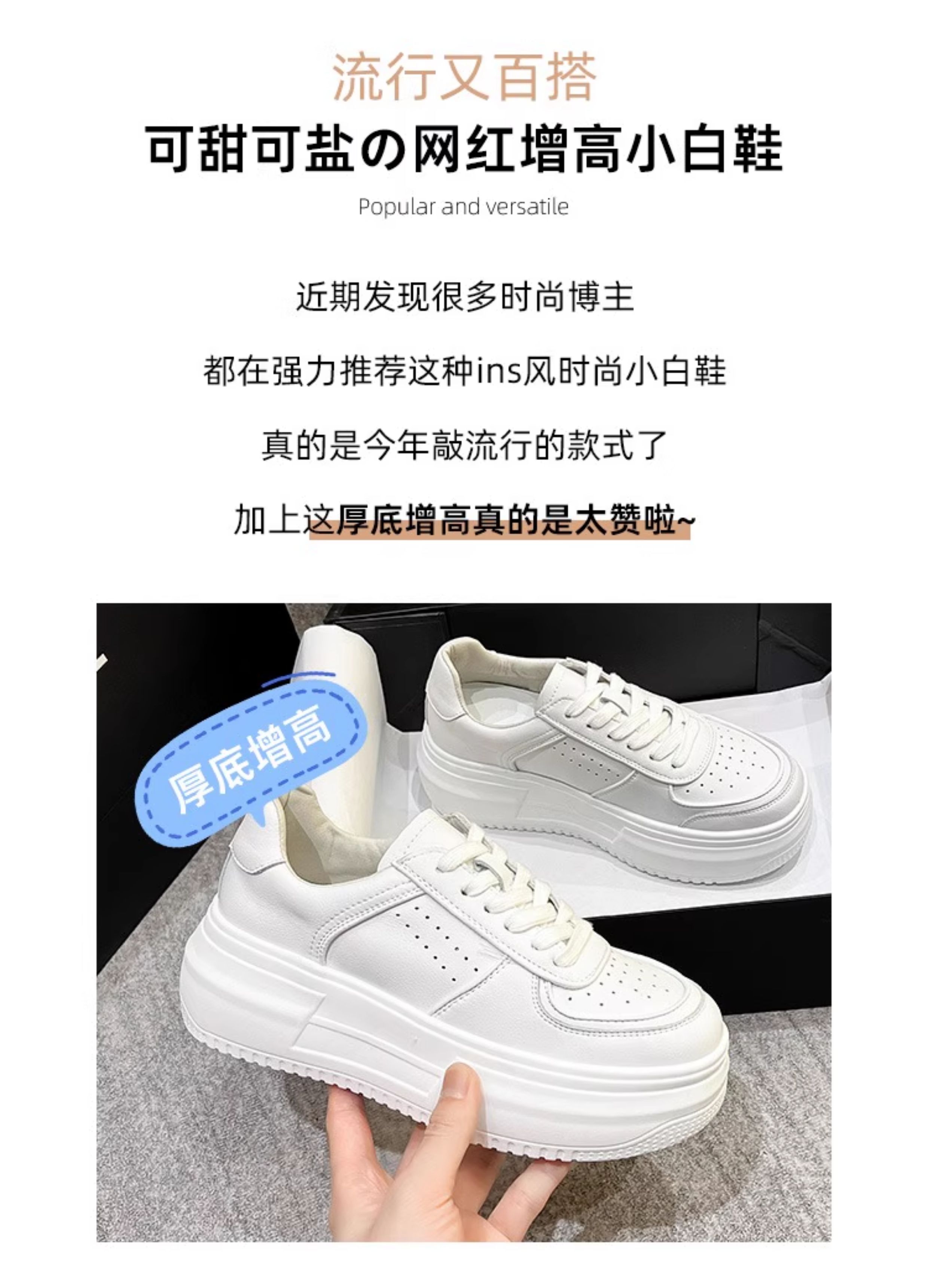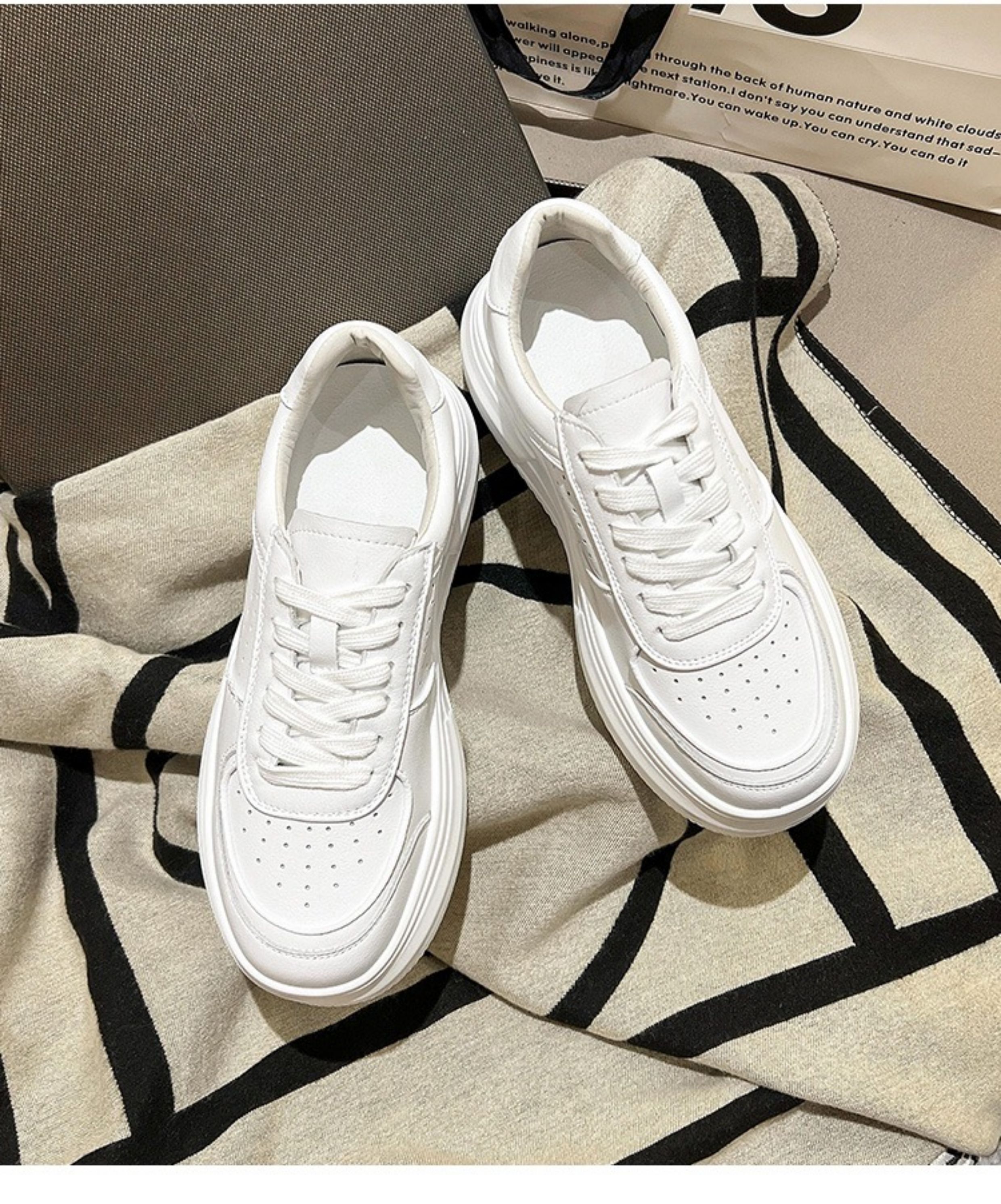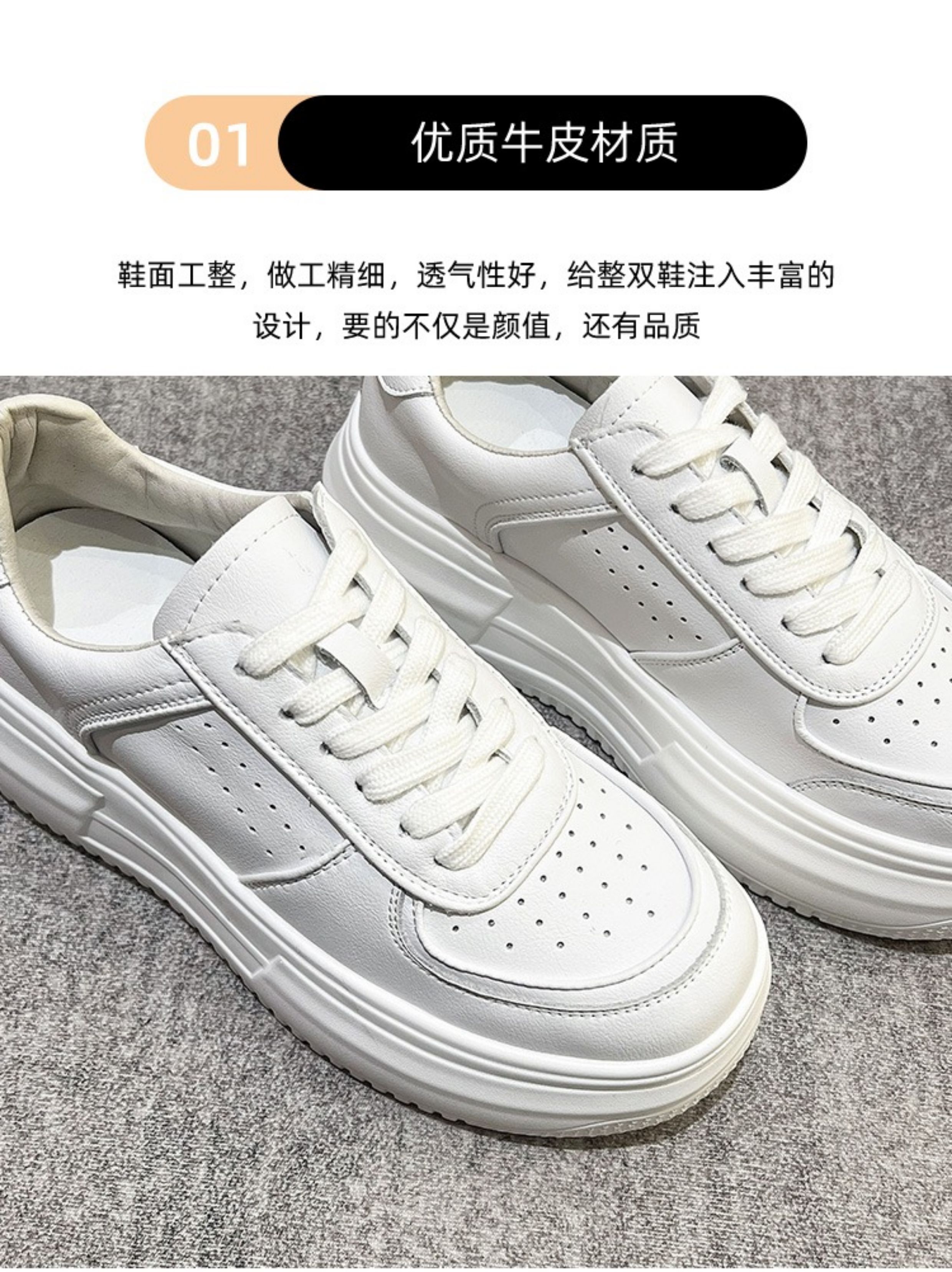 Hong Kong Genuine Leather Thick-Soled Height-Increasing White Sneakers for Women 2025 Spring and Autumn Casual Sneakers Soft-Soled Lightweight Loafers Platform Shoes