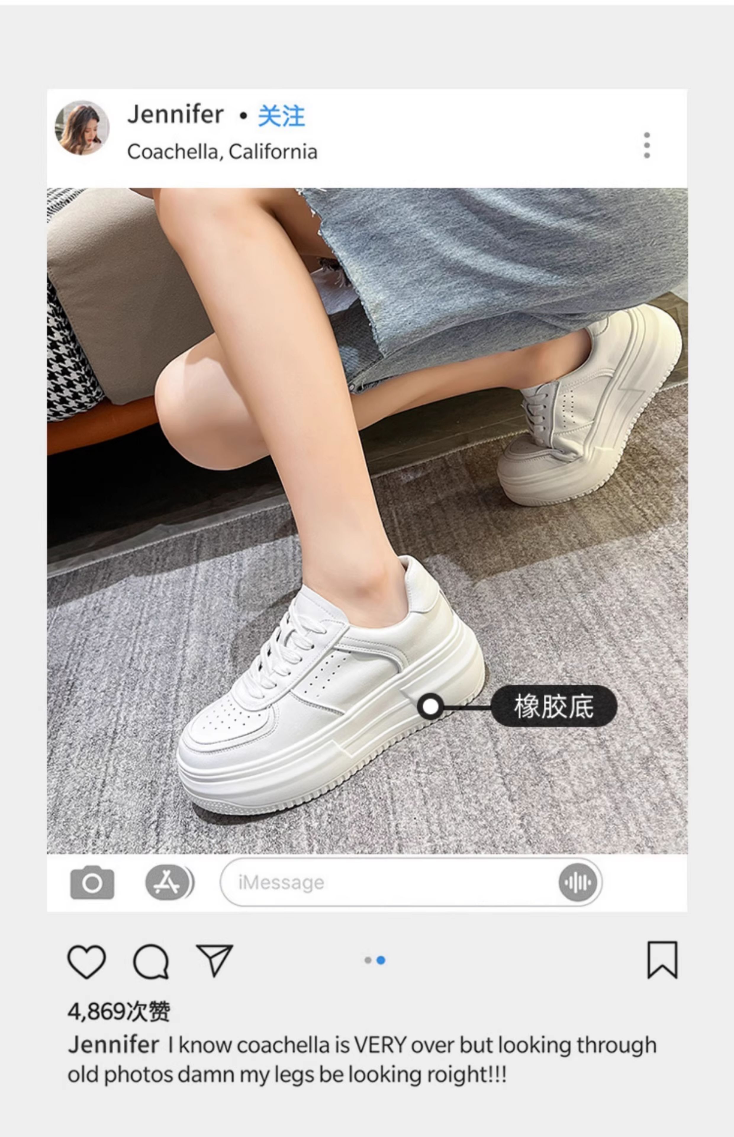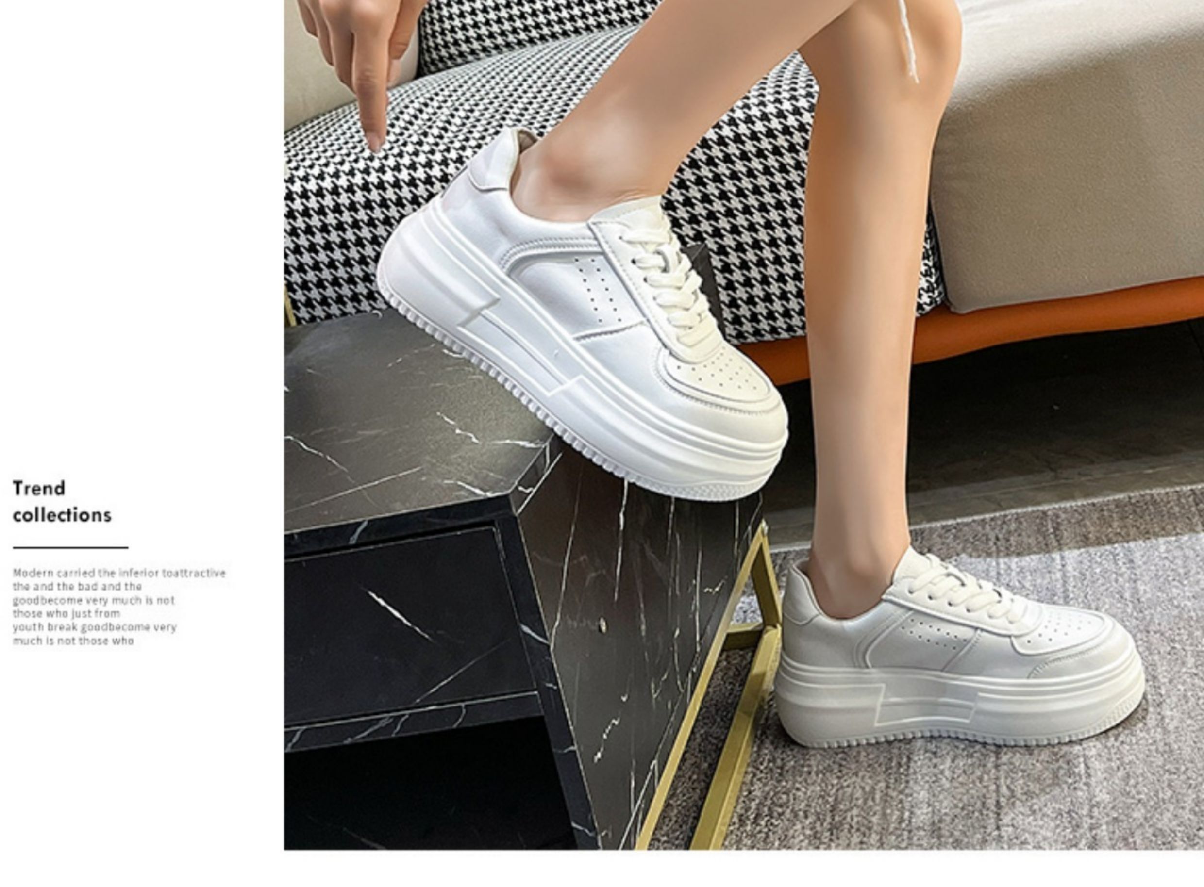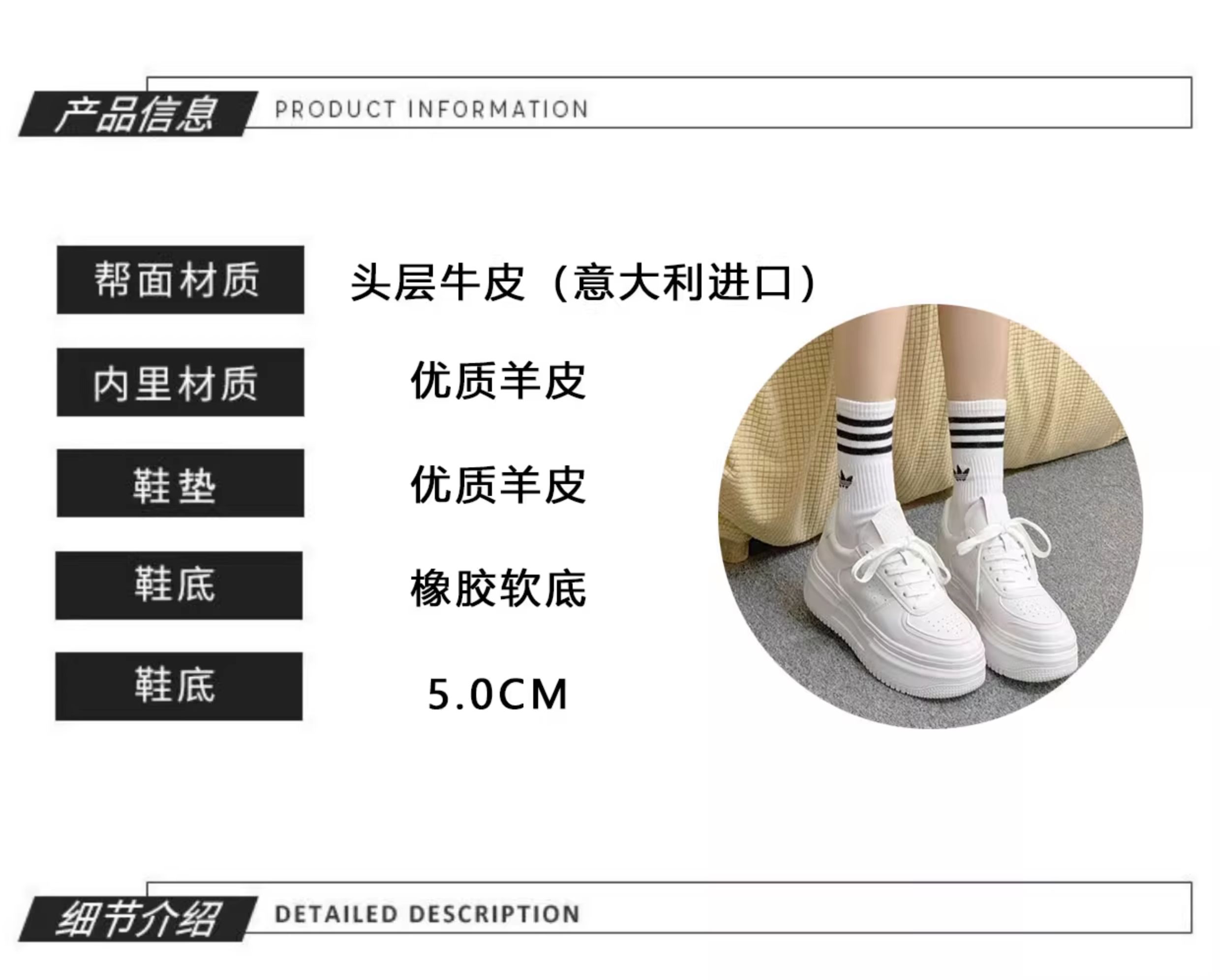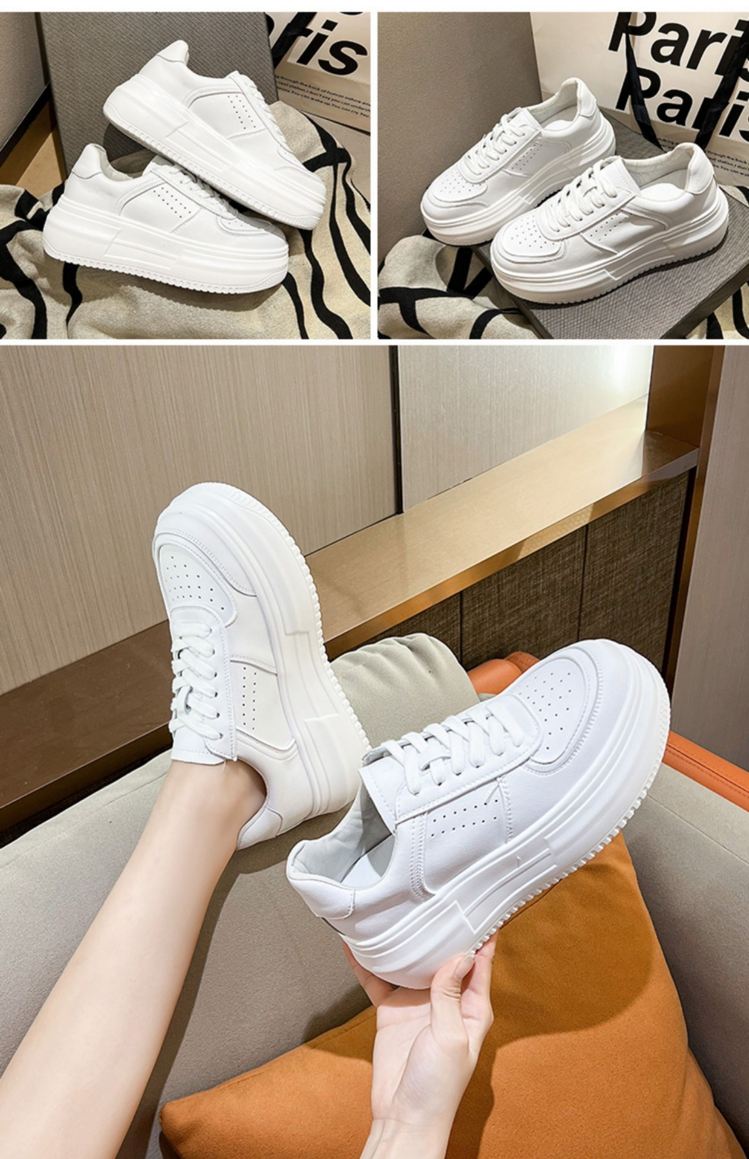 Hong Kong Genuine Leather Thick-Soled Height-Increasing White Sneakers for Women 2025 Spring and Autumn Casual Sneakers Soft-Soled Lightweight Loafers Platform Shoes
