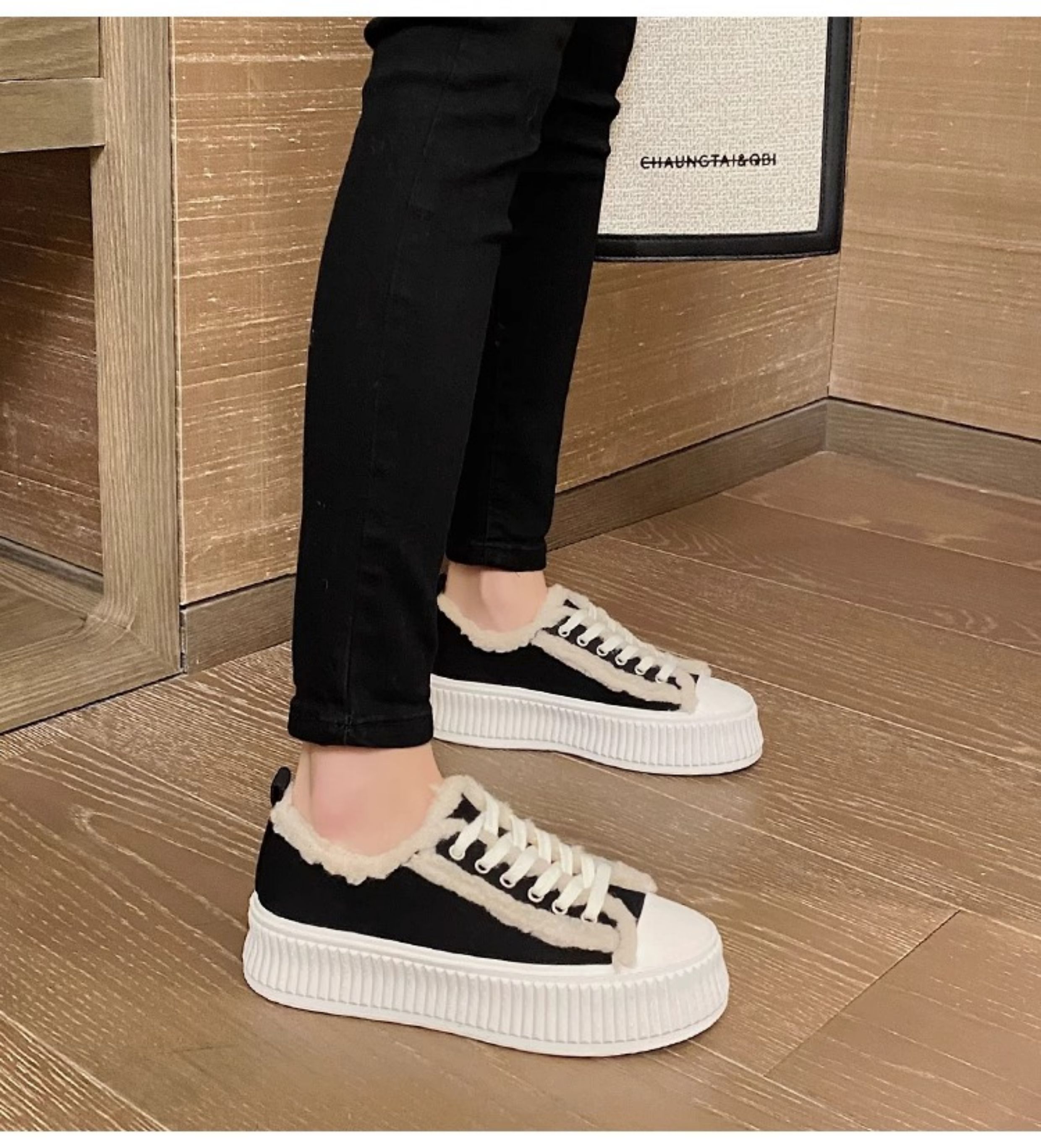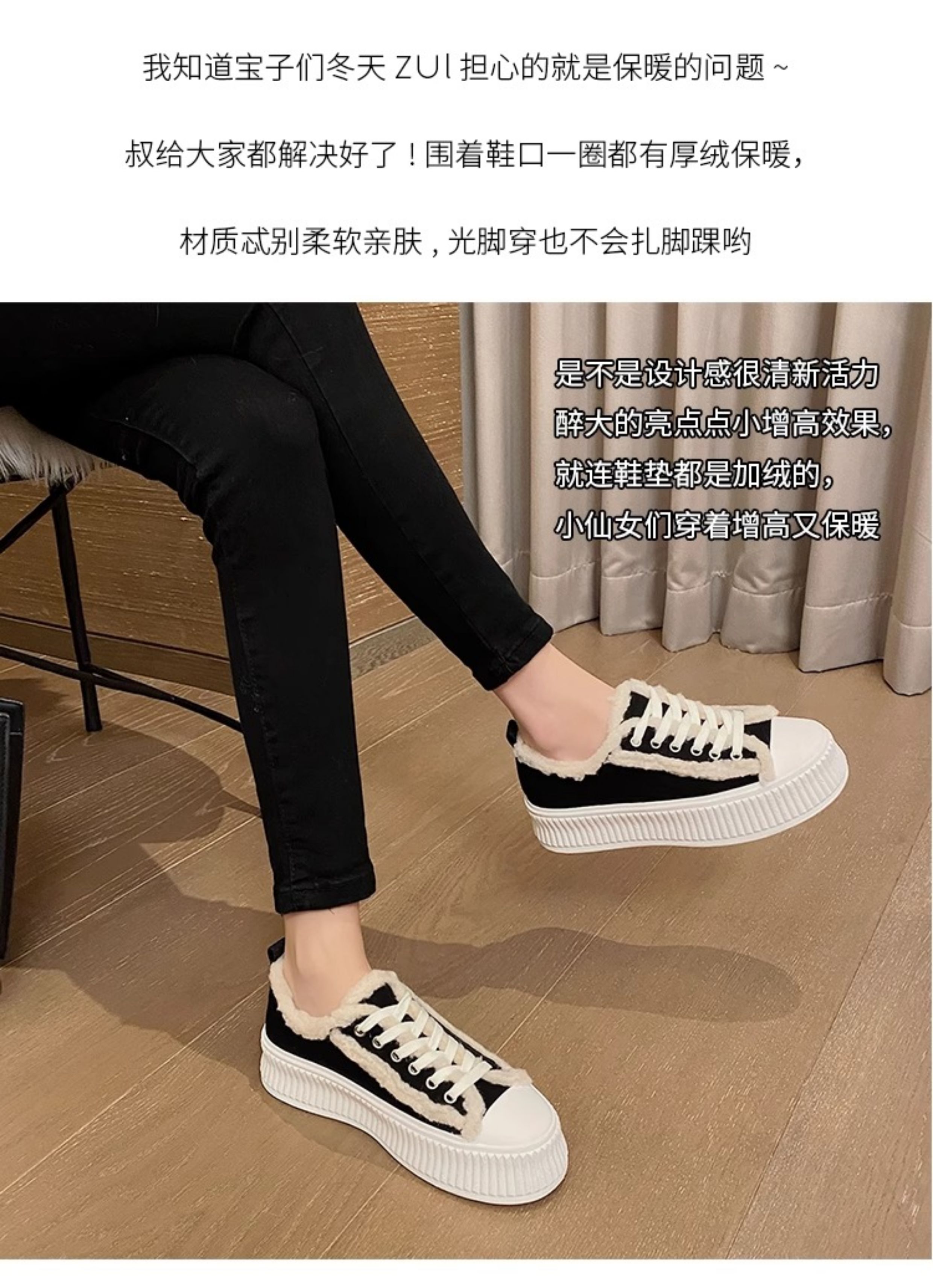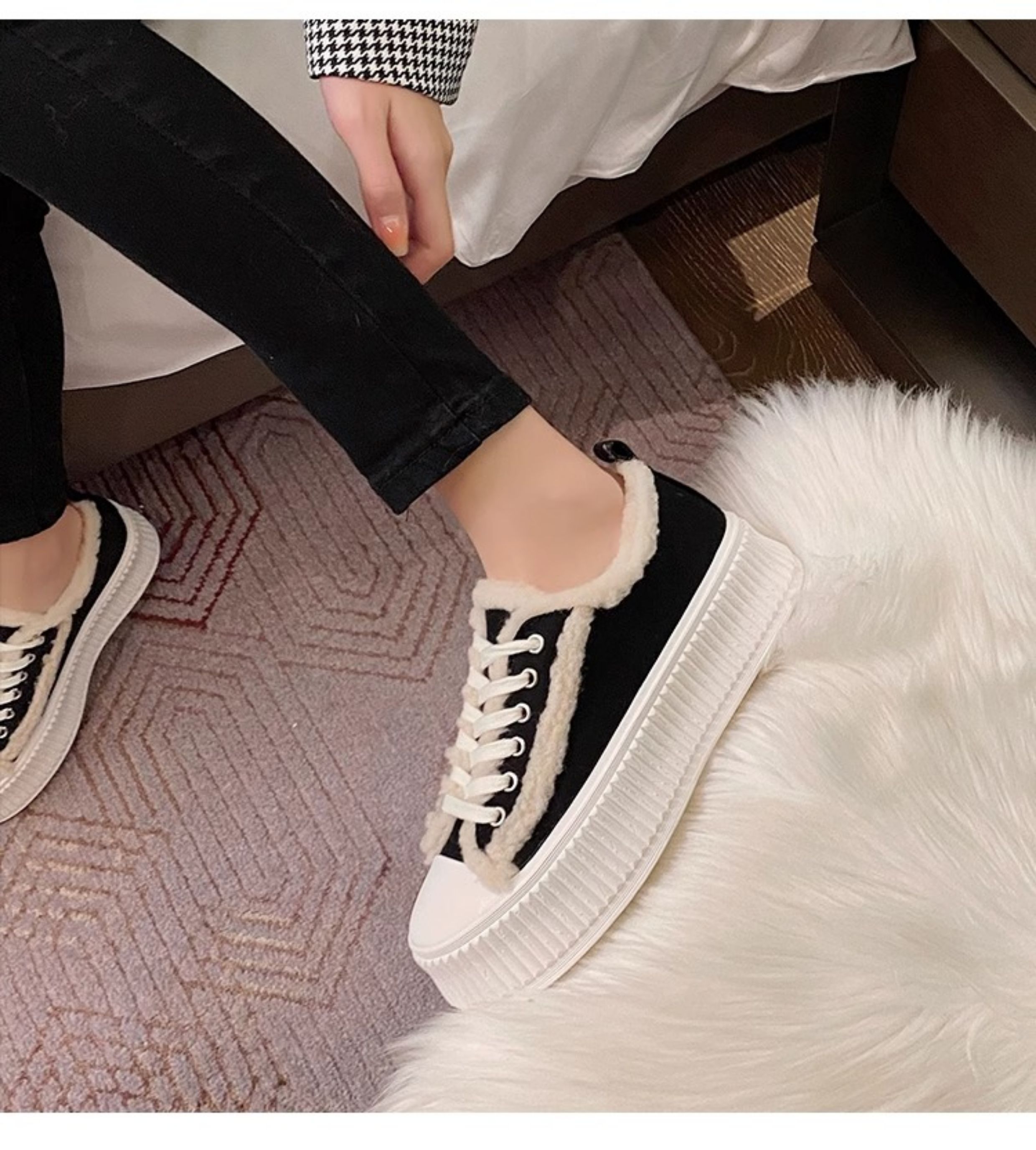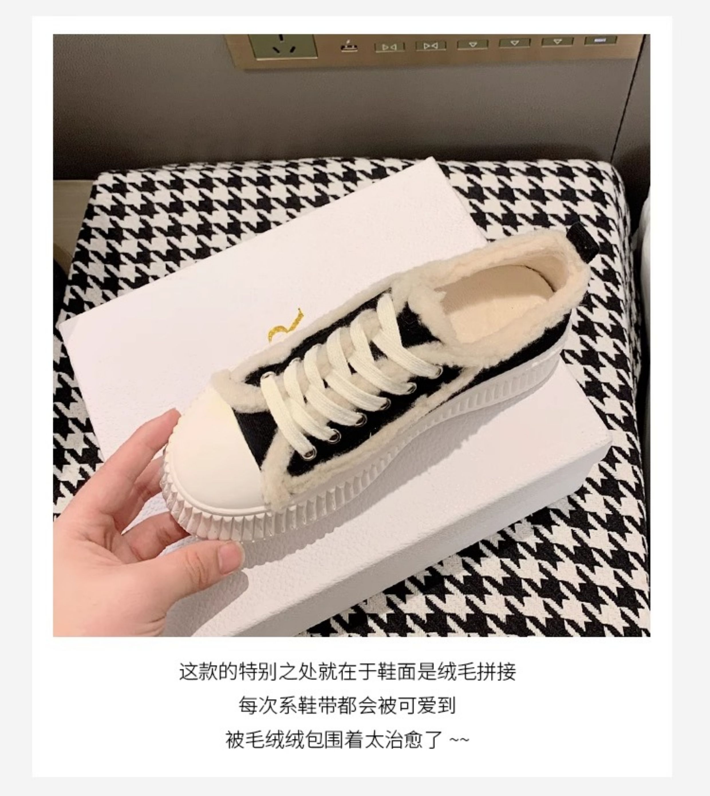 Hong Kong Plush Fur Shoes for Women 2025 Spring and Autumn Thick-Soled Height-Increasing Versatile Biscuit Shoes Women's Casual Sneakers Platform Shoes
