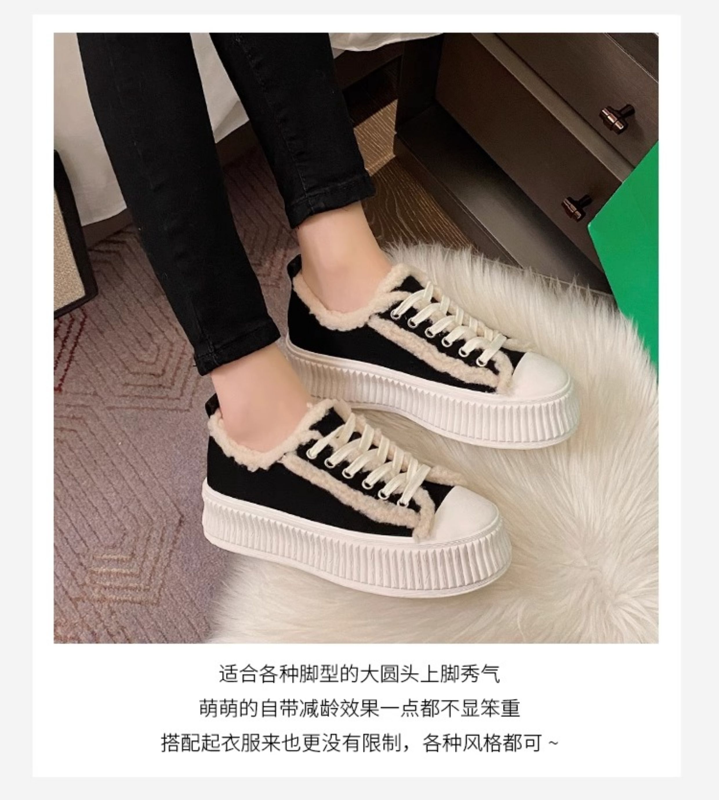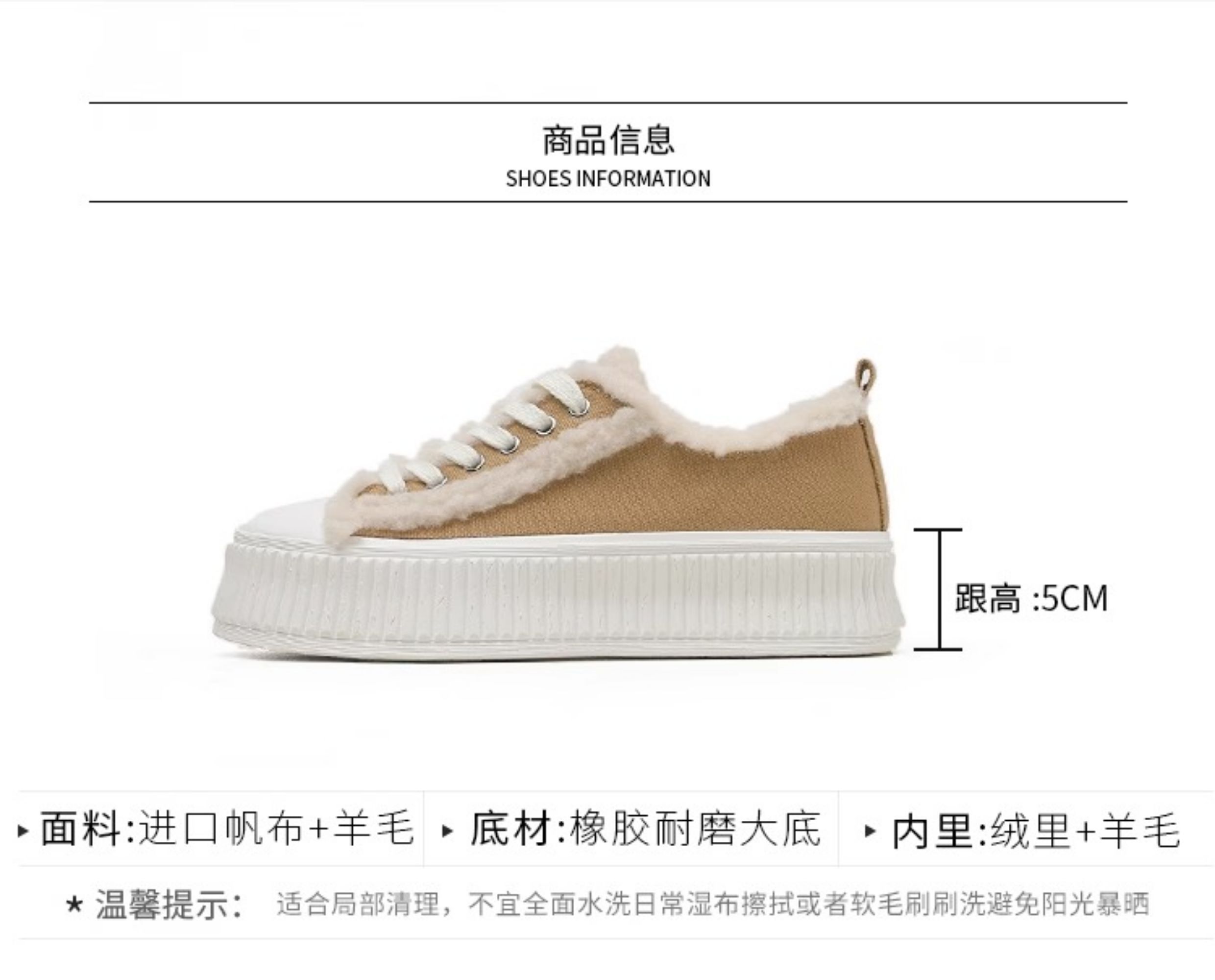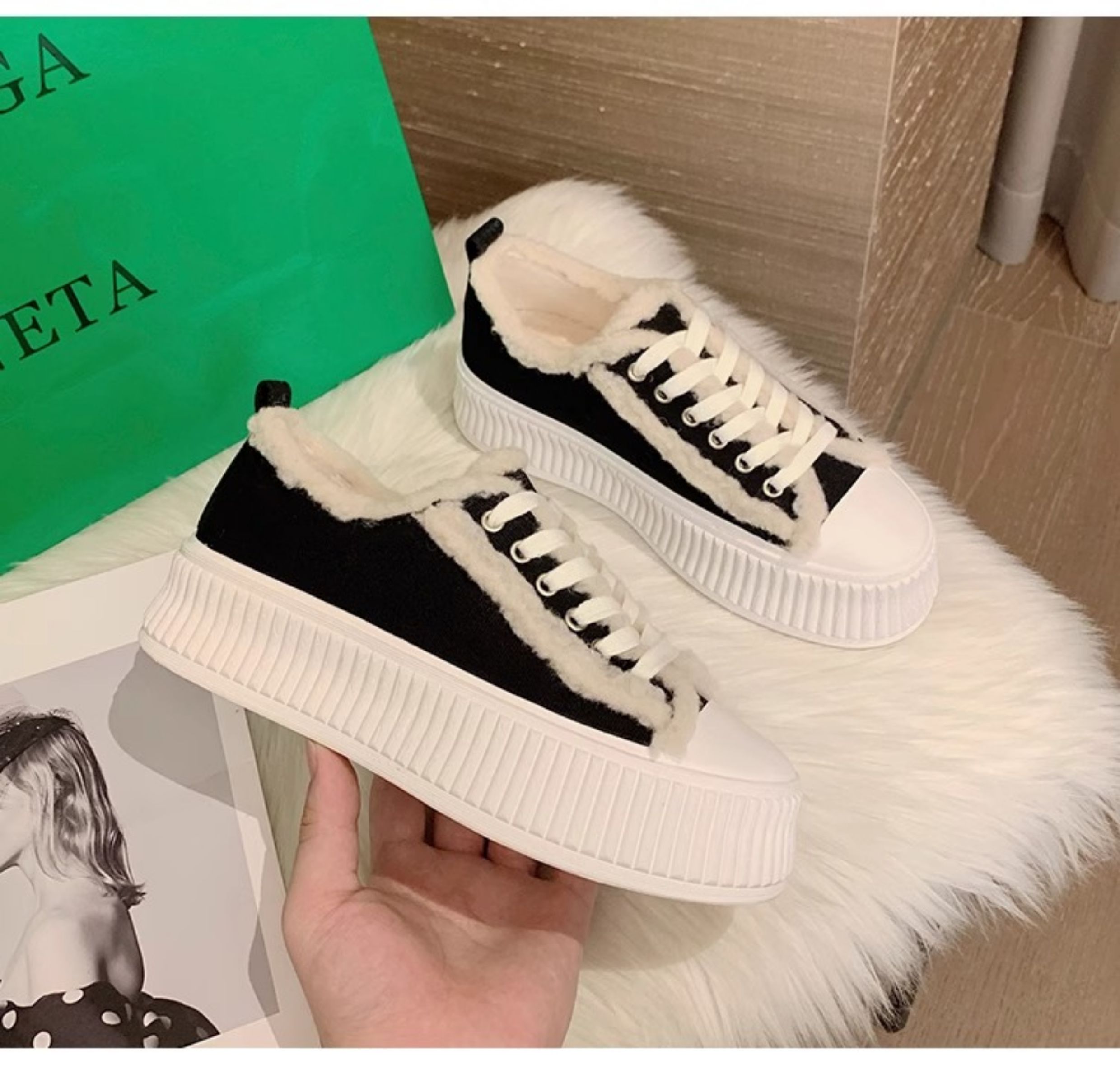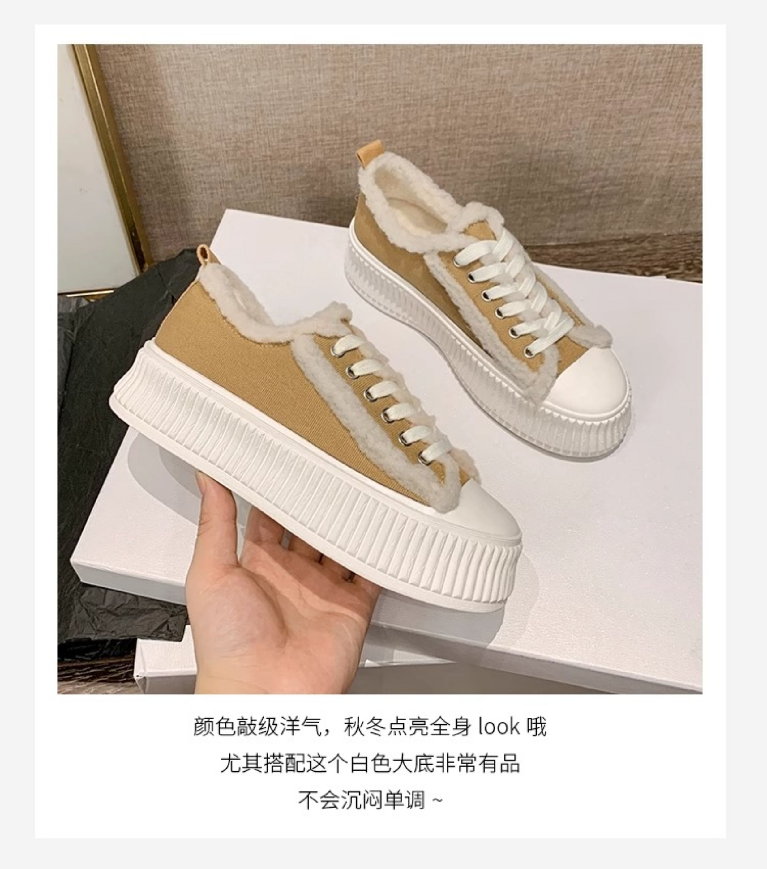 Hong Kong Plush Fur Shoes for Women 2025 Spring and Autumn Thick-Soled Height-Increasing Versatile Biscuit Shoes Women's Casual Sneakers Platform Shoes