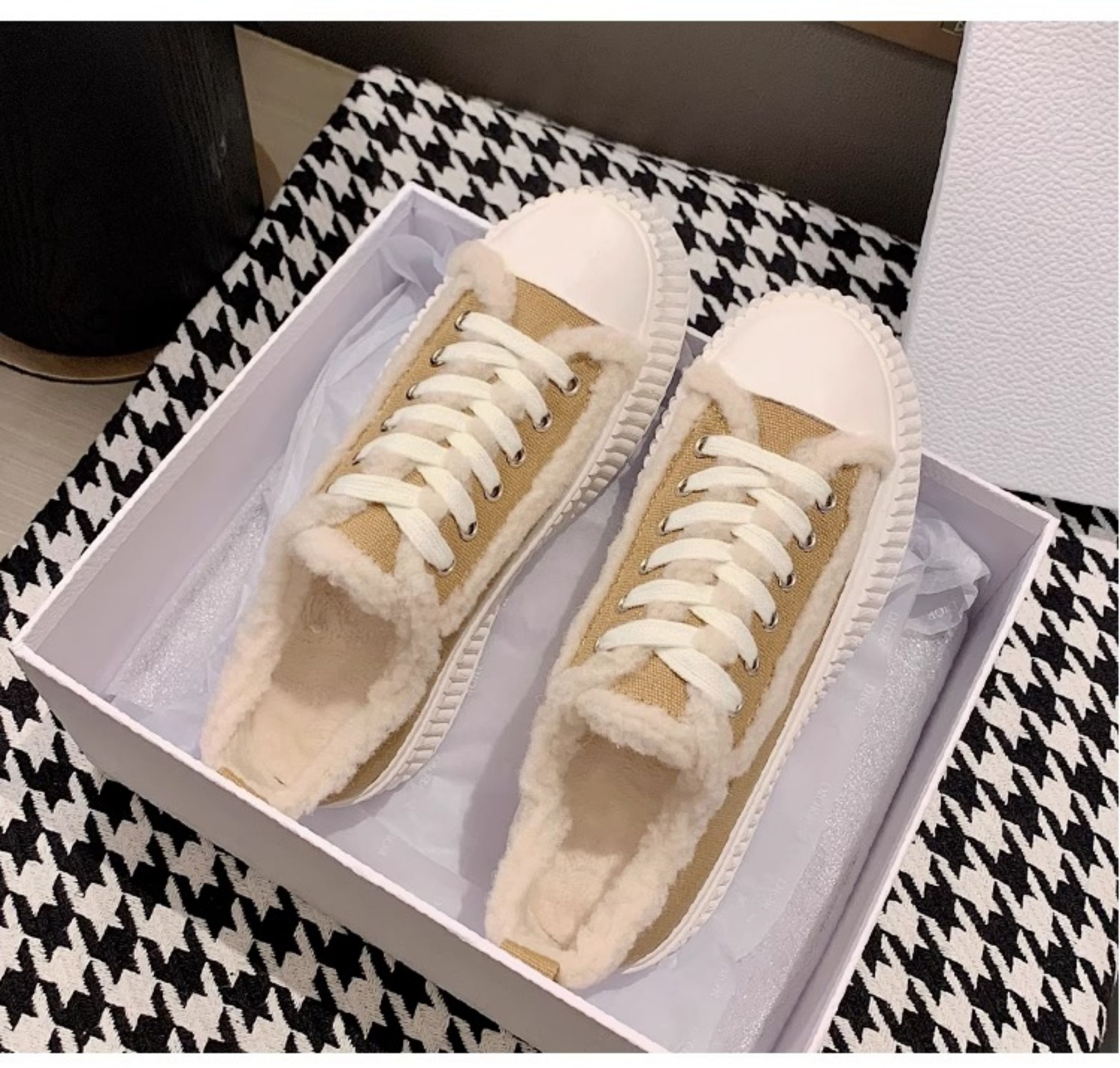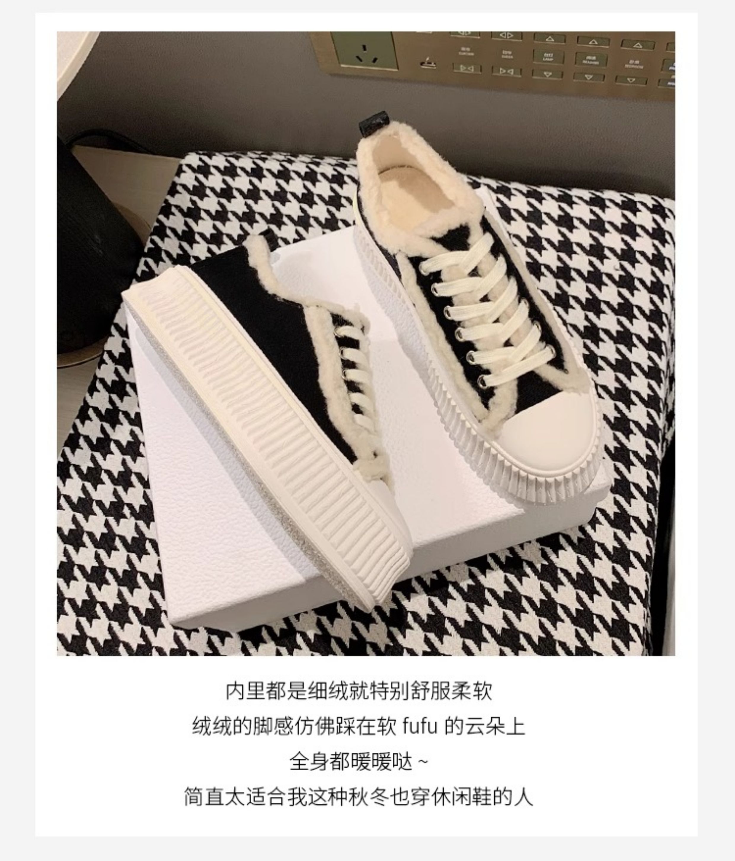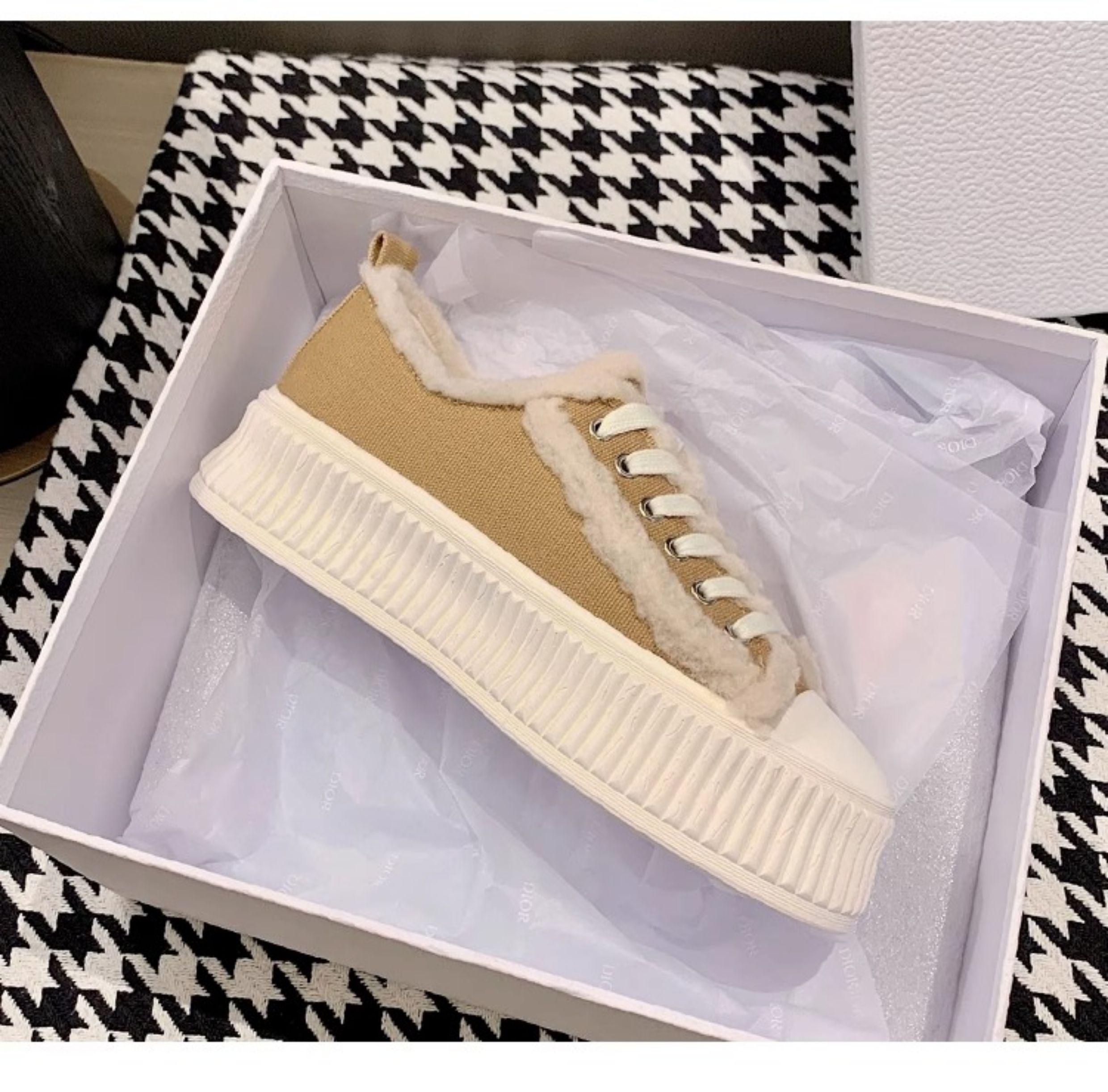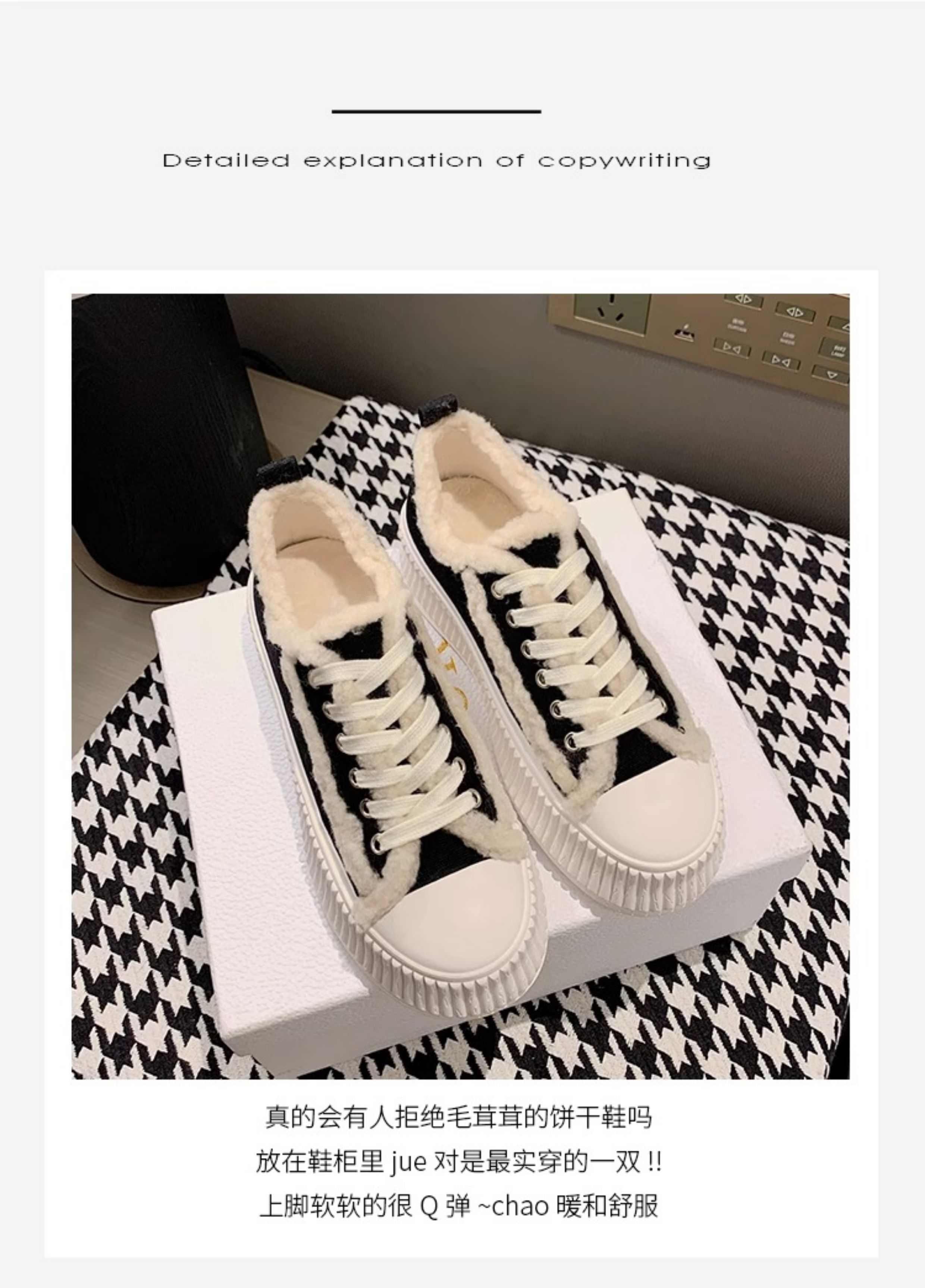 Hong Kong Plush Fur Shoes for Women 2025 Spring and Autumn Thick-Soled Height-Increasing Versatile Biscuit Shoes Women's Casual Sneakers Platform Shoes