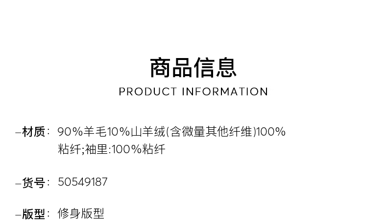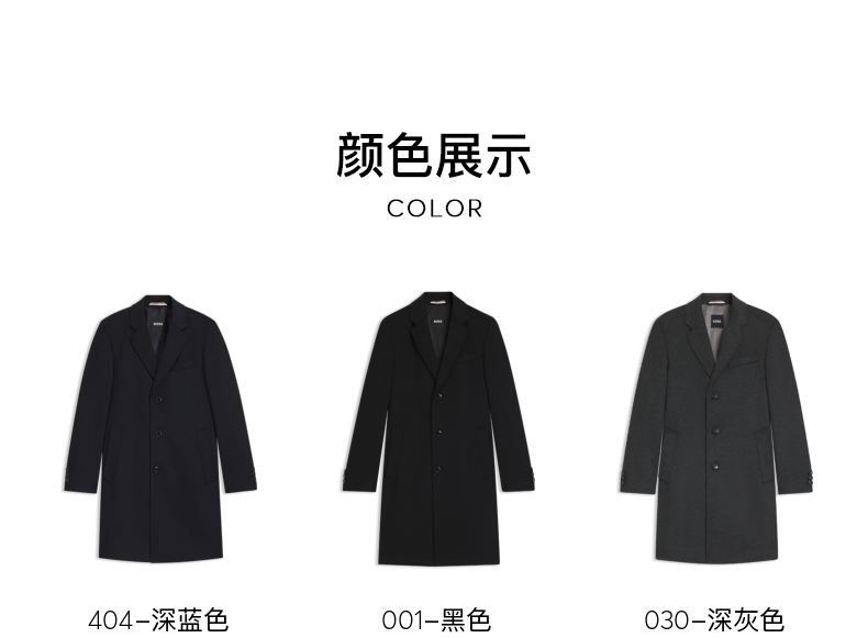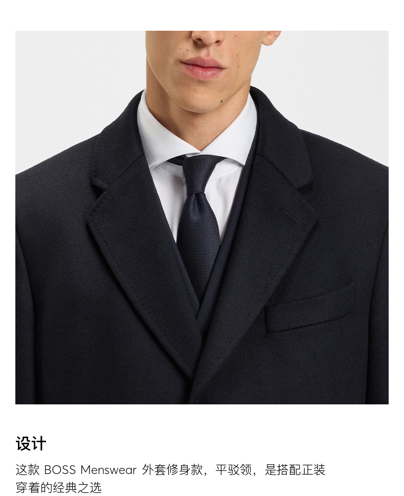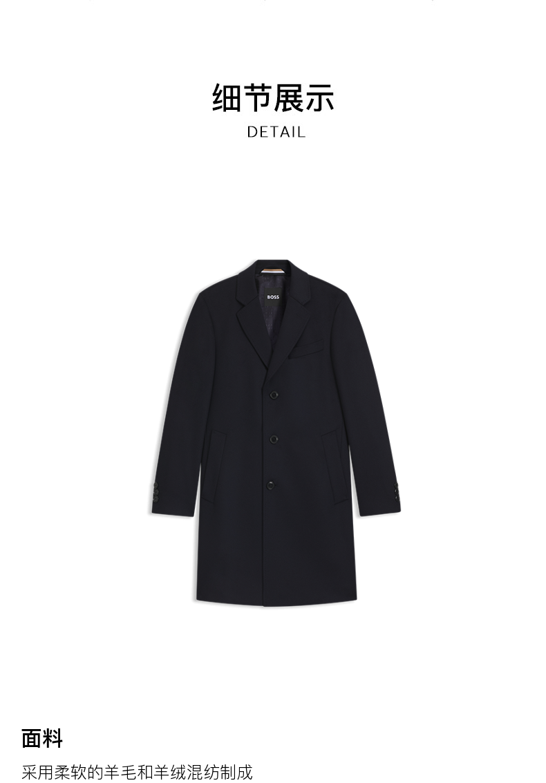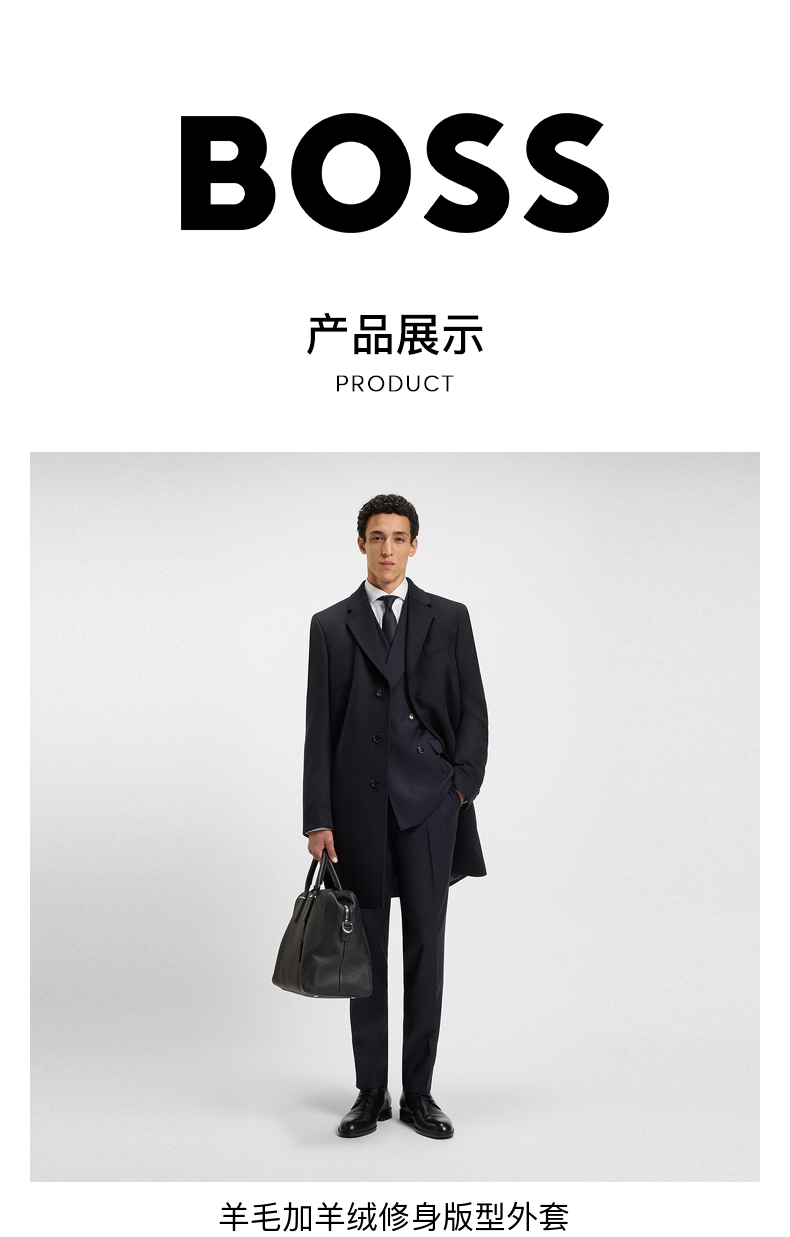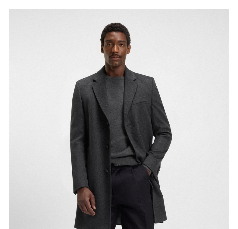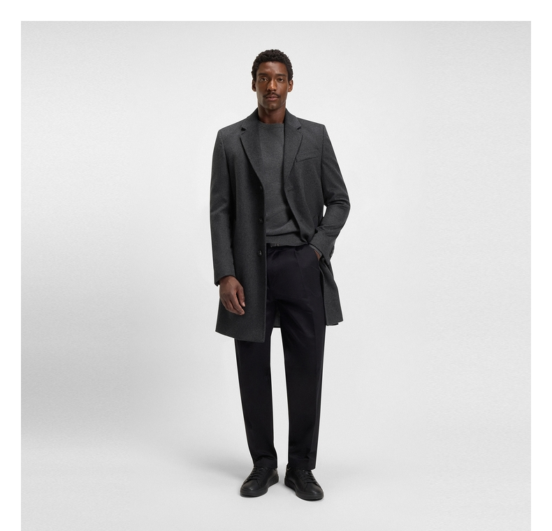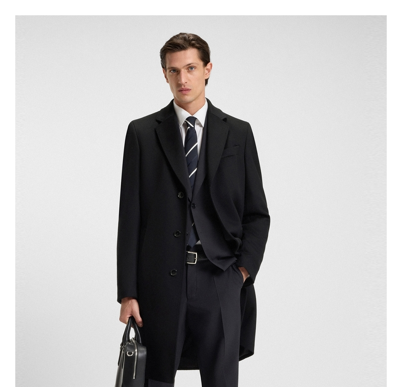 [Contains Cashmere] Boss Men's 2025 Winter New Wool and Cashmere Blend Slim Fit Woolen Coat