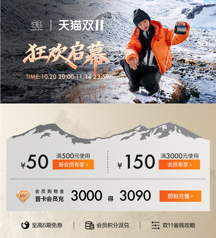 Kolon Sport Outdoor Sports Women's down Jacket Hiking and Mountaineering Raccoon Fur Hooded Goose down Jacket