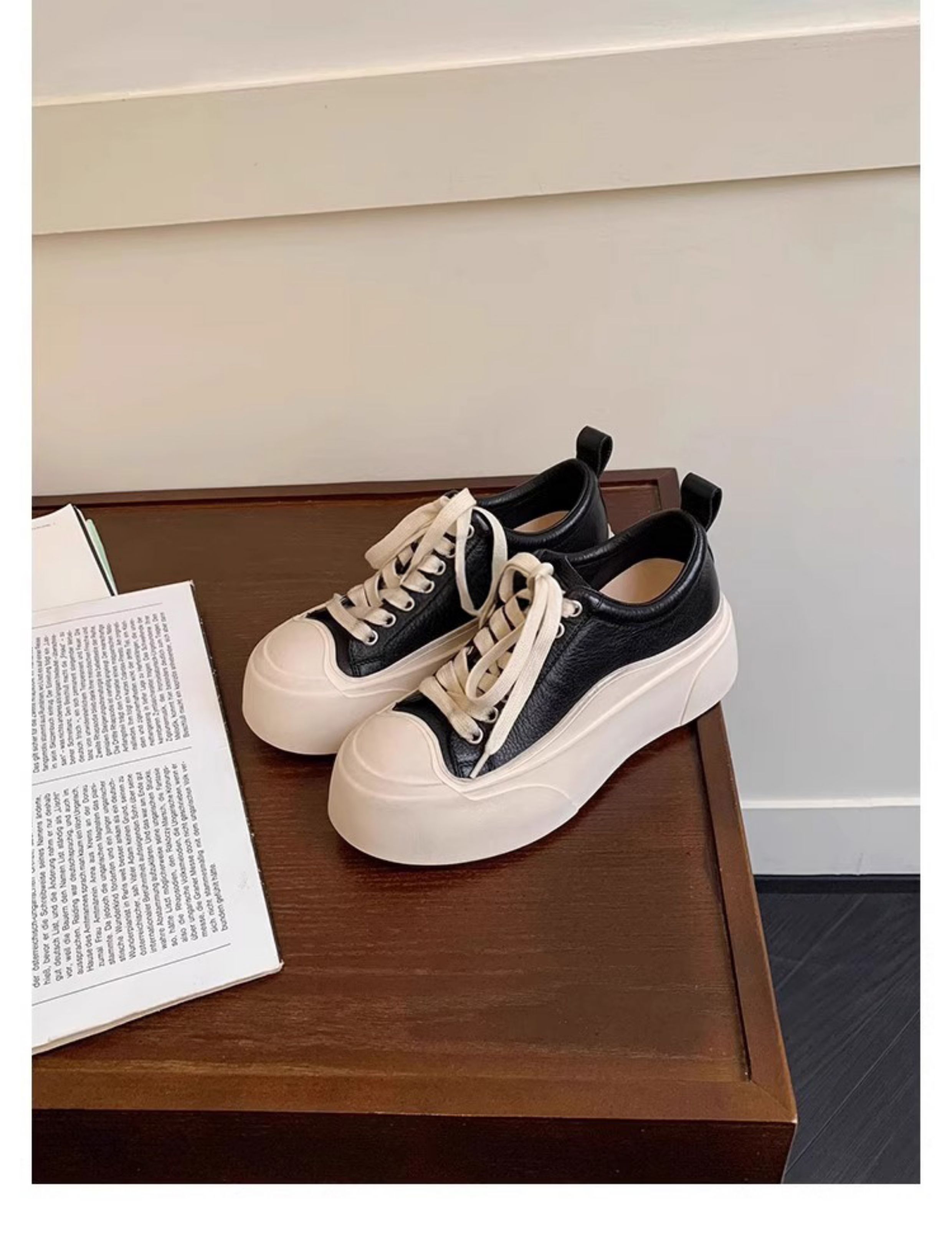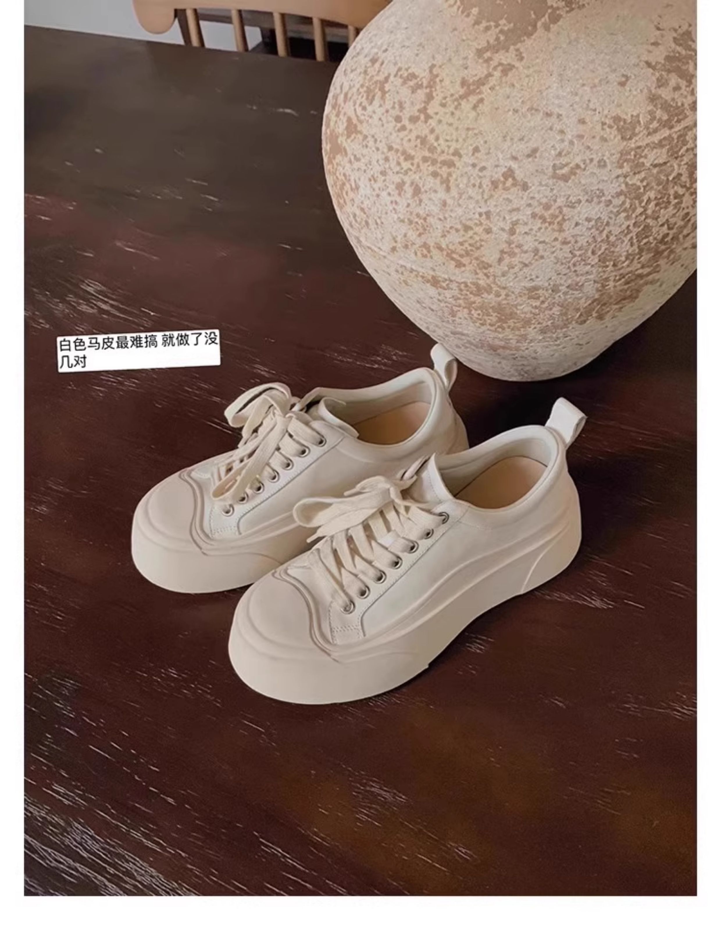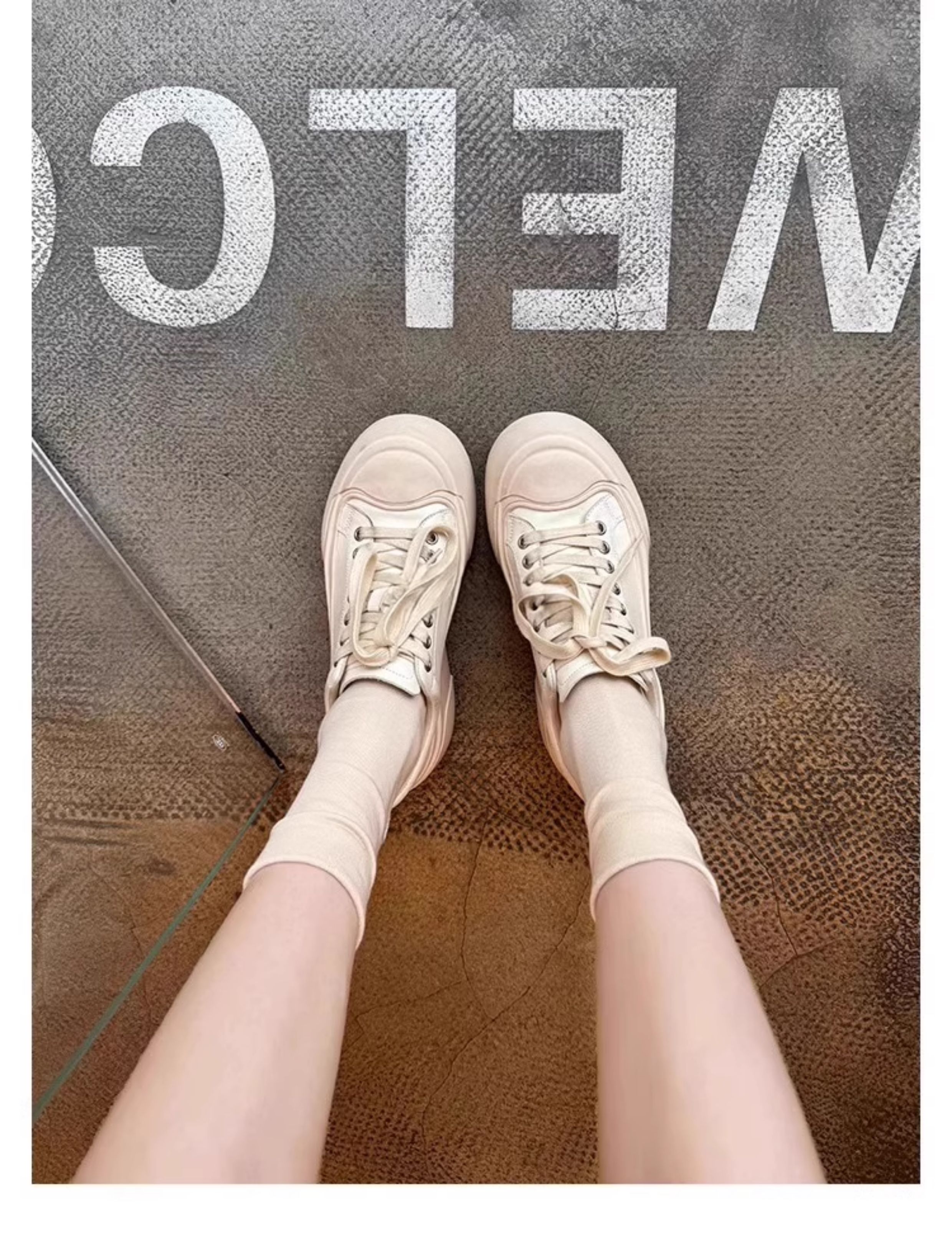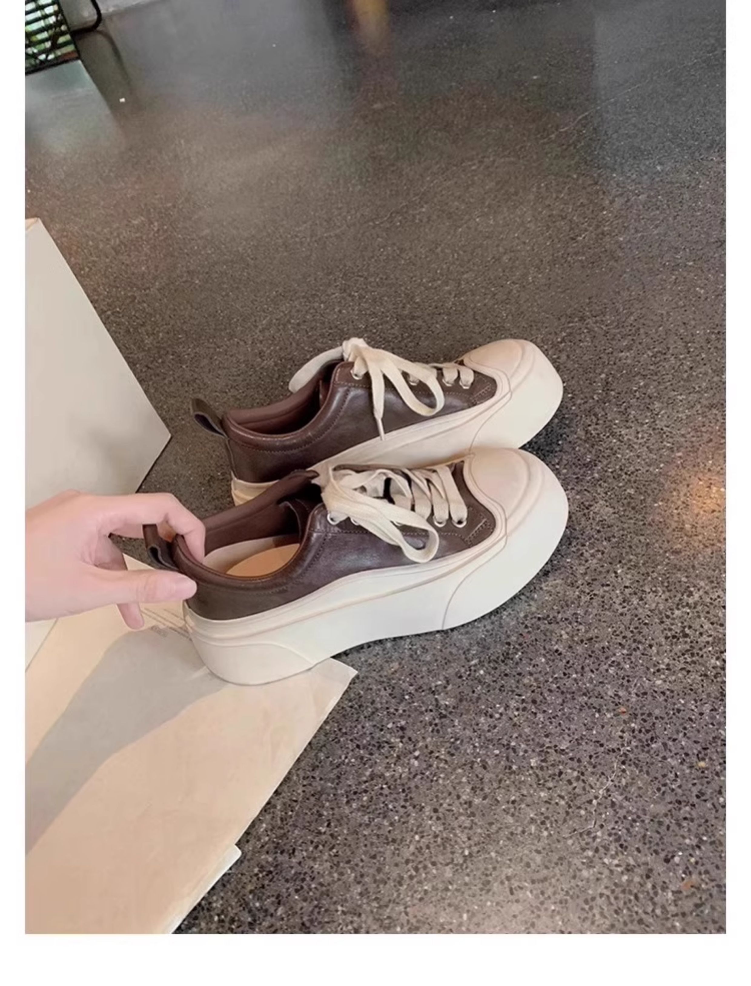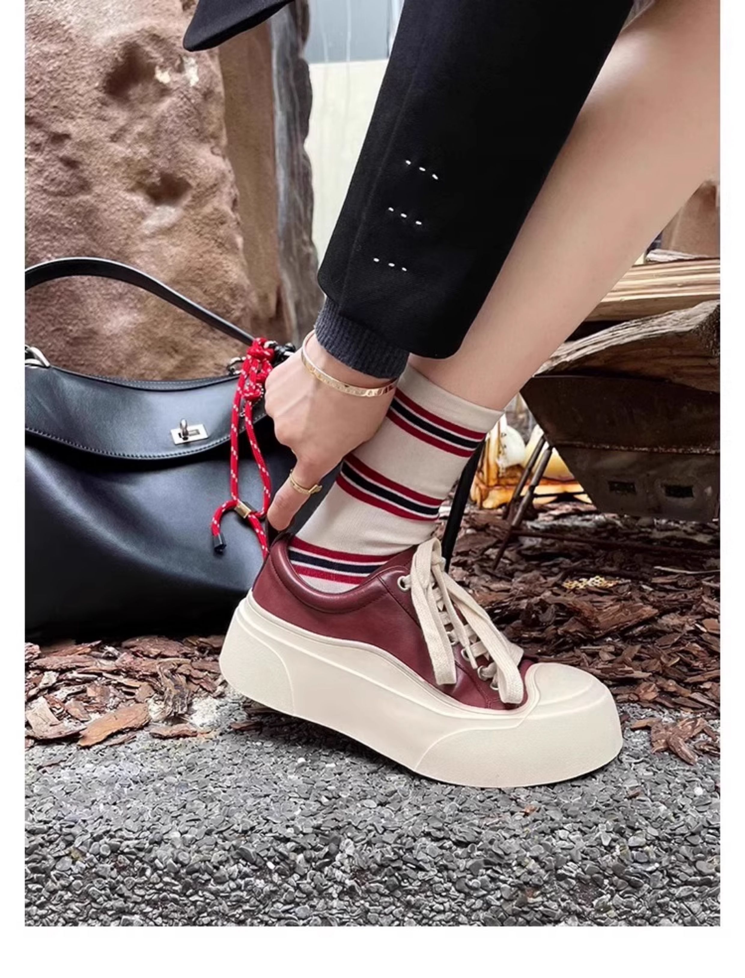 Hong Kong Ankora Red Genuine Leather Height-Increasing Casual Shoes for Women 2025 Spring and Autumn Breathable Versatile Fashionable Comfortable Sneakers