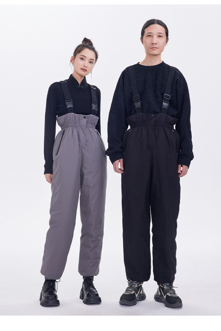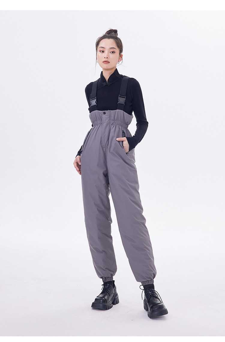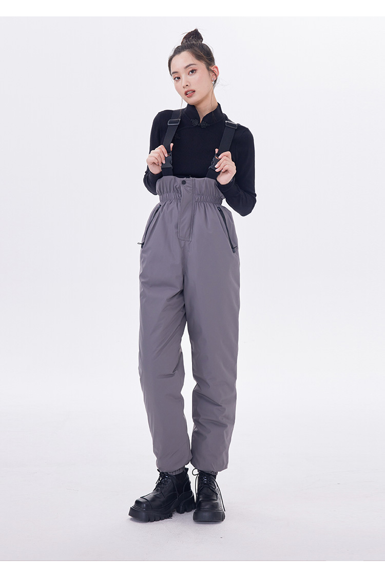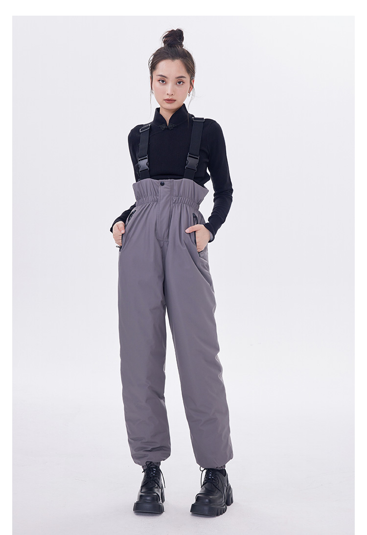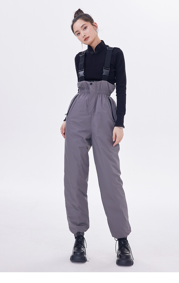 Women's Bib down Pants for Outdoor Wear, Original Design, 2025 Autumn and Winter, High-Waisted, Slimming, Warm, Thickened, Fashionable Ski Pants