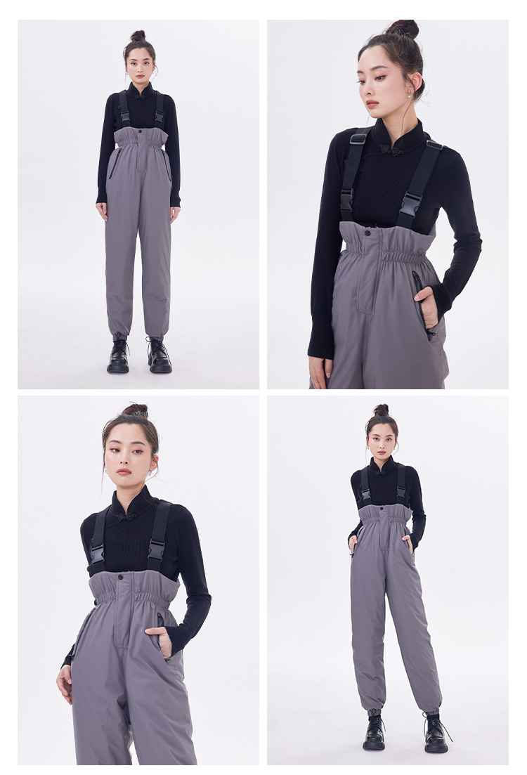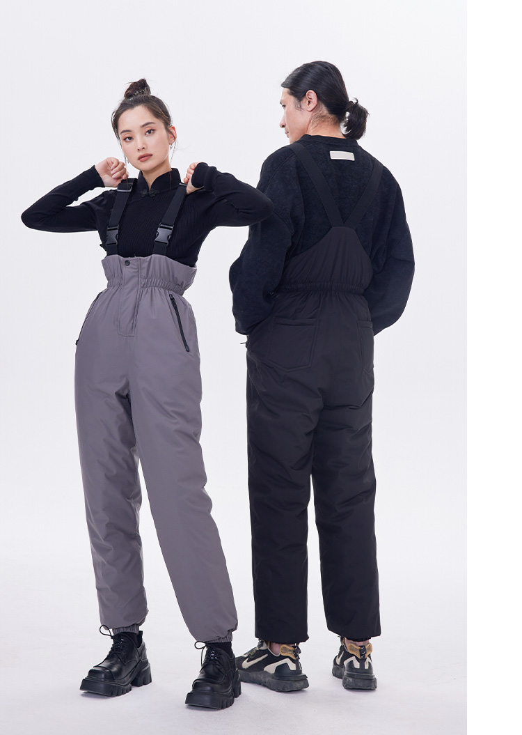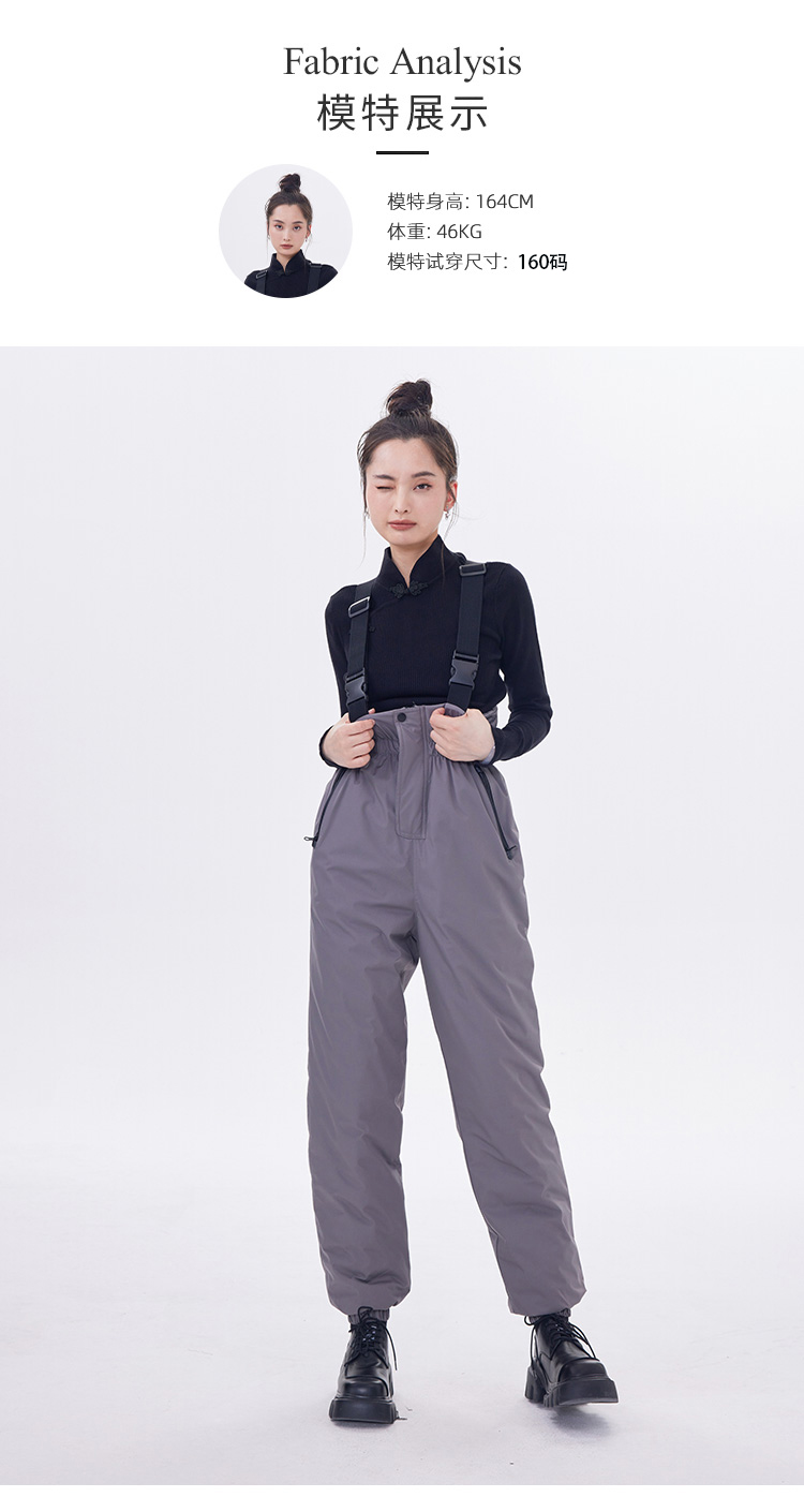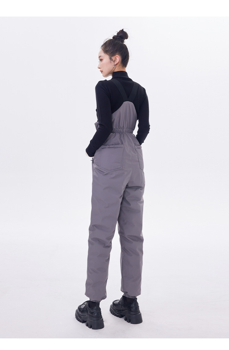Women's Bib down Pants for Outdoor Wear, Original Design, 2025 Autumn and Winter, High-Waisted, Slimming, Warm, Thickened, Fashionable Ski Pants