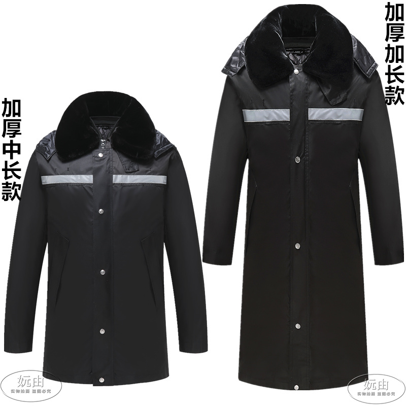 Black Military Cotton Coat for Men, Winter Cold-Proof and Warm, Fleece-Lined and Thickened, Northeast Cotton Jacket, Long Style, Cold Storage Labor Safety Cotton Clothing