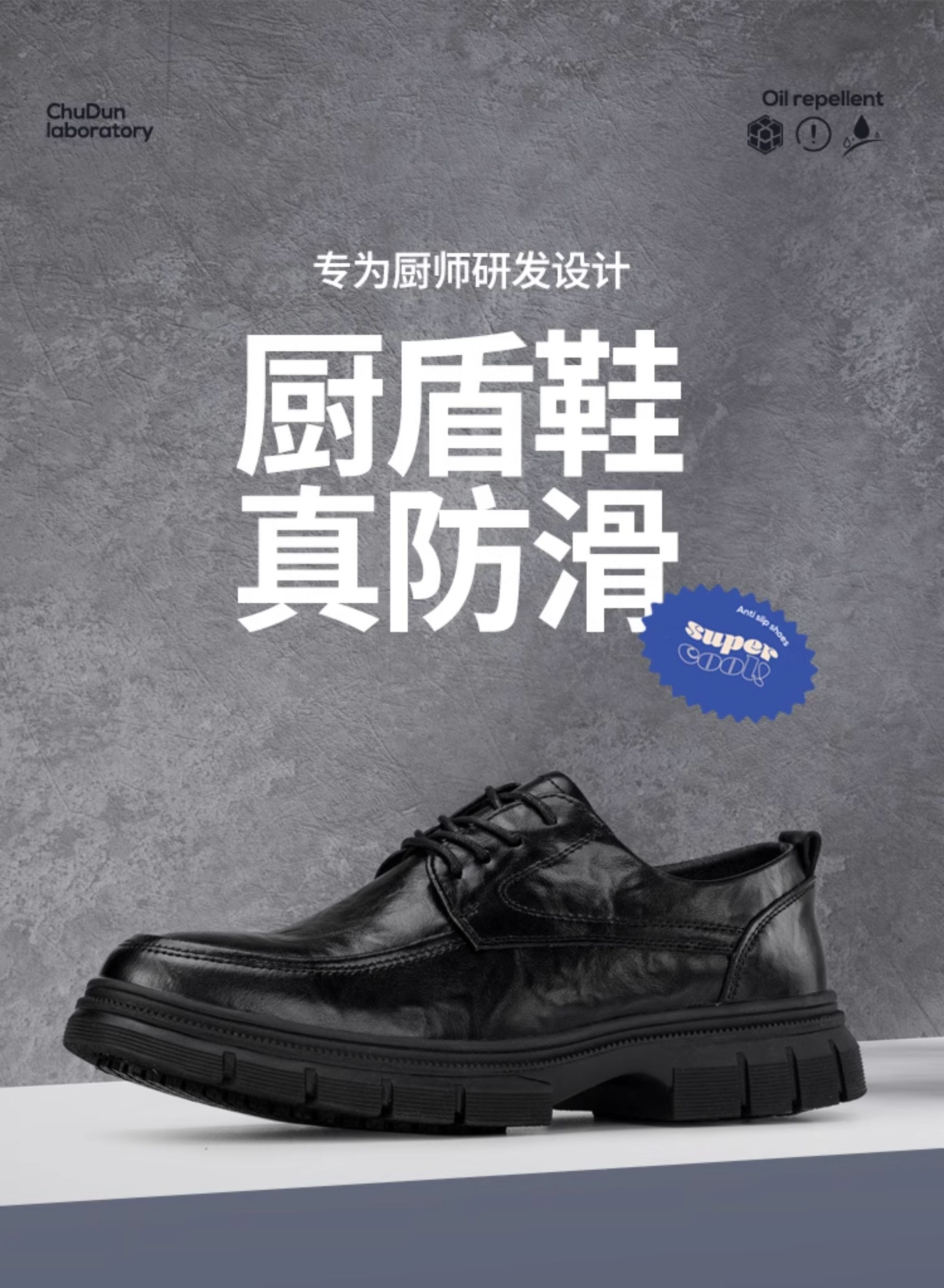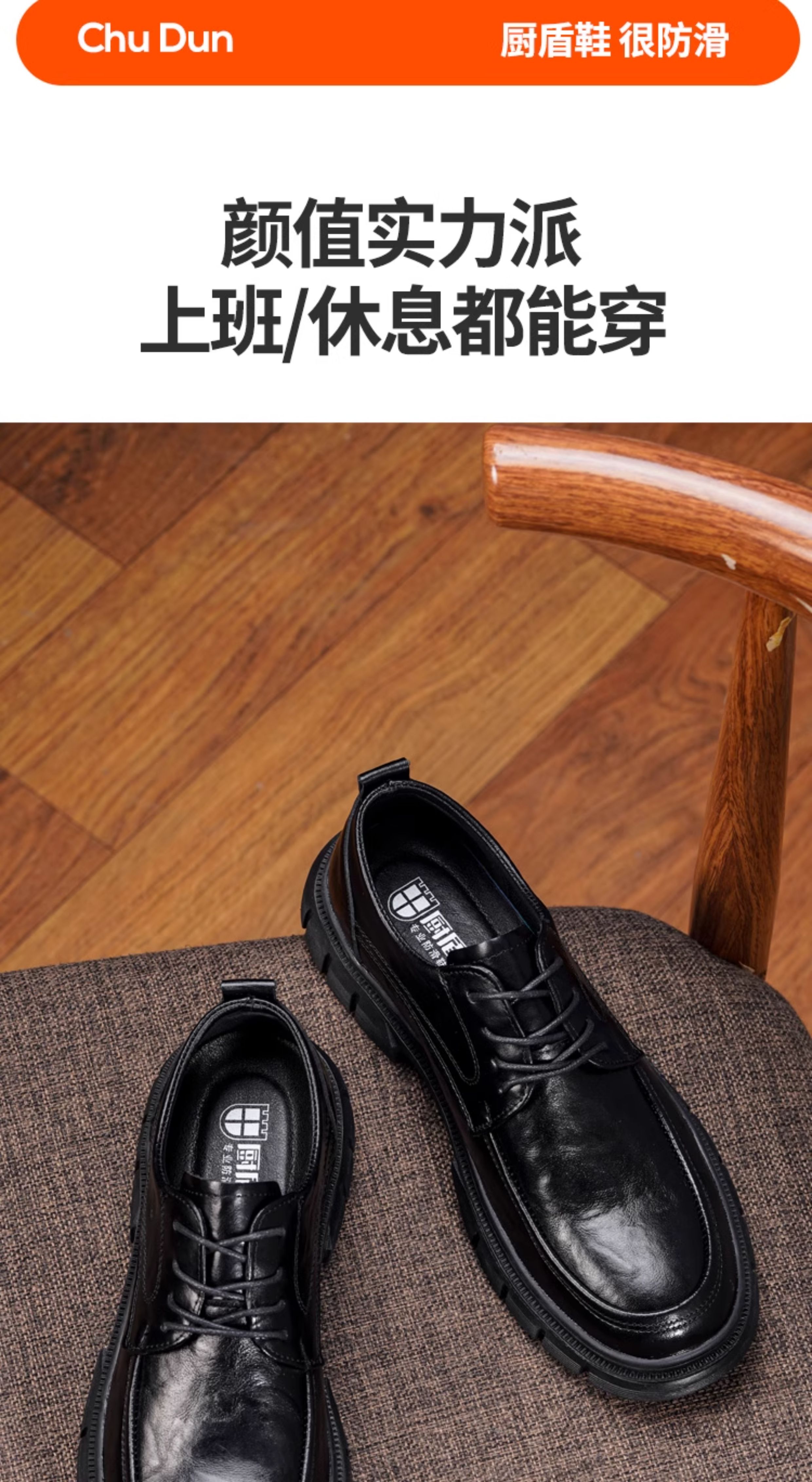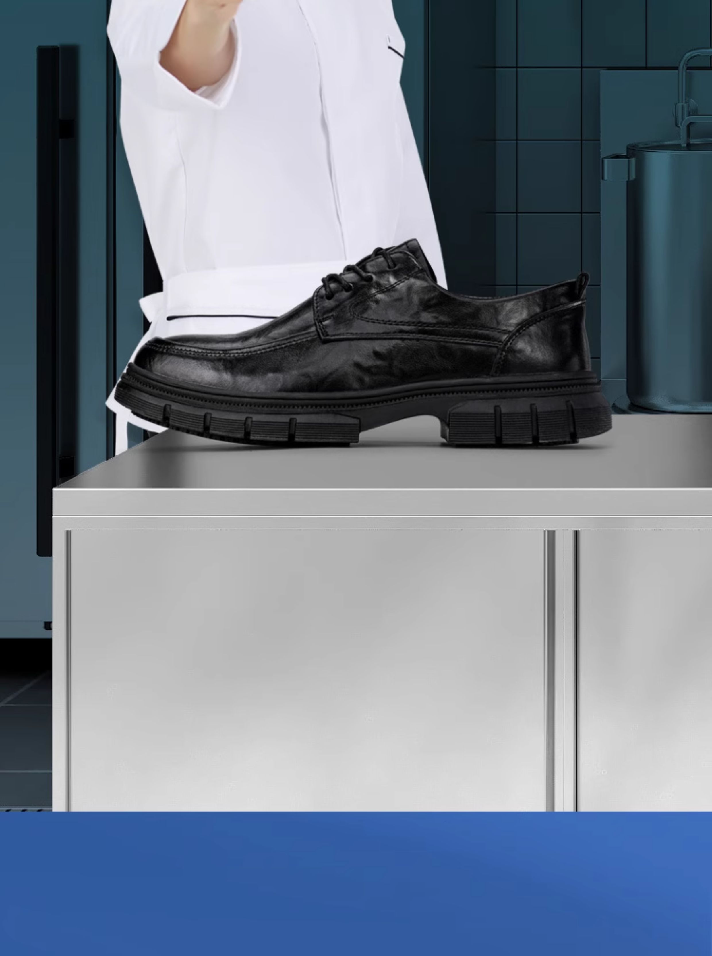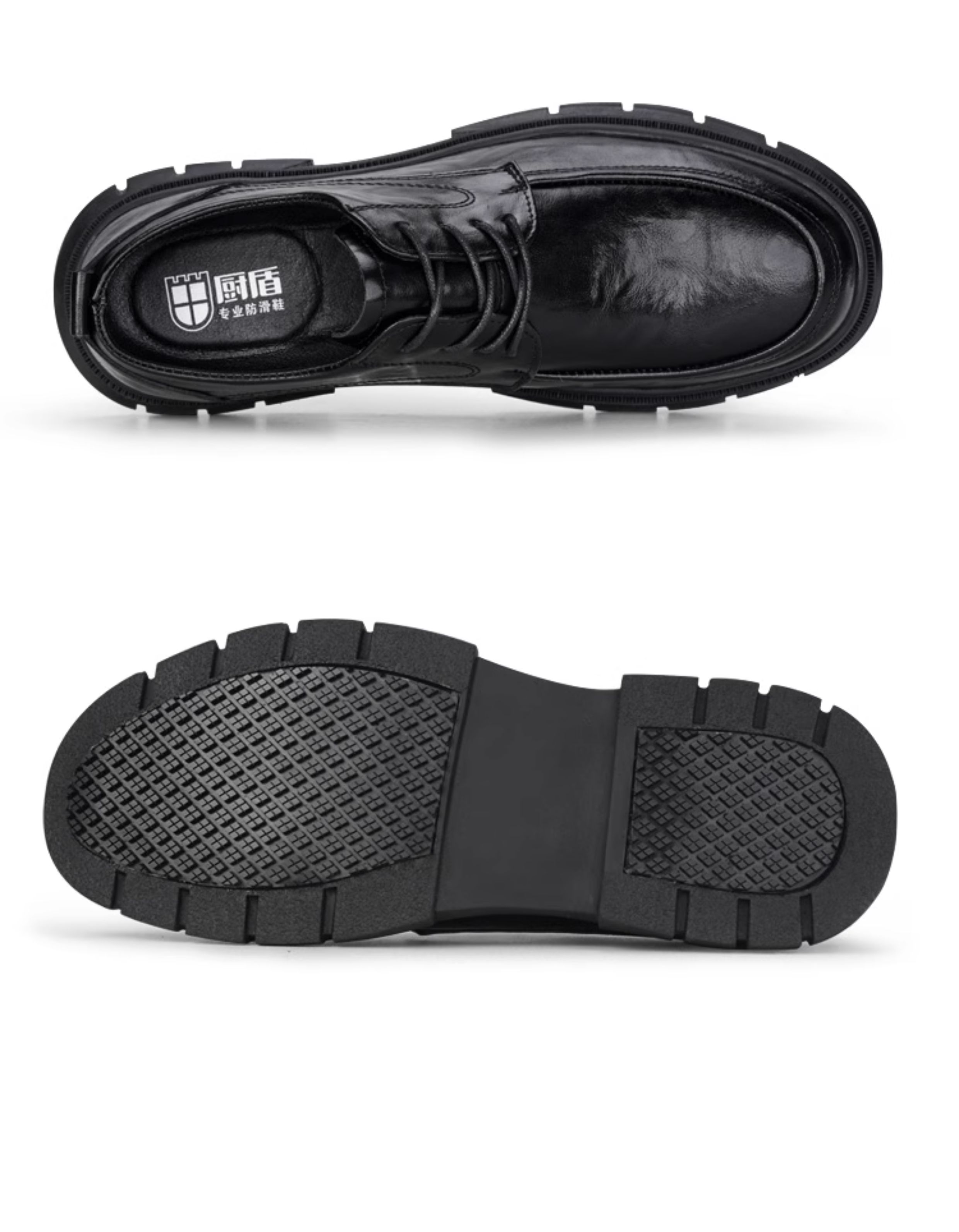 [Cook Shield] Catering Chef Shoes, Non-Slip, Waterproof, Oil-Proof, Thick-Soled, Odor-Resistant, Special Black Leather Shoes for the Kitchen, Autumn